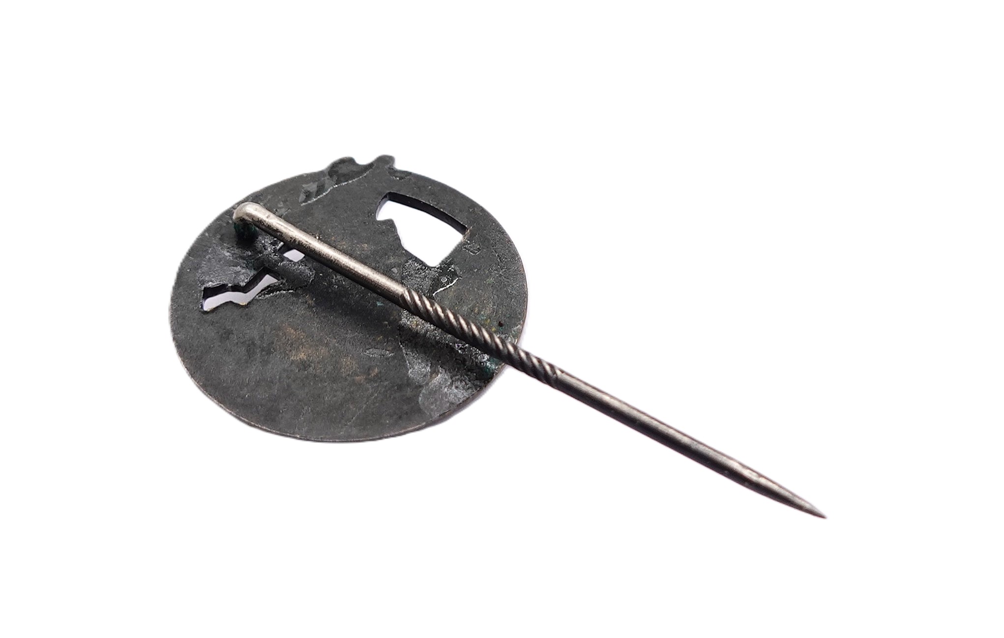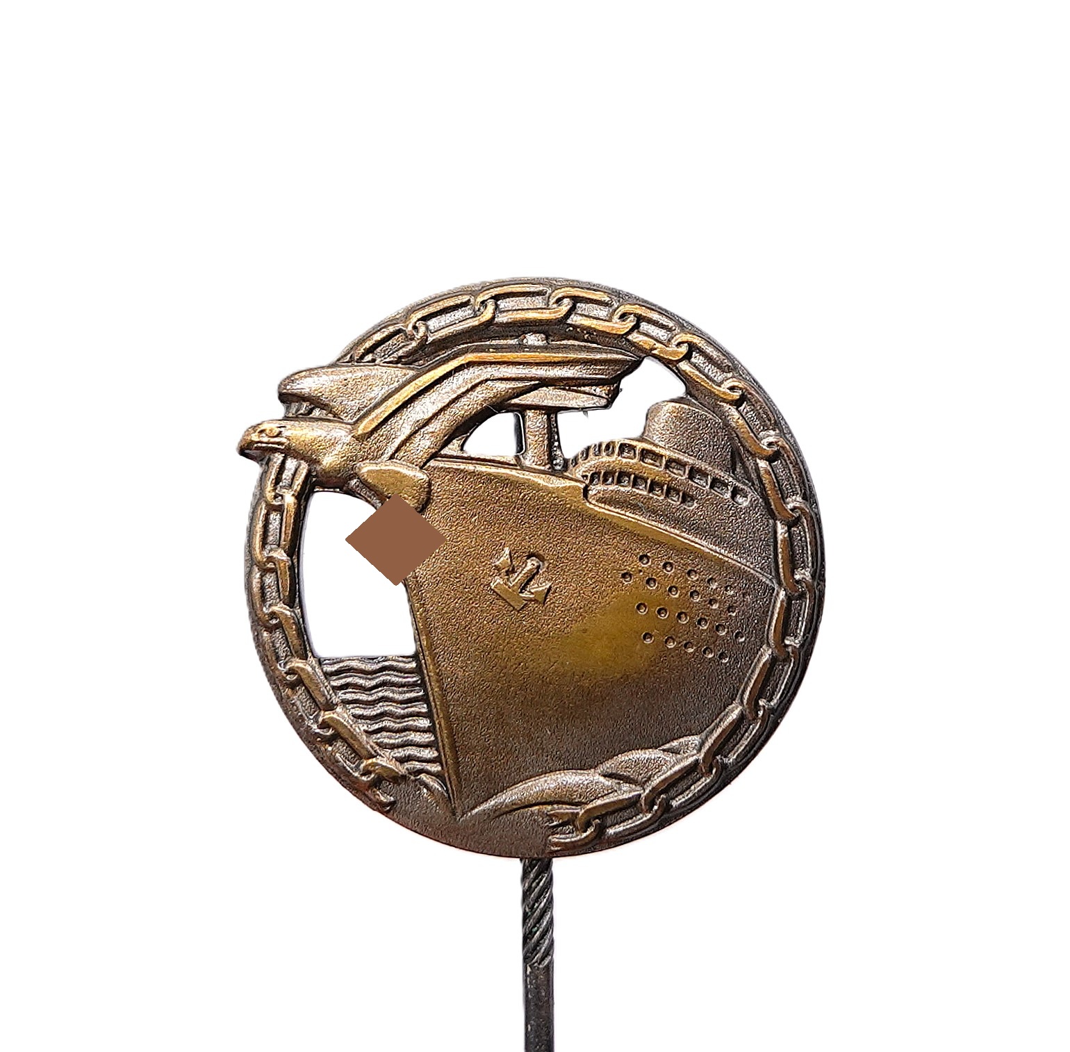 26 mm Halbminiatur zum Blockadebrecher Kriegsabzeichen. Auf der Rückseite ein paar Klebereste. Getragener Zustand.