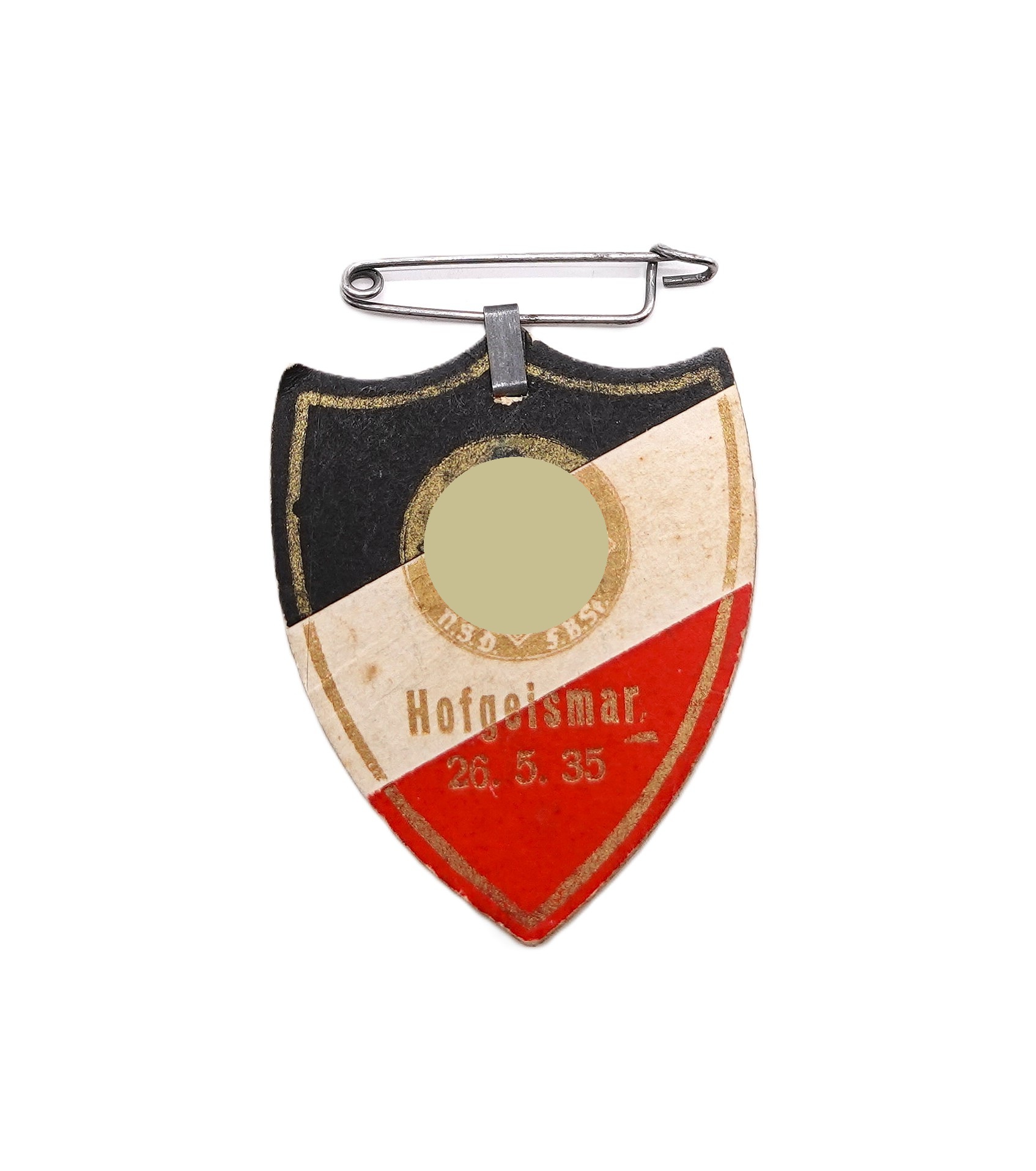 Abzeichen aus Pappe – Stahlhelmbund – N.S.D.S.B.St.- Deutscher Frontkämpferbund – Hofgeismar 1935.