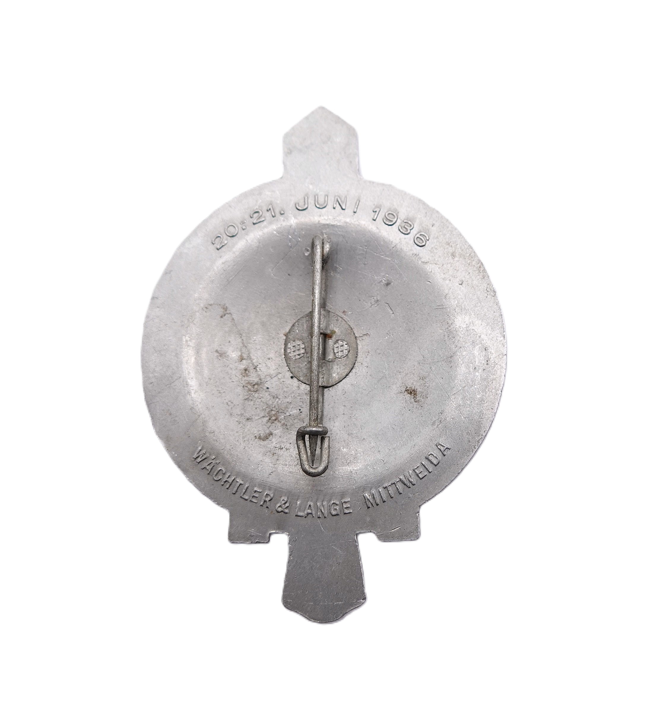 Abzeichen – Gauappell Sachsen – 20. – 21. Juni 1936 – Hersteller Wächtler & Lange, Mittweida. Aluminium. Getragener Zustand.