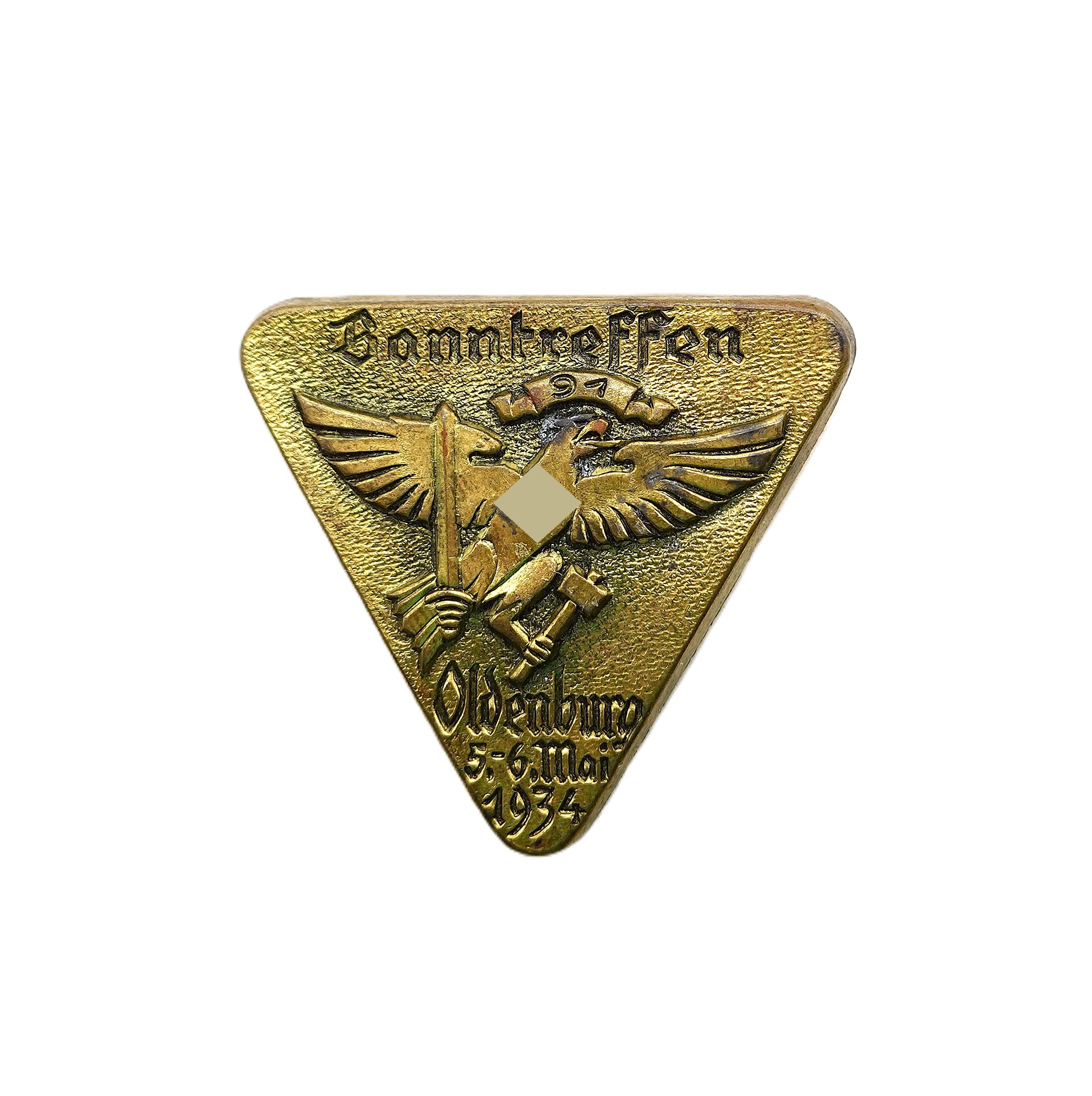 Abzeichen – HJ (Hitlerjugend) Banntreffen 91. Oldenburg 5.-6. Mai 1934. Hersteller Hoffstätter, Bonn. Getragener Zustand.