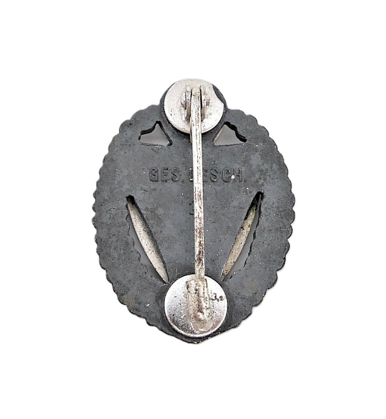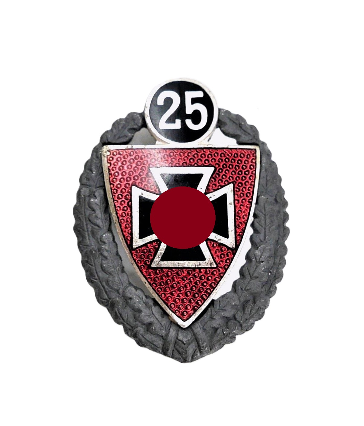 Abzeichen NSRKB (Nationalsozialistischer Reichskriegerbund). Für 25 Jahre. Rückseitig GES. GESCH. und eine 2. Getragener Zustand mit vergangener Versilberung.