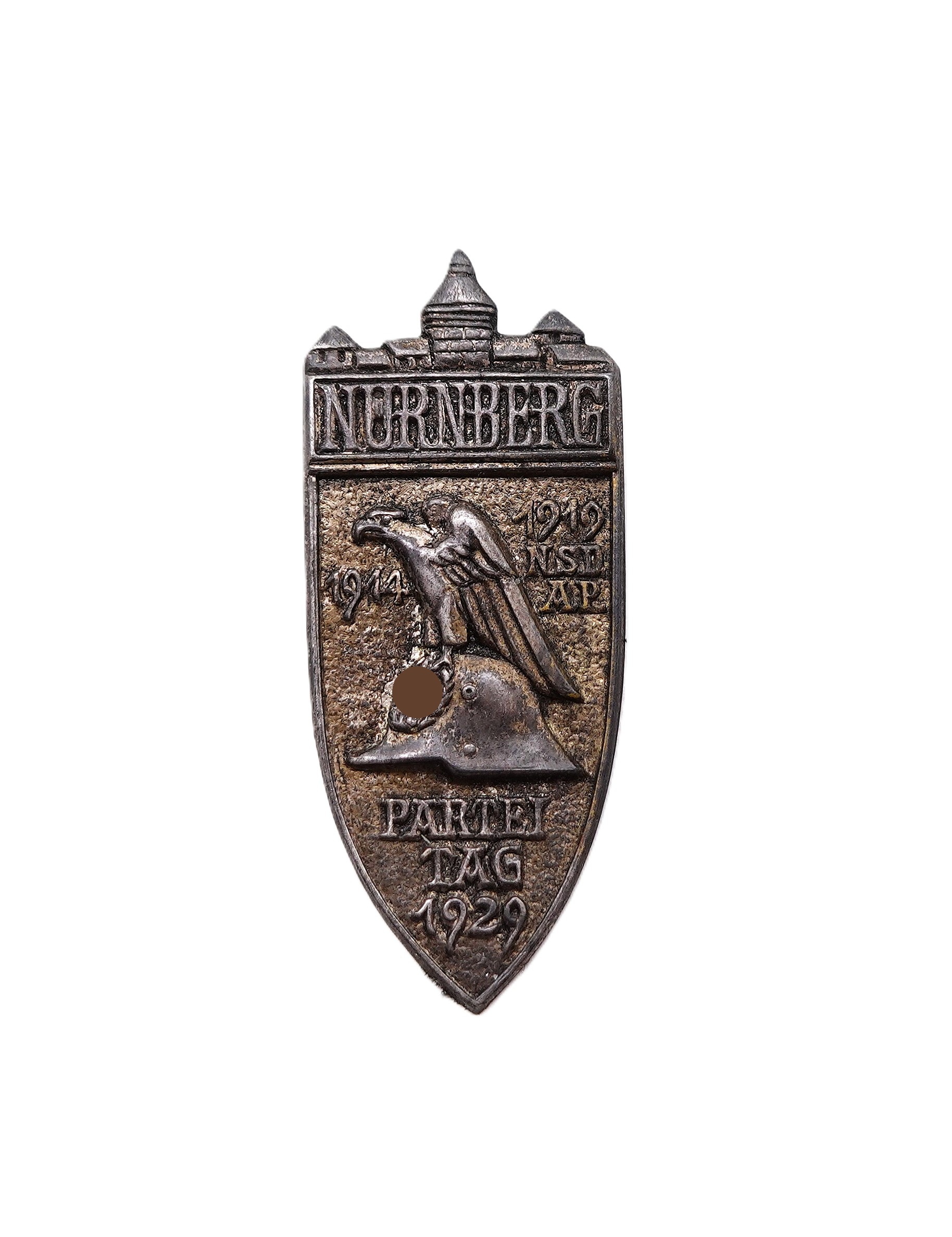 Abzeichen – NSDAP 1914-1919 – Reichsparteitag – Nürnberg 1929. Aus Eisenblech. Hersteller RZM 1/15 (Ferdinand Hoffstätter, Bonn). Getragener Zustand.