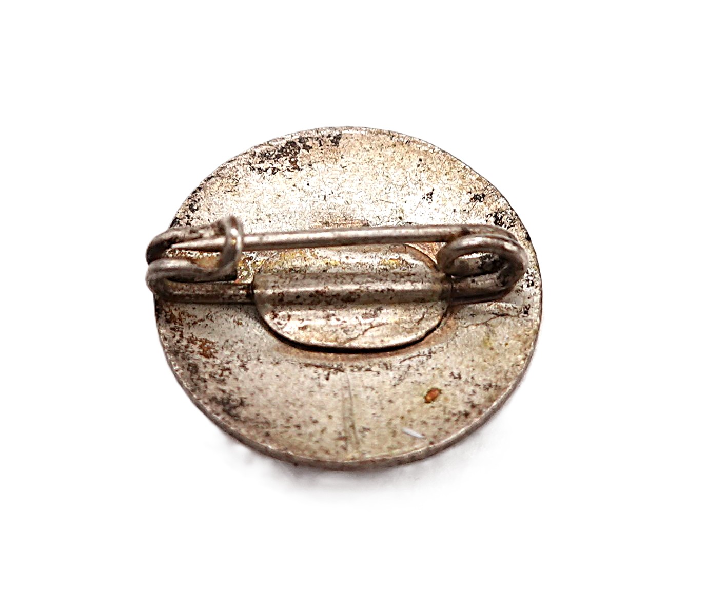 Abzeichen – NSDAP Sympathieabzeichen. Durchmesser 19 mm. Deutlich getragener Zustand. Emaille mit kleineren Beschädigungen, Kratzern und einen Sprung.