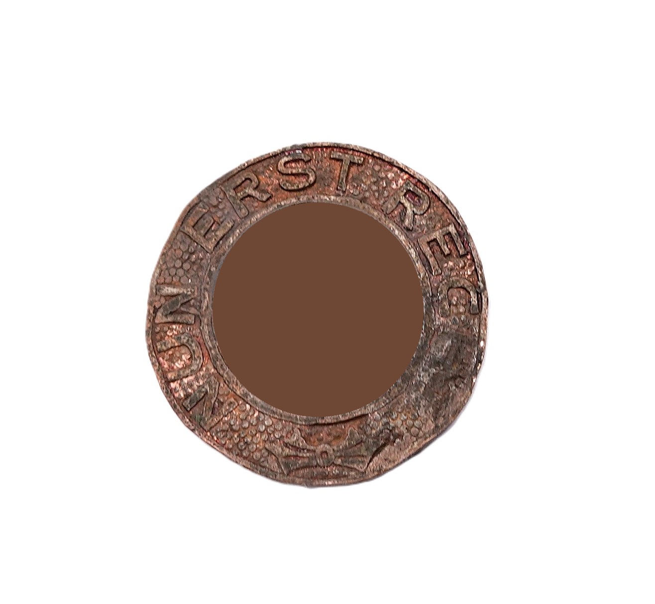 Abzeichen – NSDAP Symathieabzeichen – Nun erst Recht. Handelt sich entweder um einen Rohling oder das Abzeichen wurde mal plattgefahren. HK schwach erkennbar. Durchmesser 24 mm. Bodenfund ohne Nadel.
