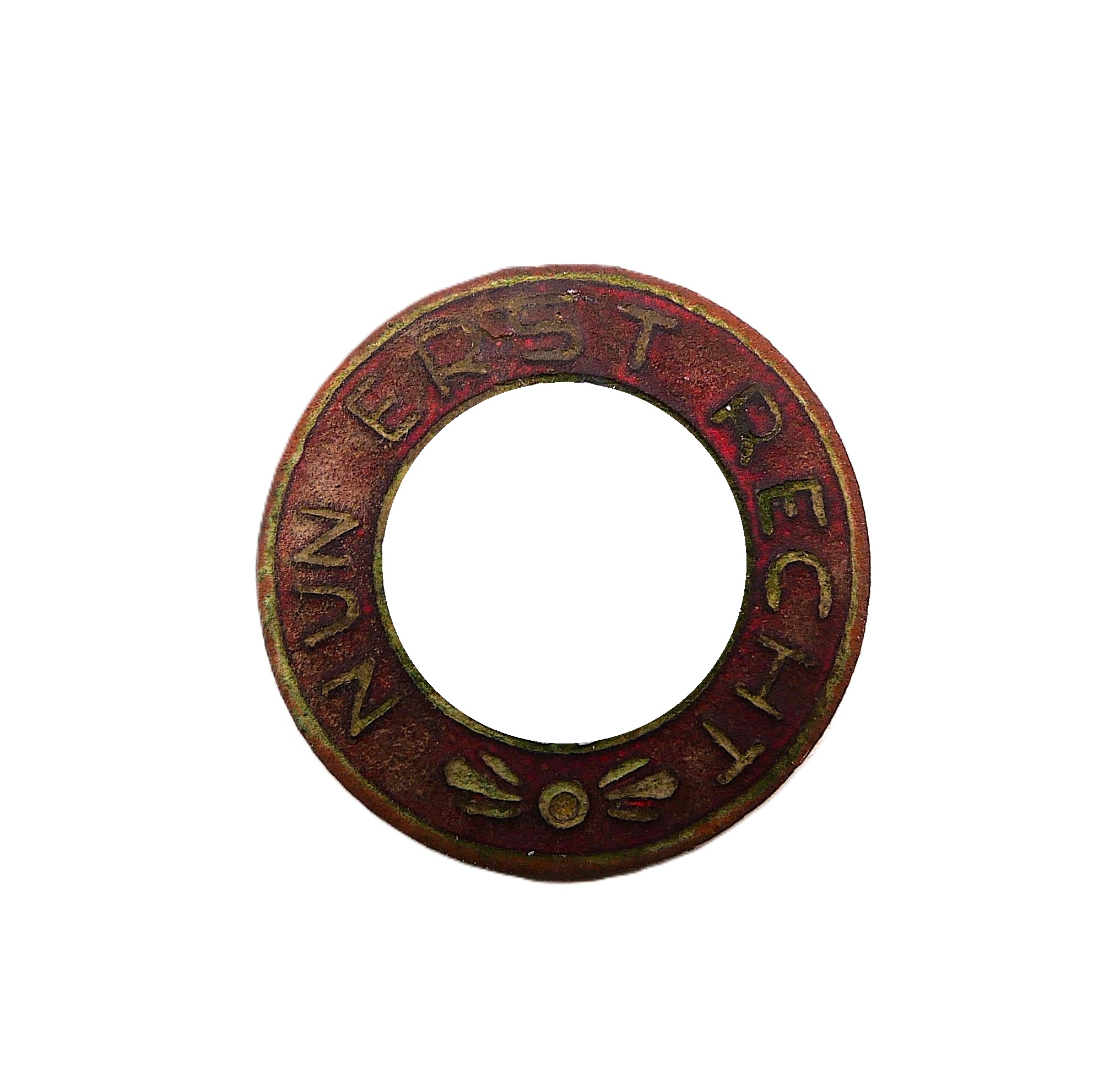 Abzeichen – NSDAP Symathieabzeichen – Nun erst Recht. Auf der Rückseute steht GES. GESCH. Bodenfund ohne Nadel.