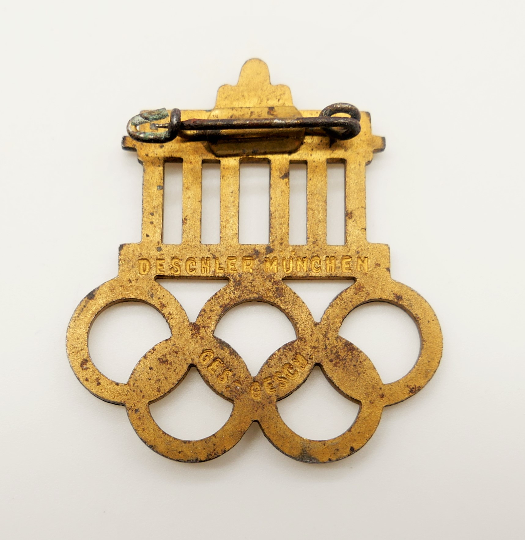 Abzeichen – Olympia 1936 in Berlin. Rückseitig der Hersteller Deschler, München und GES. GESCH. Hat nur drei kleinere Chips in der Emaille. Ansonsten ein schöner Zustand.