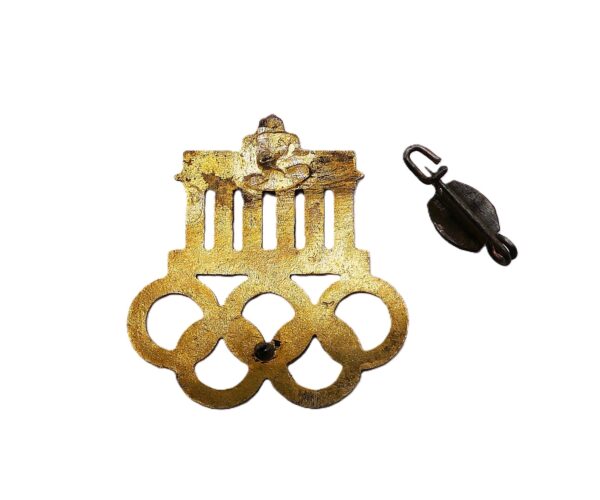 Abzeichen – Olympia 1936 – XI. Olympiade in Berlin. Ohne Hersteller. Nadel ist ab, aber dabei. Könnte ohne große Probleme instandgesetzt werden. Wenig, getragener Zustand.