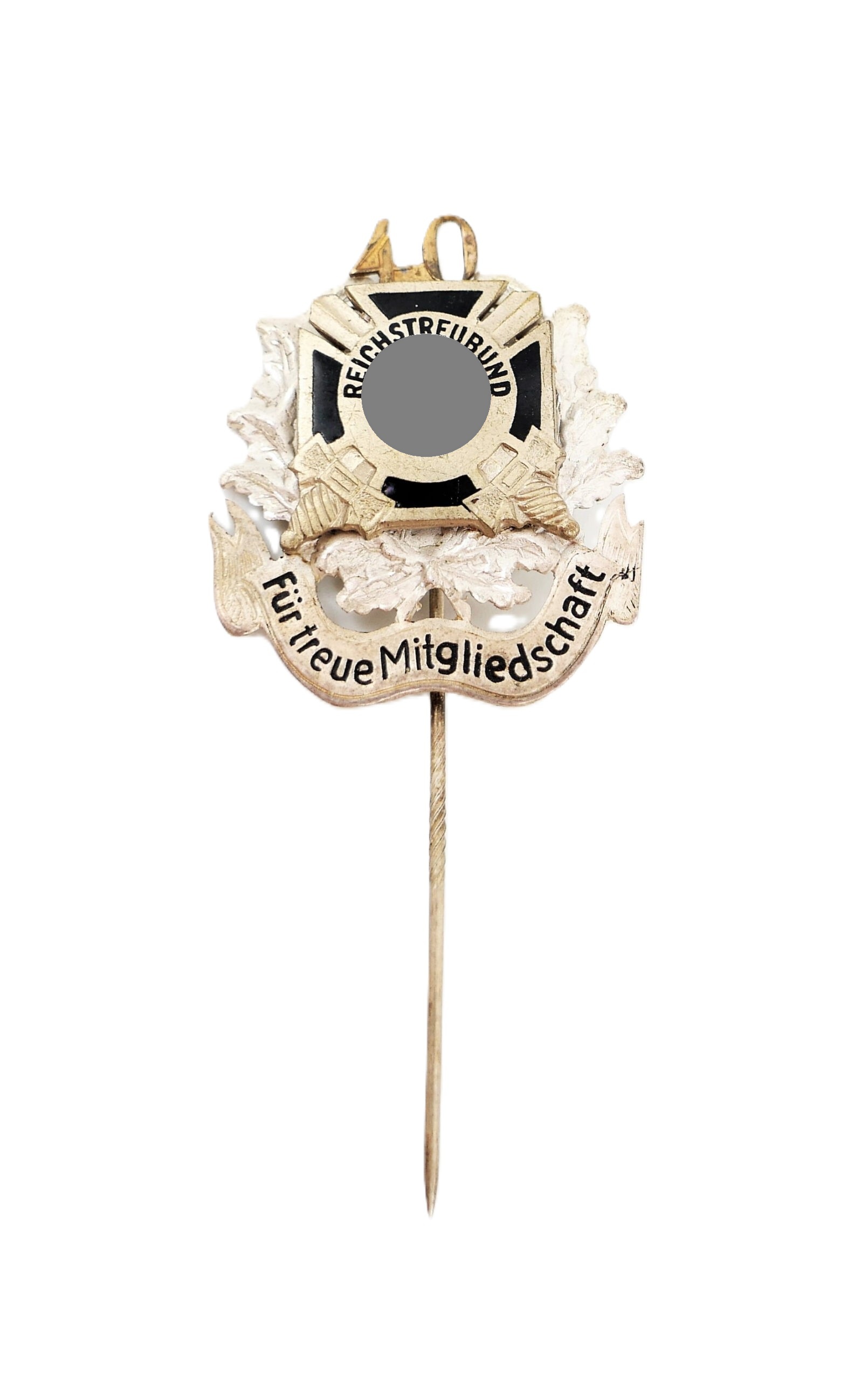 Abzeichen – Reichstreubund (RTB) – 40 Jahre. Für treue Mitgliedschaft. Getragener Zustand.