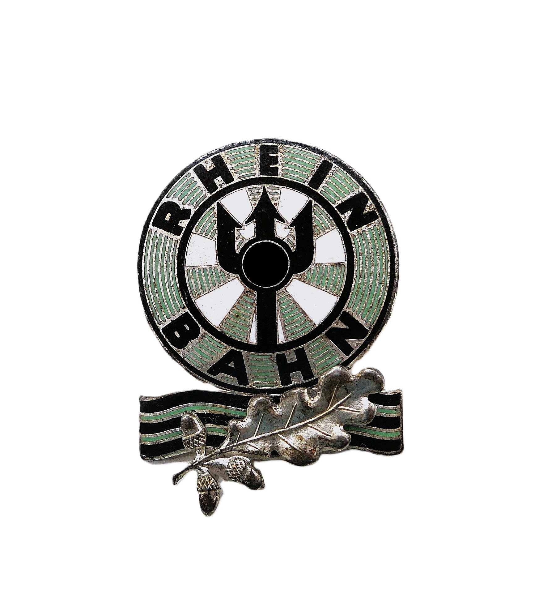 Abzeichen Rheinbahn. Emailliert. Ehrennadel mit Eichenlaub Silber. Masse 29 mm x 24 mm. Ohne Eichenlaub gemessen. Getragener Zustand. Sehr selten zu bekommen.
