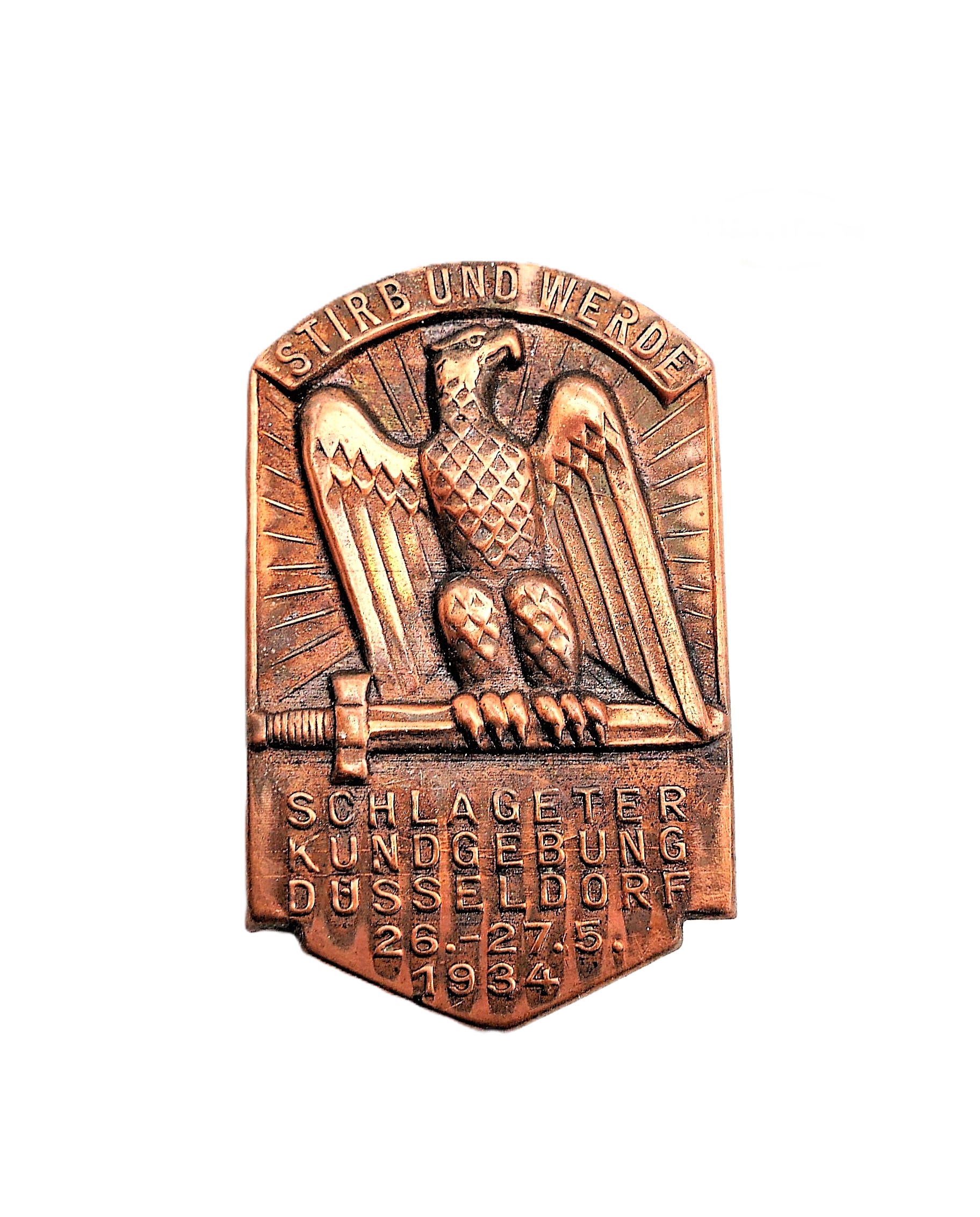 Abzeichen – Schlageter Kundgebung Düsseldorf 26.-27.5.1934. Getragener Zustand.