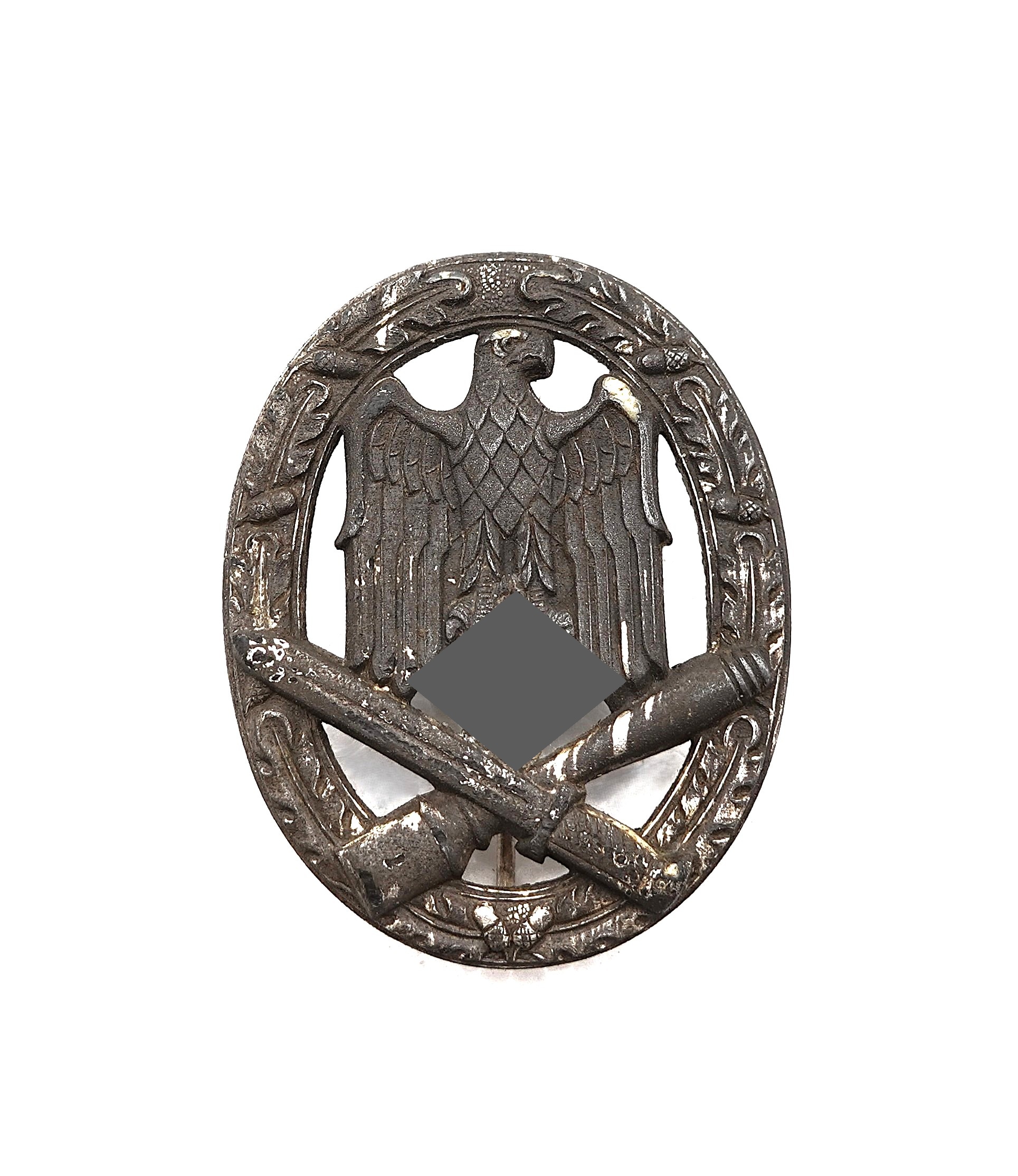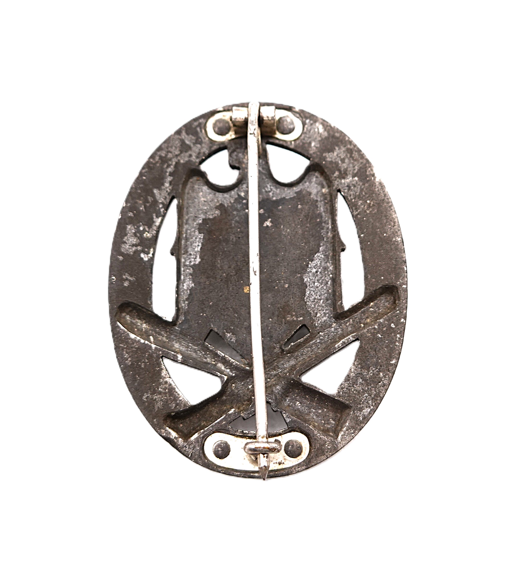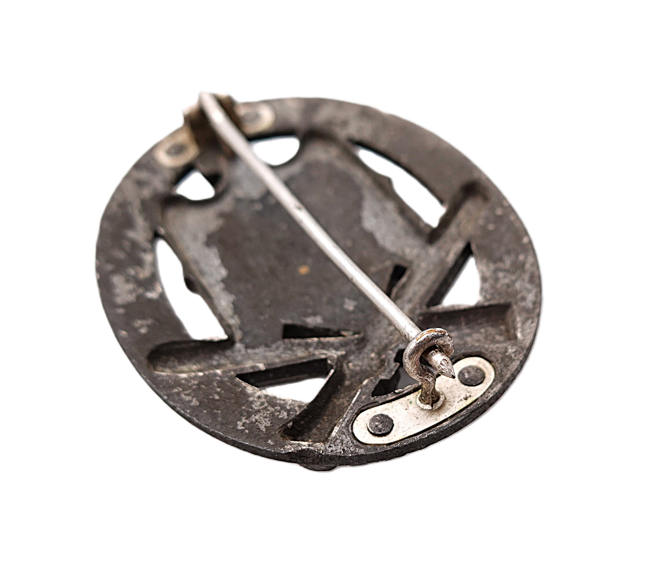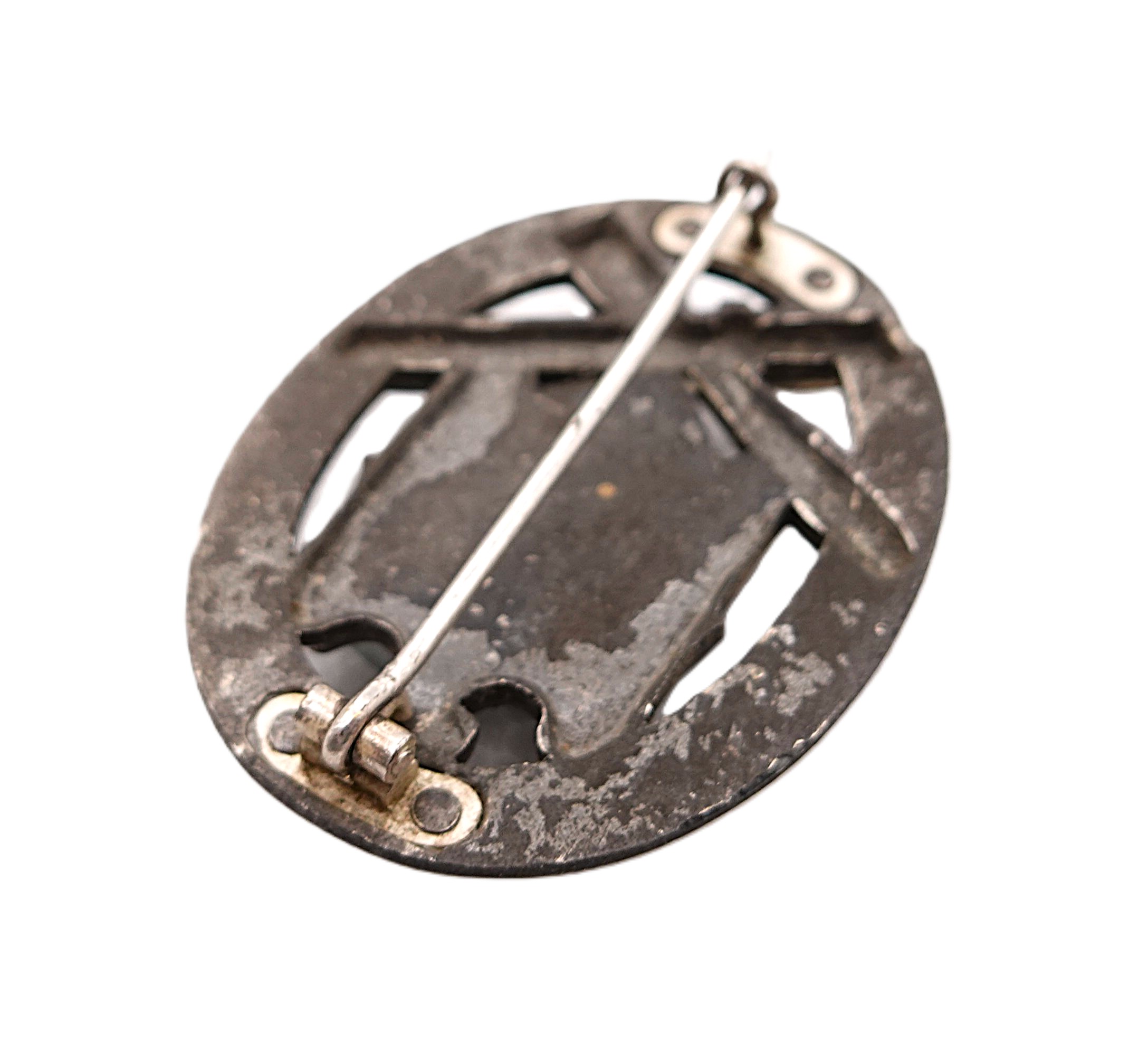 Allgemeines Sturmabzeichen. Seltene 4 Nieter Variante mit vergangener Versilberung. Getragener Zustand.