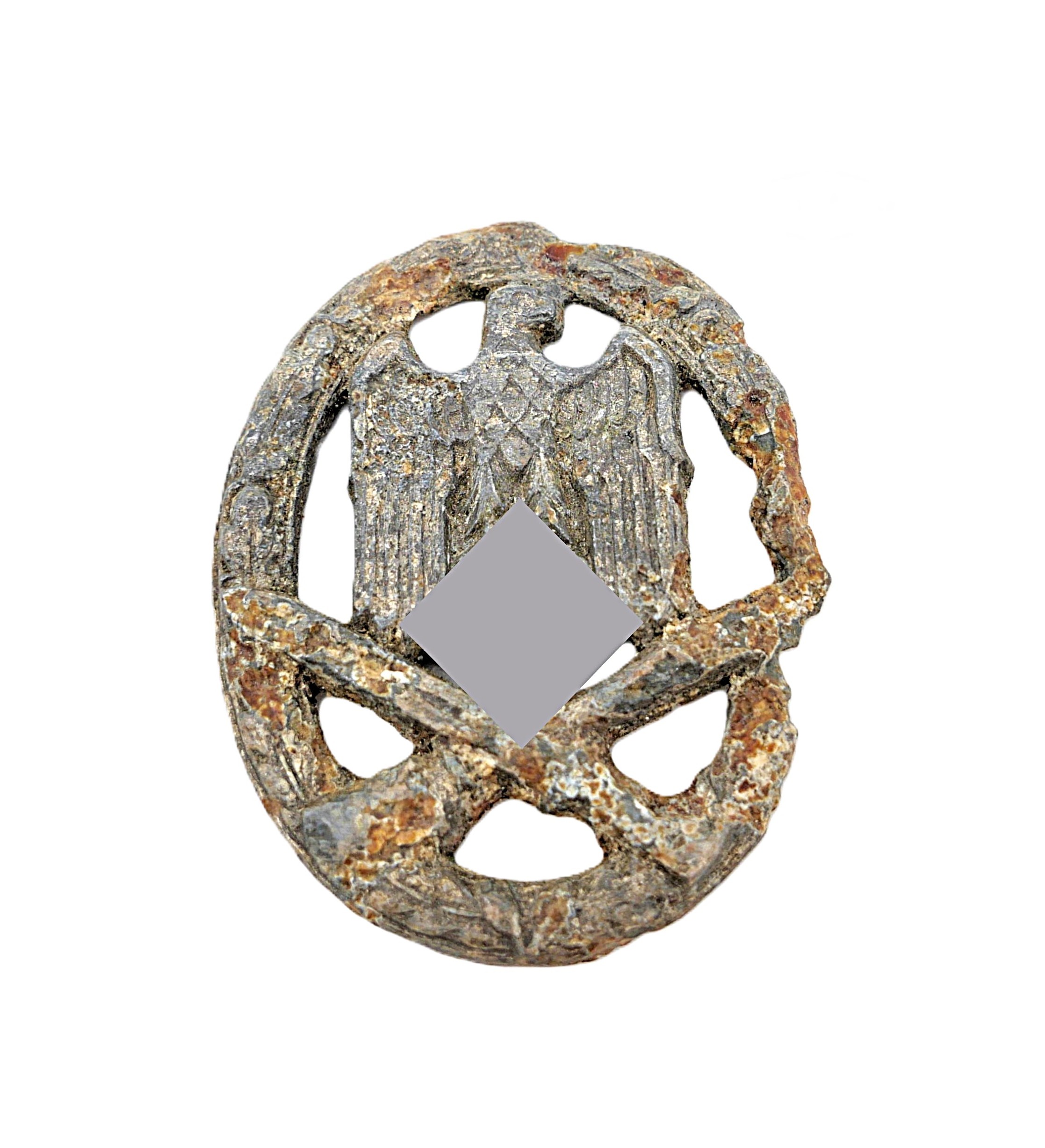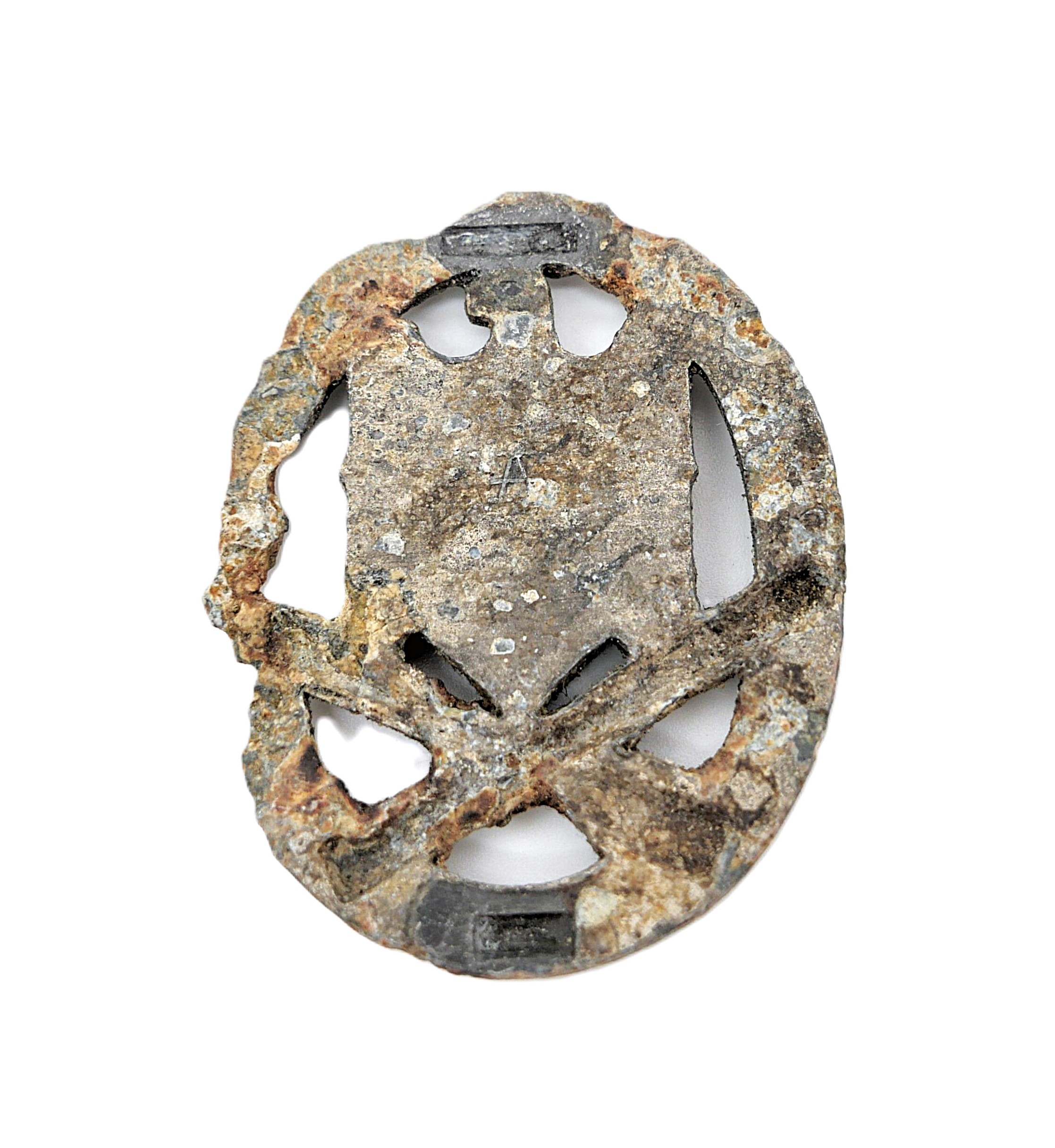 Allgemeines Sturmabzeichen. Rückseitig mit dem Herstellerkürzel A für den Hersteller F. W. Assmann & Söhne, Lüdenscheid. Nadelsystem fehlt. Bodenfund.