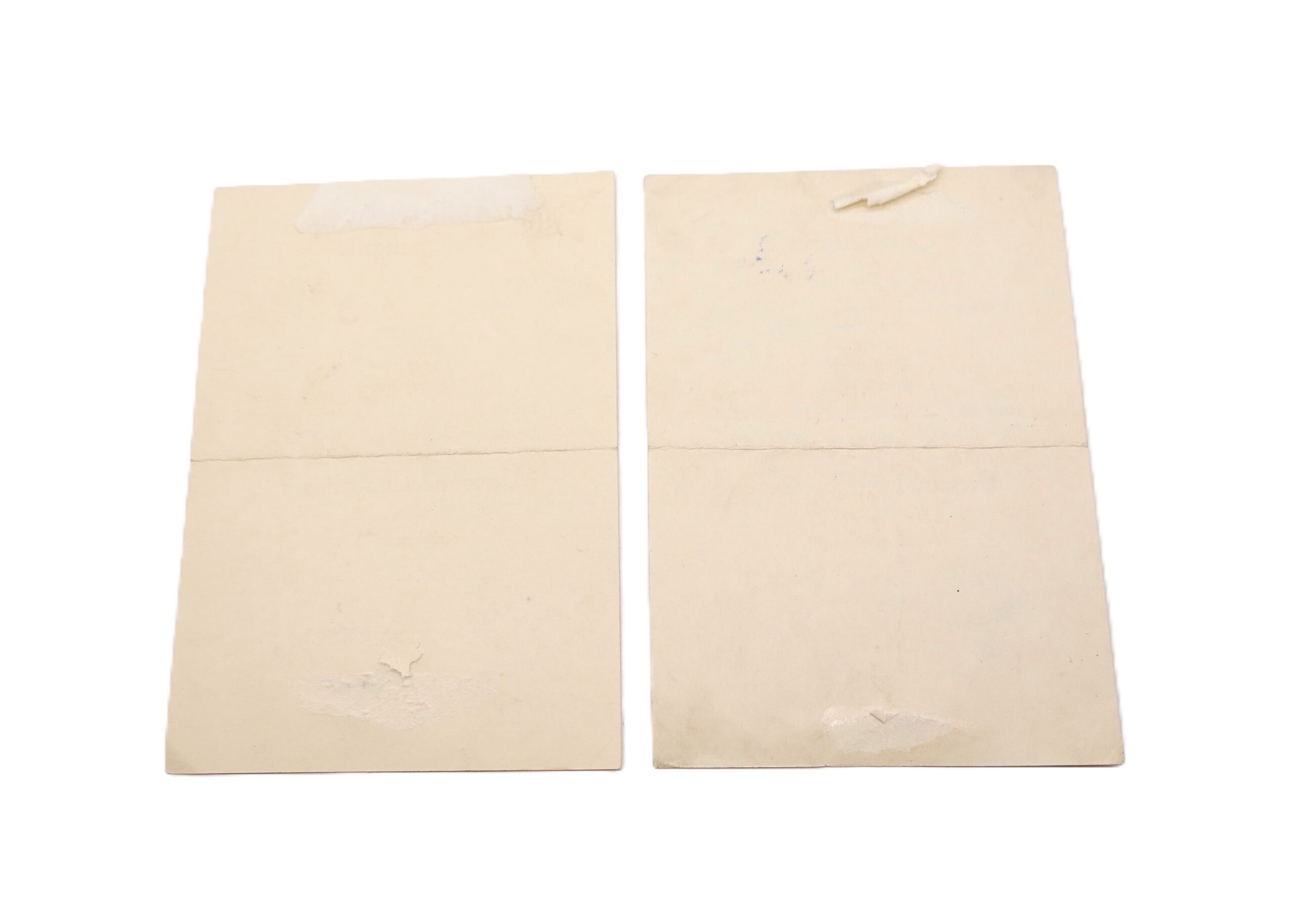 Beide Urkunden waren mal am Rand eingeklebt und haben auf der Rückseite kleinere Beschädigungen. Ansonsten sind sie einmal gefaltet.