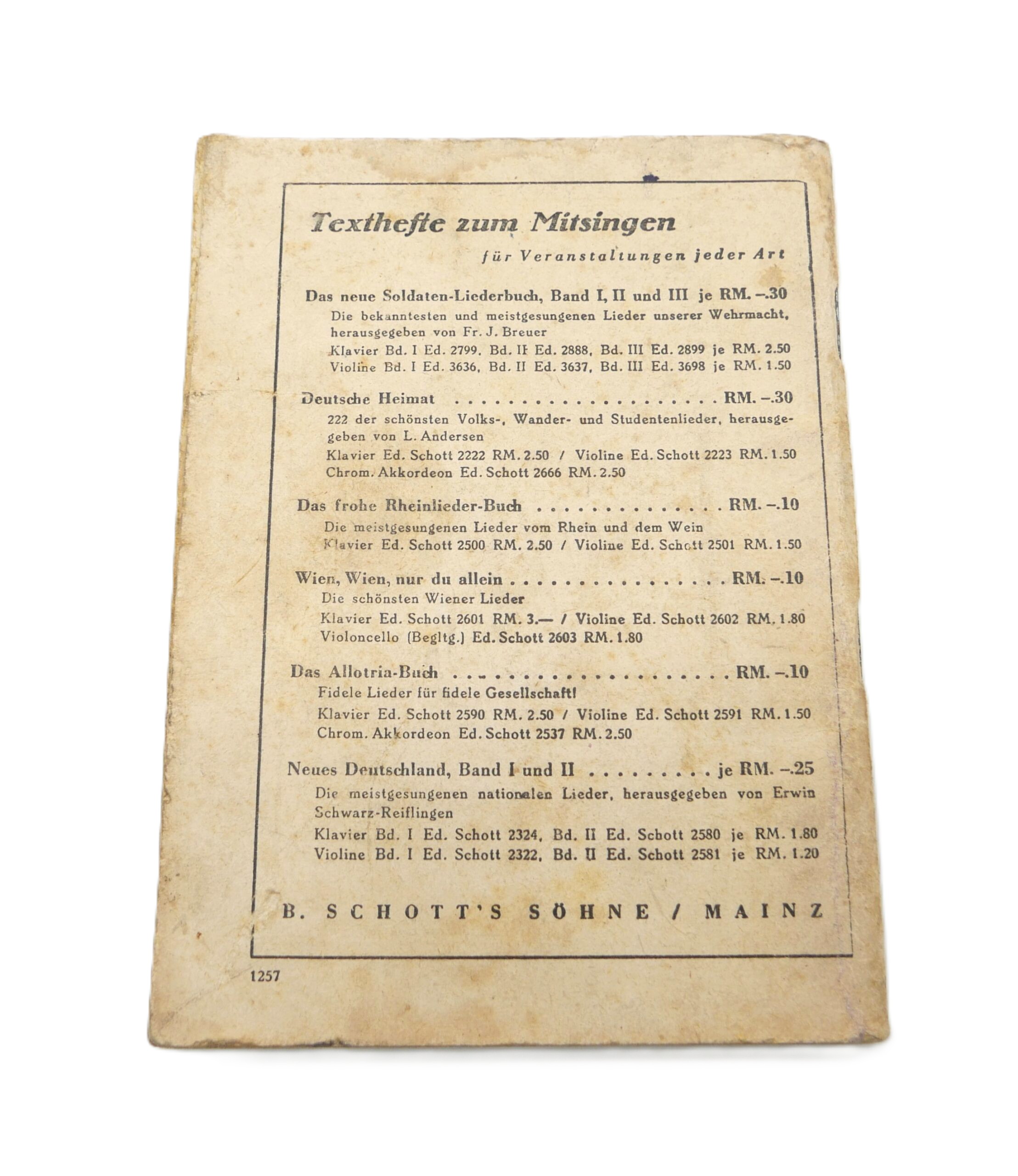 Das neue Soldaten Liederbuch – Textbuch mit Melodien – Heft 2. Gebrauchter Zustand. Seiten vergilbt.