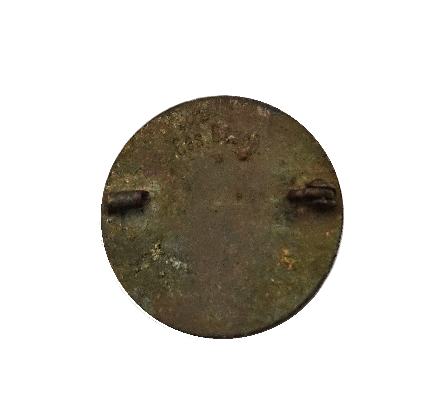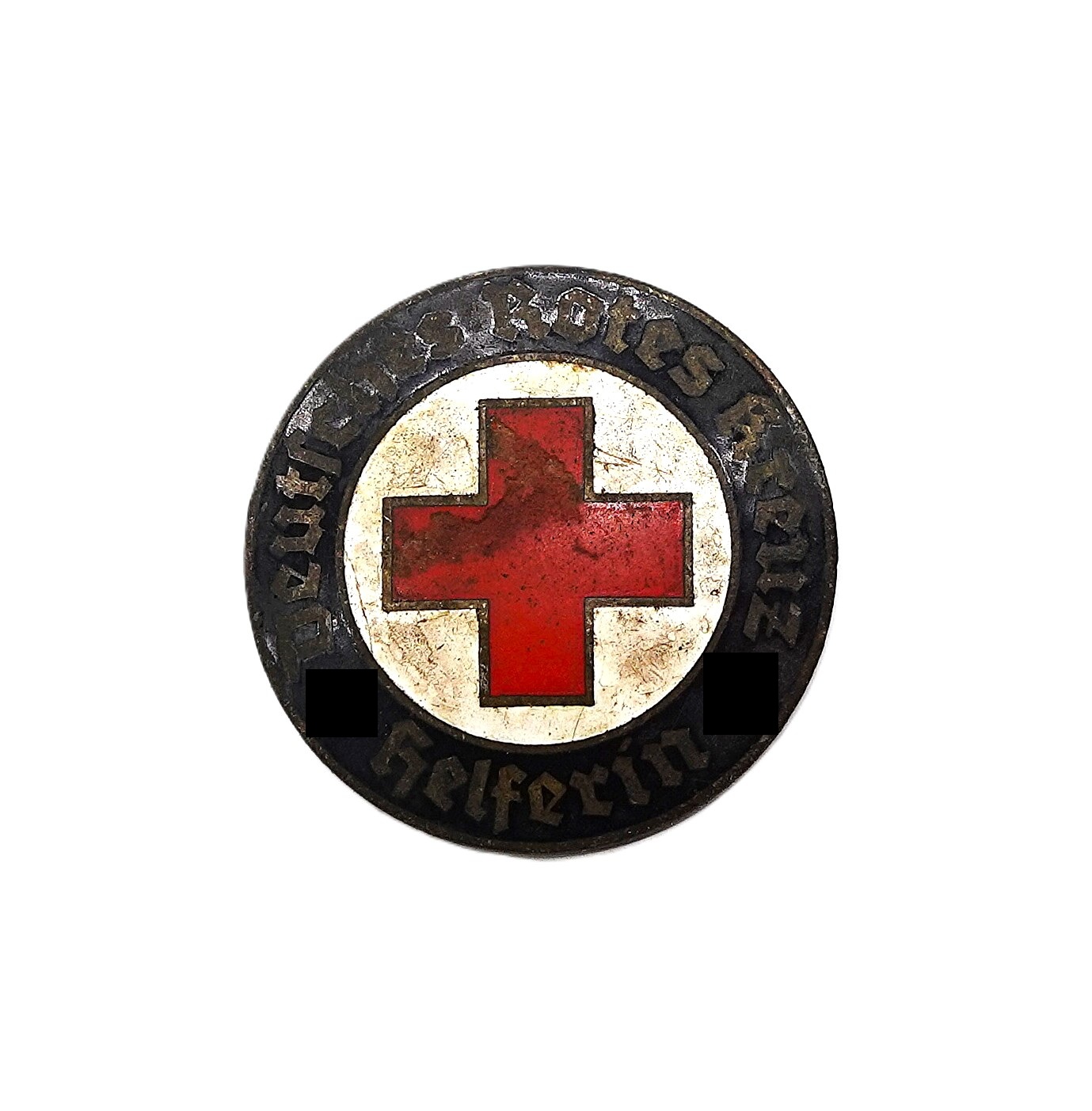 Abzeichen DRK (Deutsches Rotes Kreuz) Brosche – Helferin. Getragener Zustand. Durchmesser 29 mm. Auf der Rückseite steht Ges. Gesch. Bodenfund ohne Nadel.