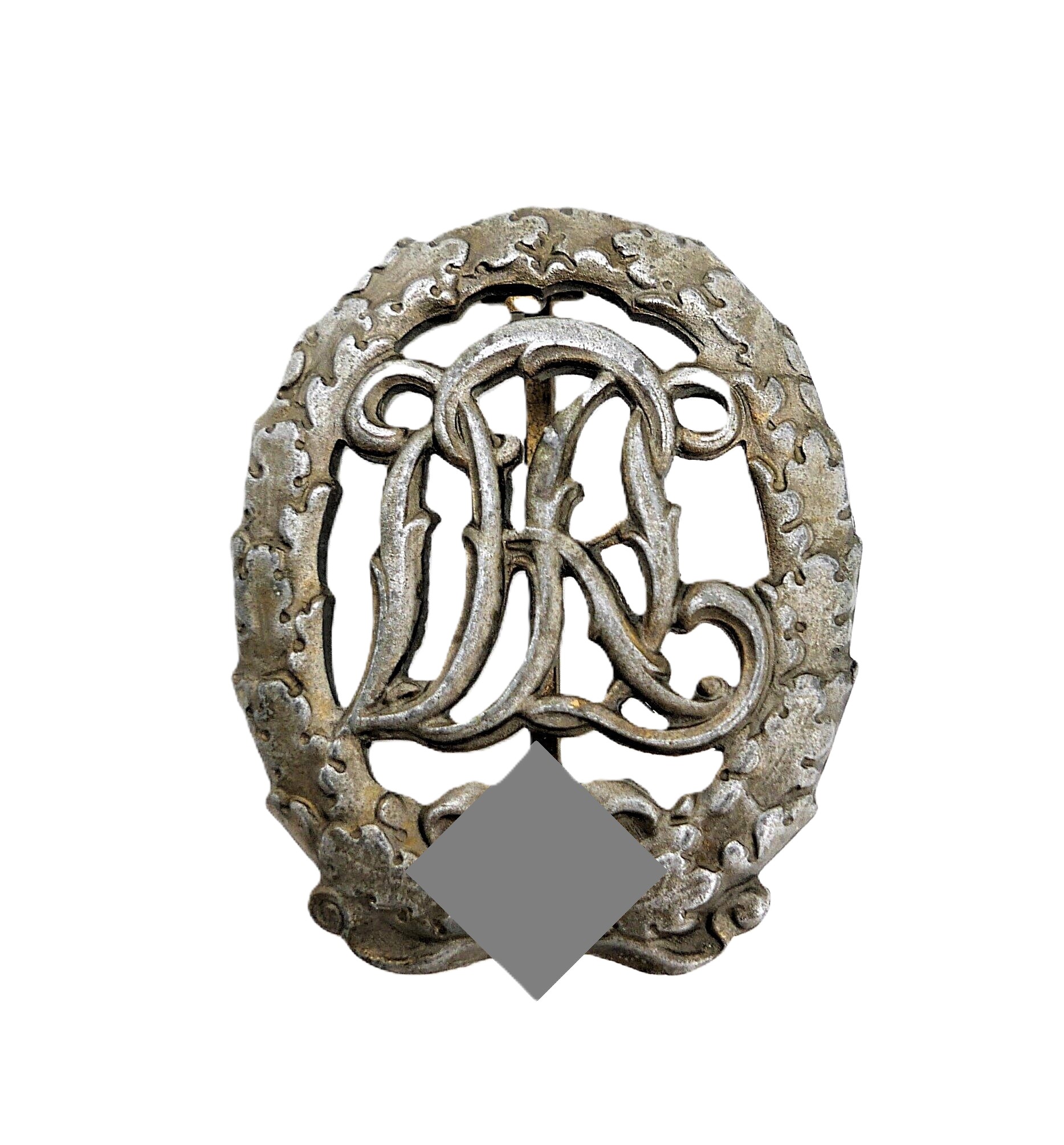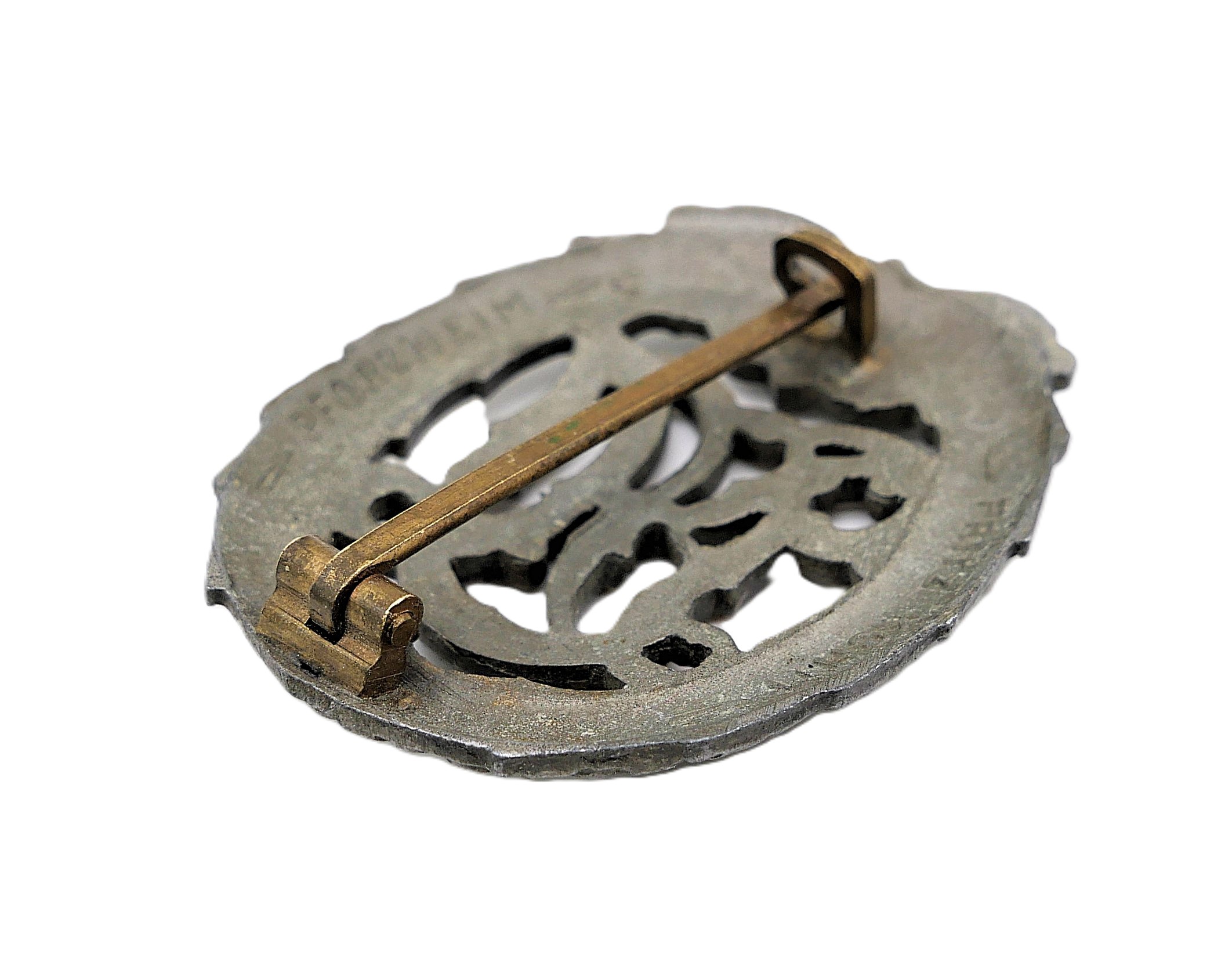 DRL Sportabzeichen Bronze – Hersteller Fritz Kohm, Pforzheim. Getragener Zustand mit vergangener Bronzierung.