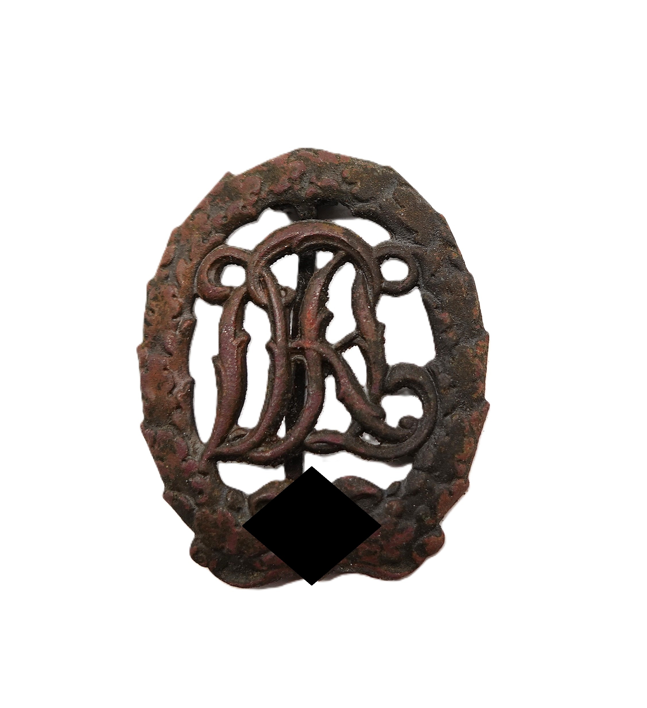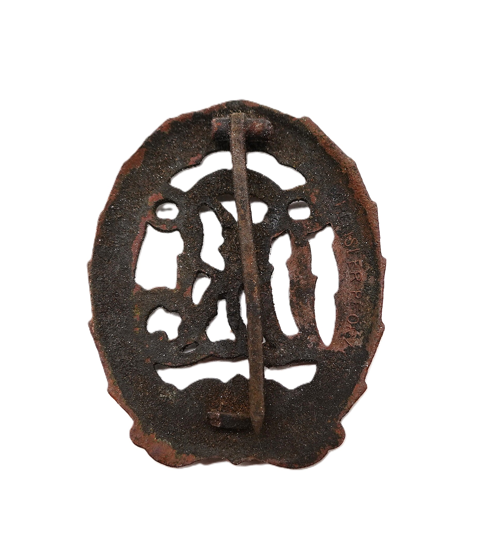 DRL Sportabzeichen – Hersteller Hensler, Pforzheim – D.R.G.M. 35269. Bodenfund ohne Nadelhaken.