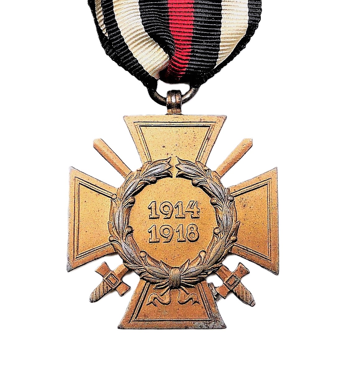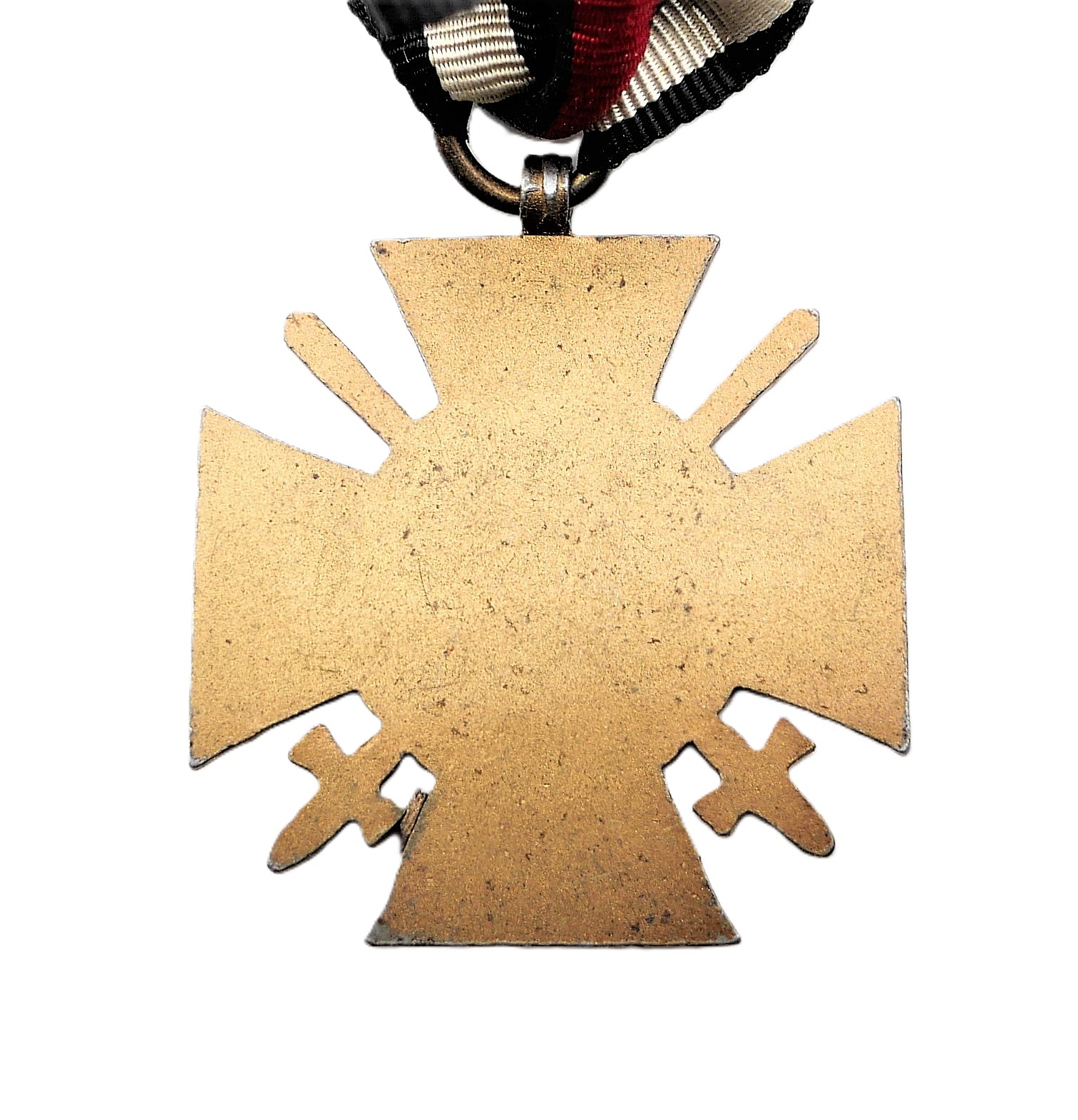 Ehrenkreuz für Frontkämpfer am 14 cm langen Bandabschnitt. Ohne Hersteller. Magnetisch. Getragener Zustand.