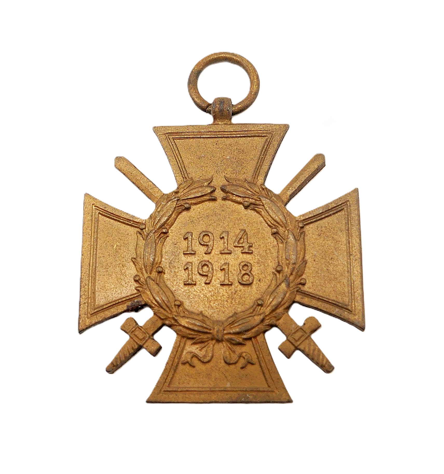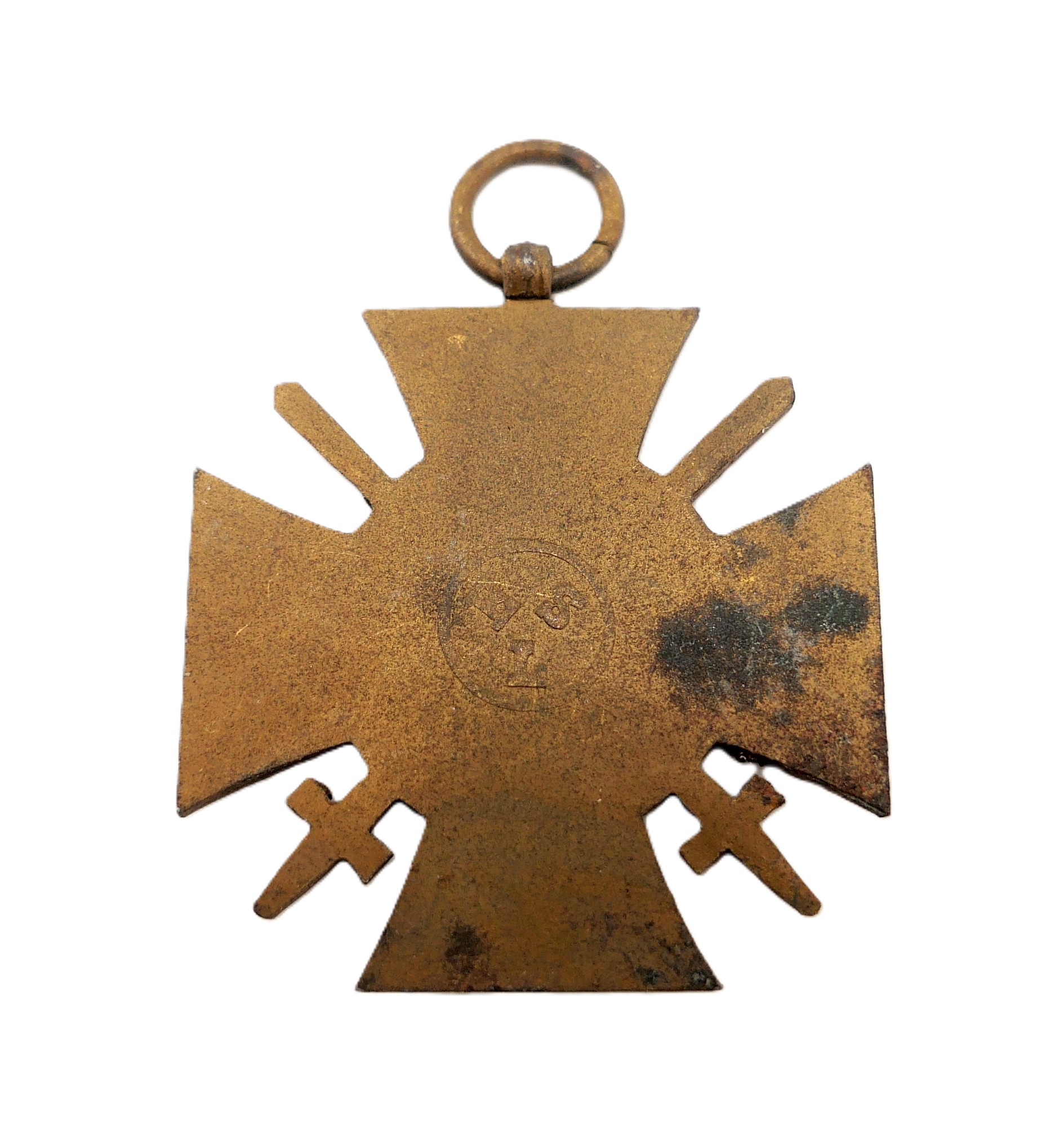 Ehrenkreuz für Frontkämpfer ohne Bandabschnitt. Rückseitig der bisher unbekannte Hersteller ESL im Kreis. Magnetisch. Getragener Zustand.