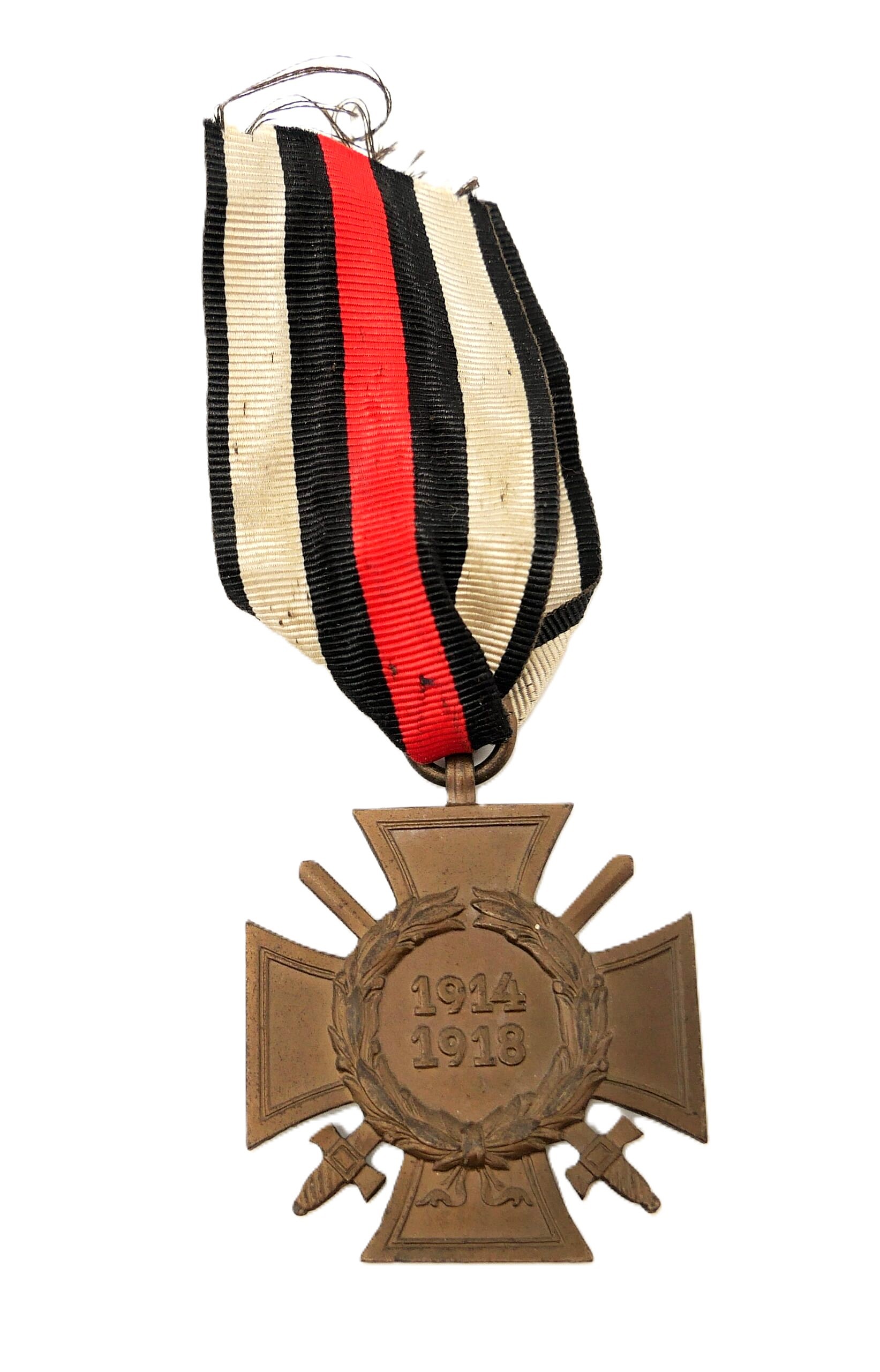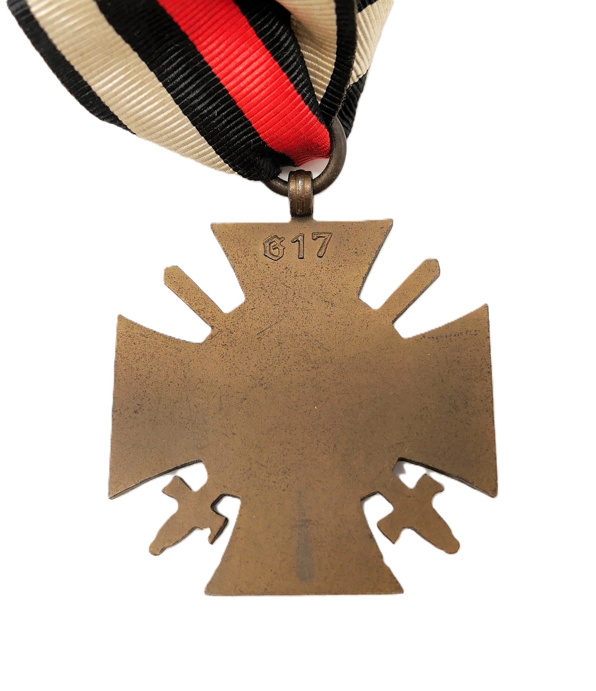 Ehrenkreuz für Frontkämpfer am 11 cm langen Bandabschnitt. Hersteller G 17. Magnetisch. Getragener Zustand.