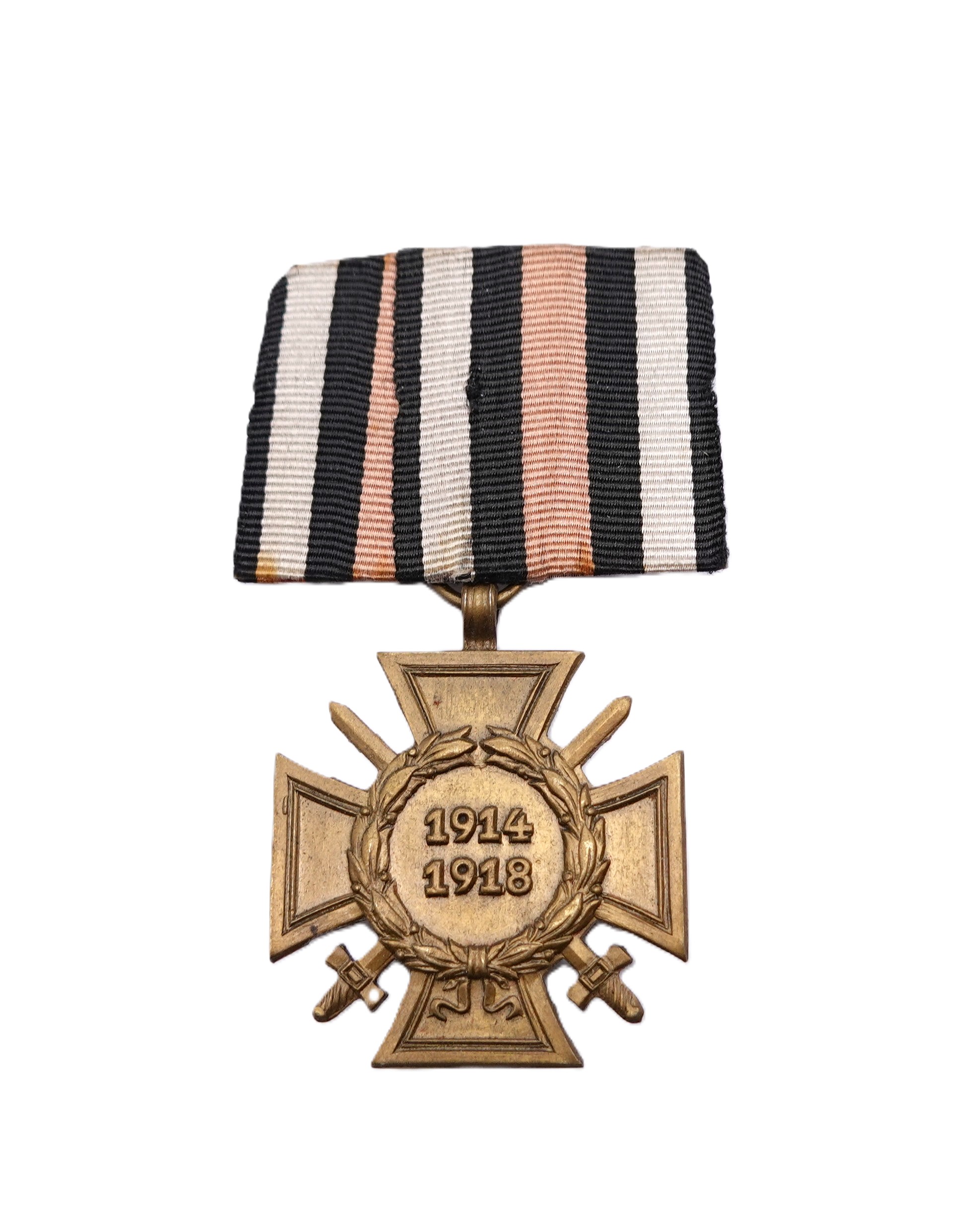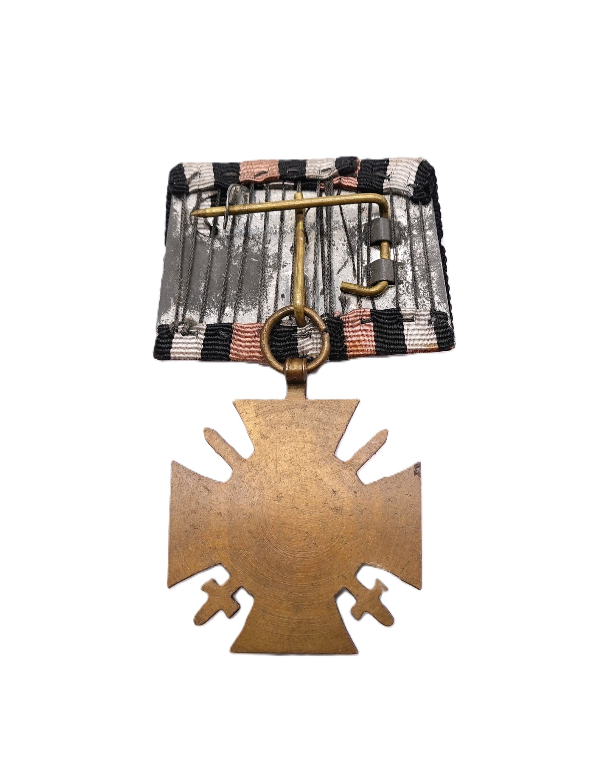 Ehrenkreuz für Frontkämpfer an einer Einzelbandspange. Ohne Hersteller. Magnetisch. Getragener Zustand.