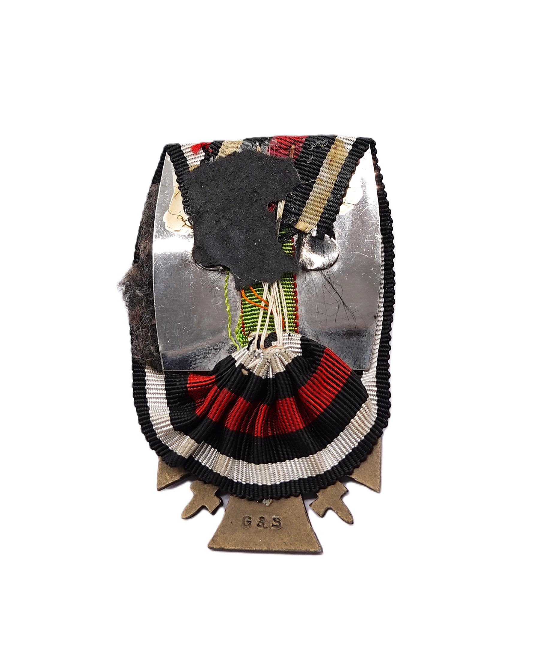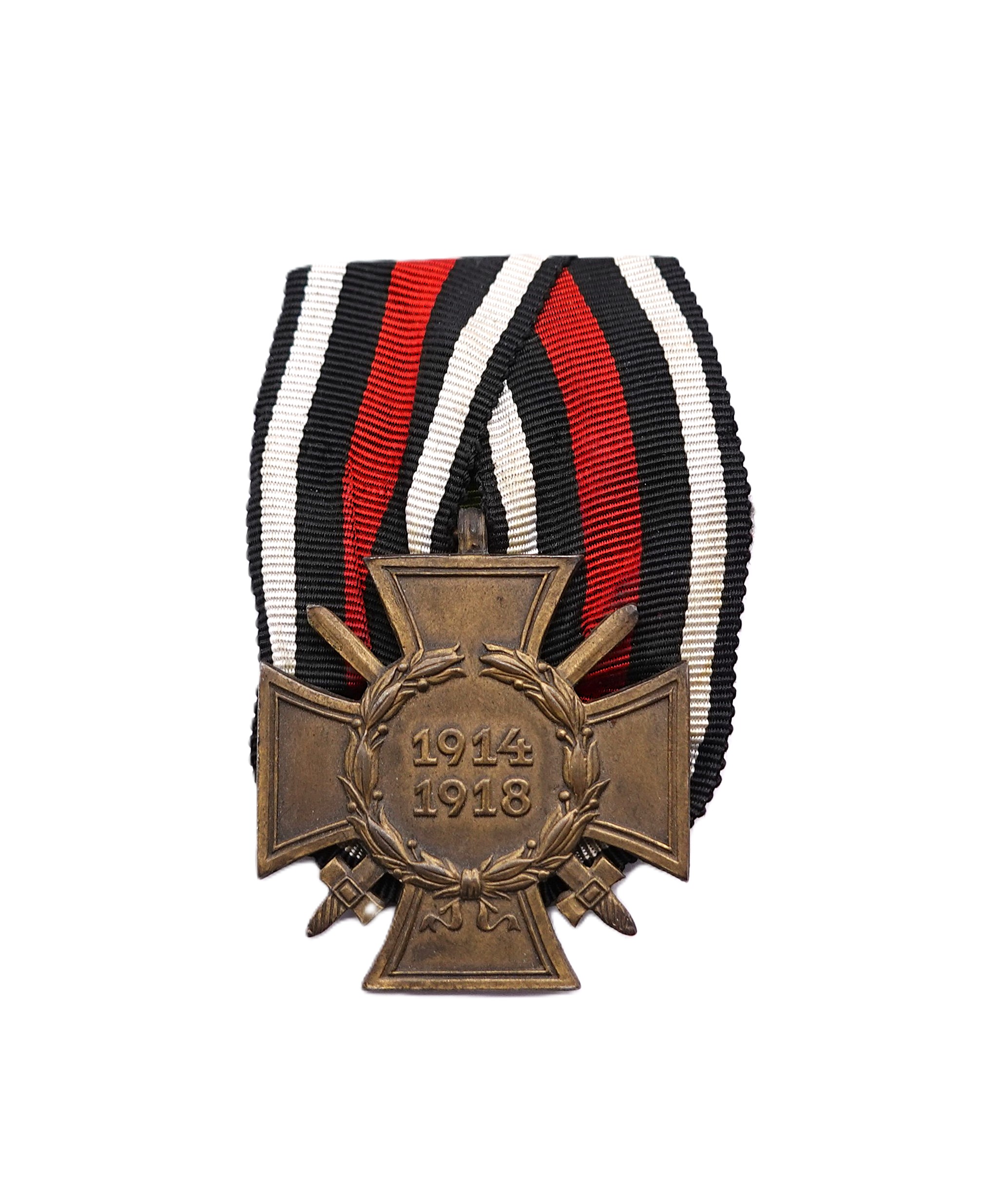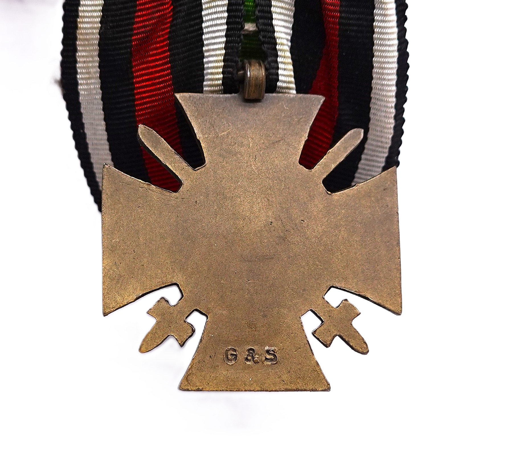 Ehrenkreuz für Frontkämpfer an einer Einzelbandspange. Hersteller G & S. Magnetisch. Anstecknadel und rückseitige Abdeckung fehlen. Getragener Zustand.