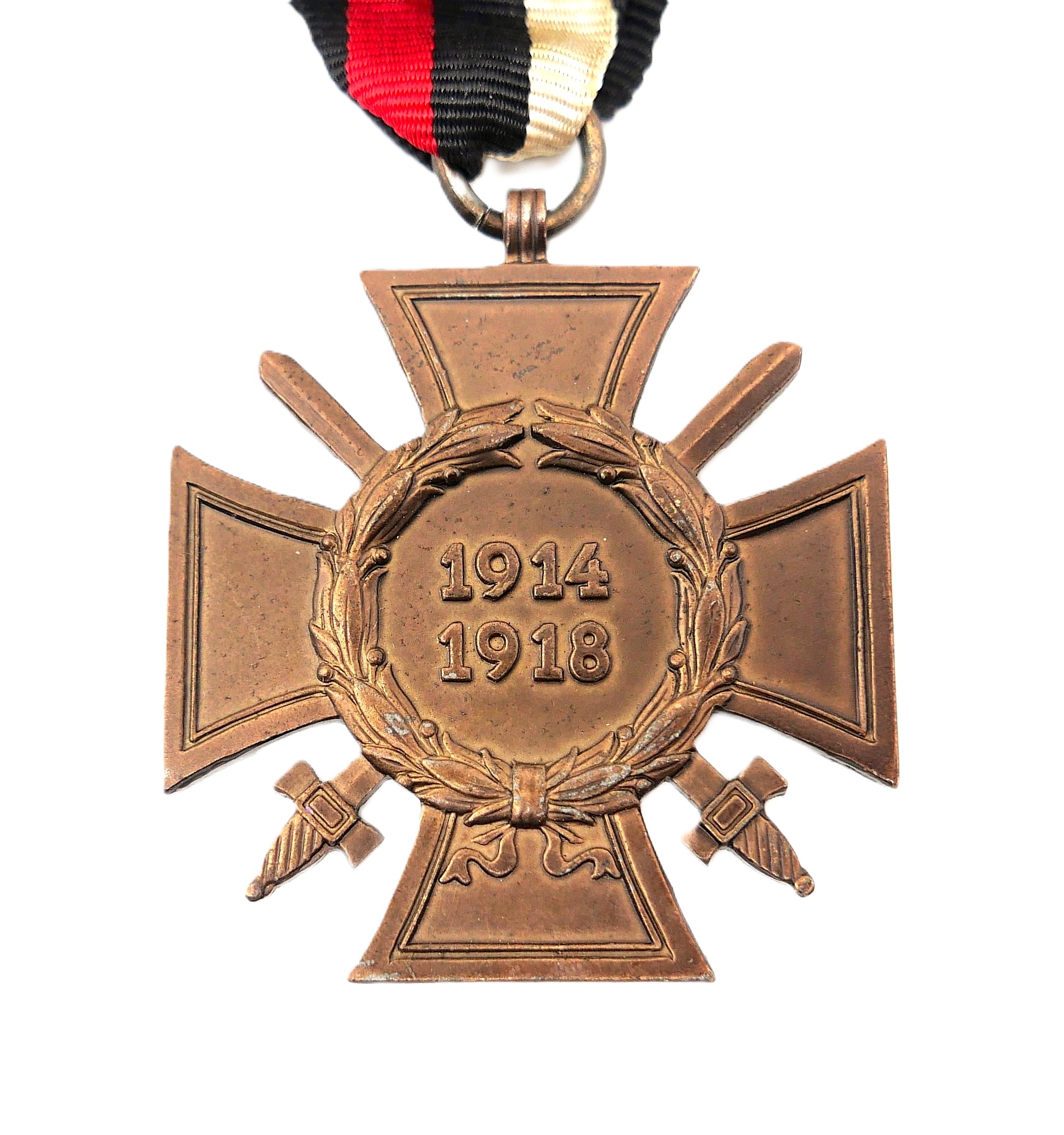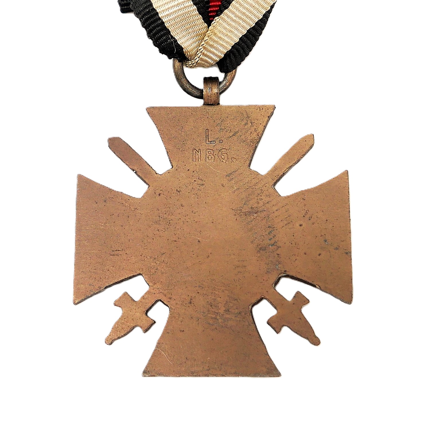 Ehrenkreuz für Frontkämpfer am 14 cm langen Bandabschnitt. Hersteller L. NBG. (L. Ch. Lauer, Nürnberg – Berlin). Magnetisch. Getragener Zustand.
