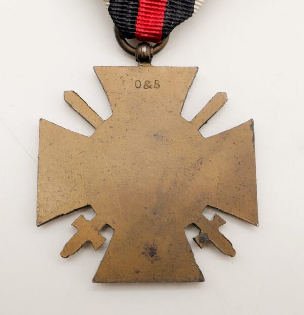 Ehrenkreuz für Frontkämpfer am 13,7 cm langen Bandabschnitt. Rückseitig der unbekannte Hersteller O & B. Magnetisch. Schöner Zustand.