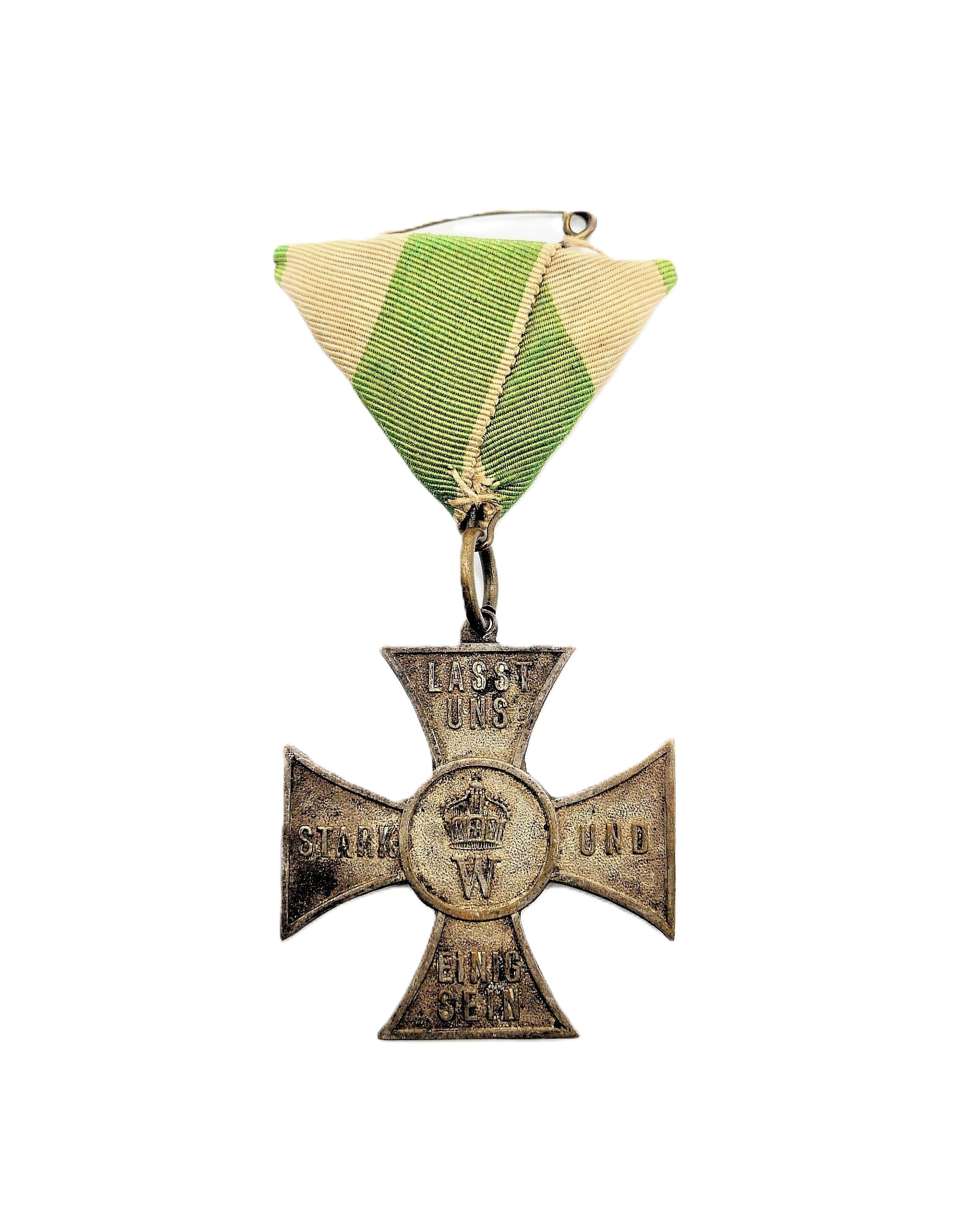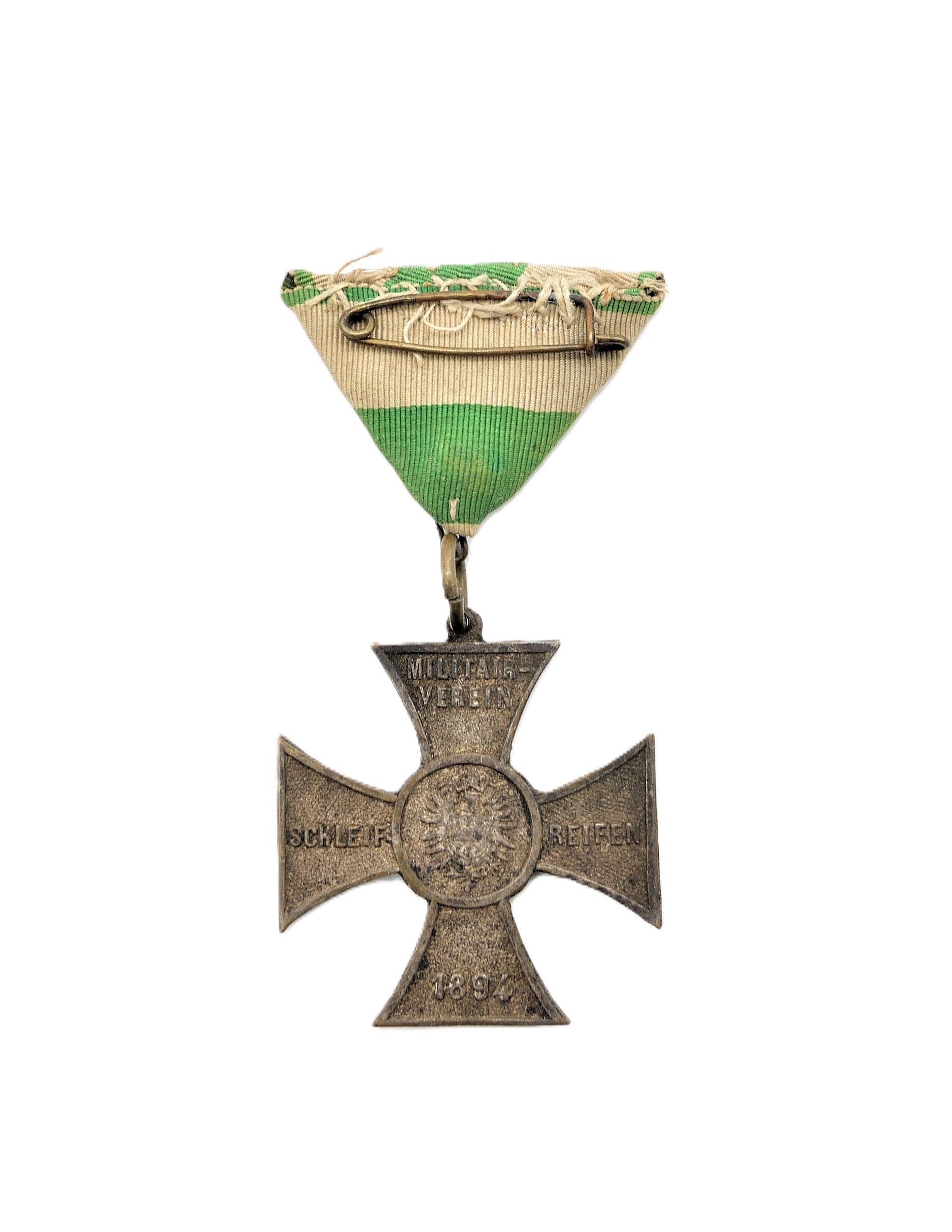Ehrenkreuz – Militärverein Schleifreifen 1894 am Dreiecksband. Getragener Zustand.