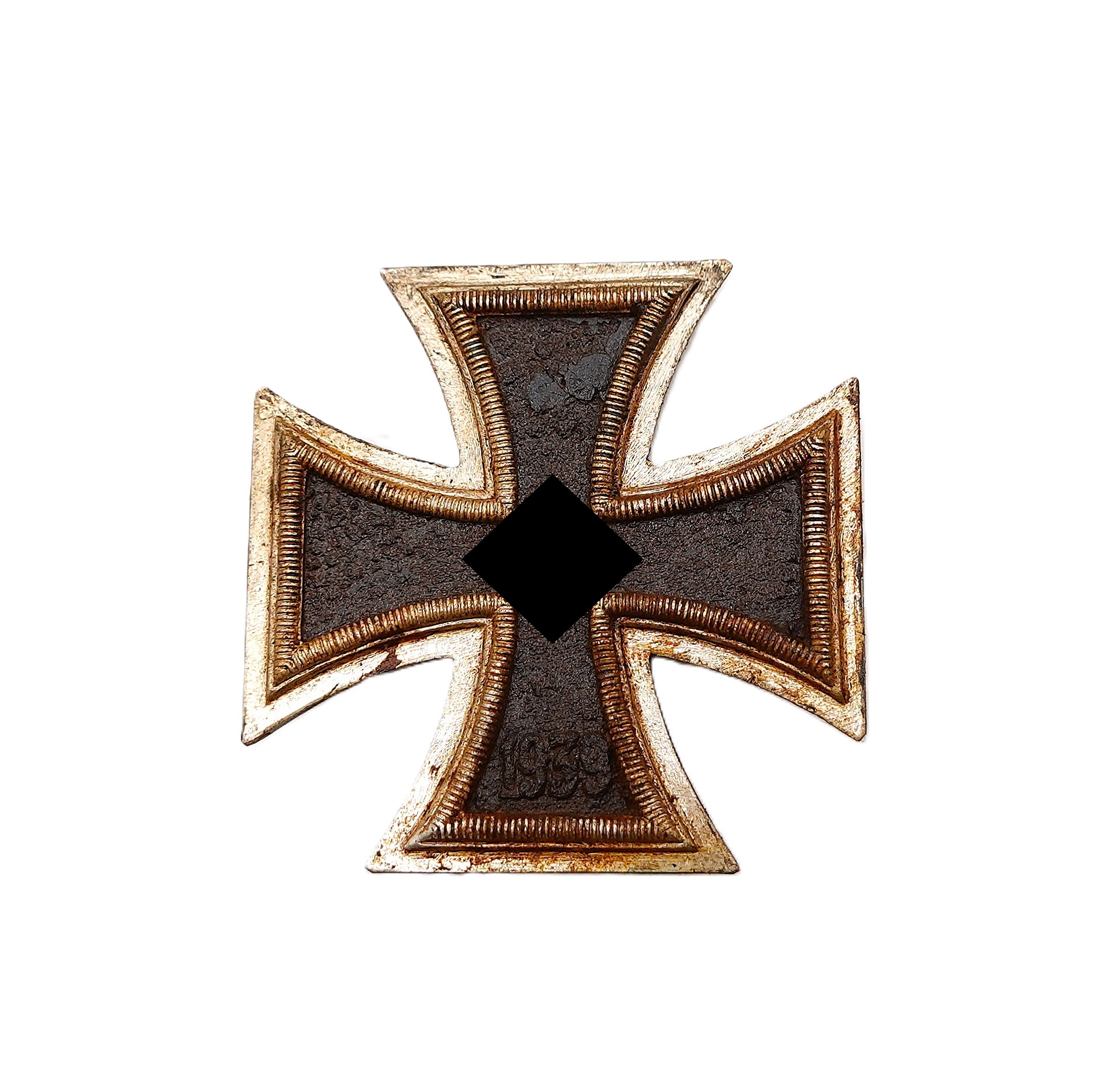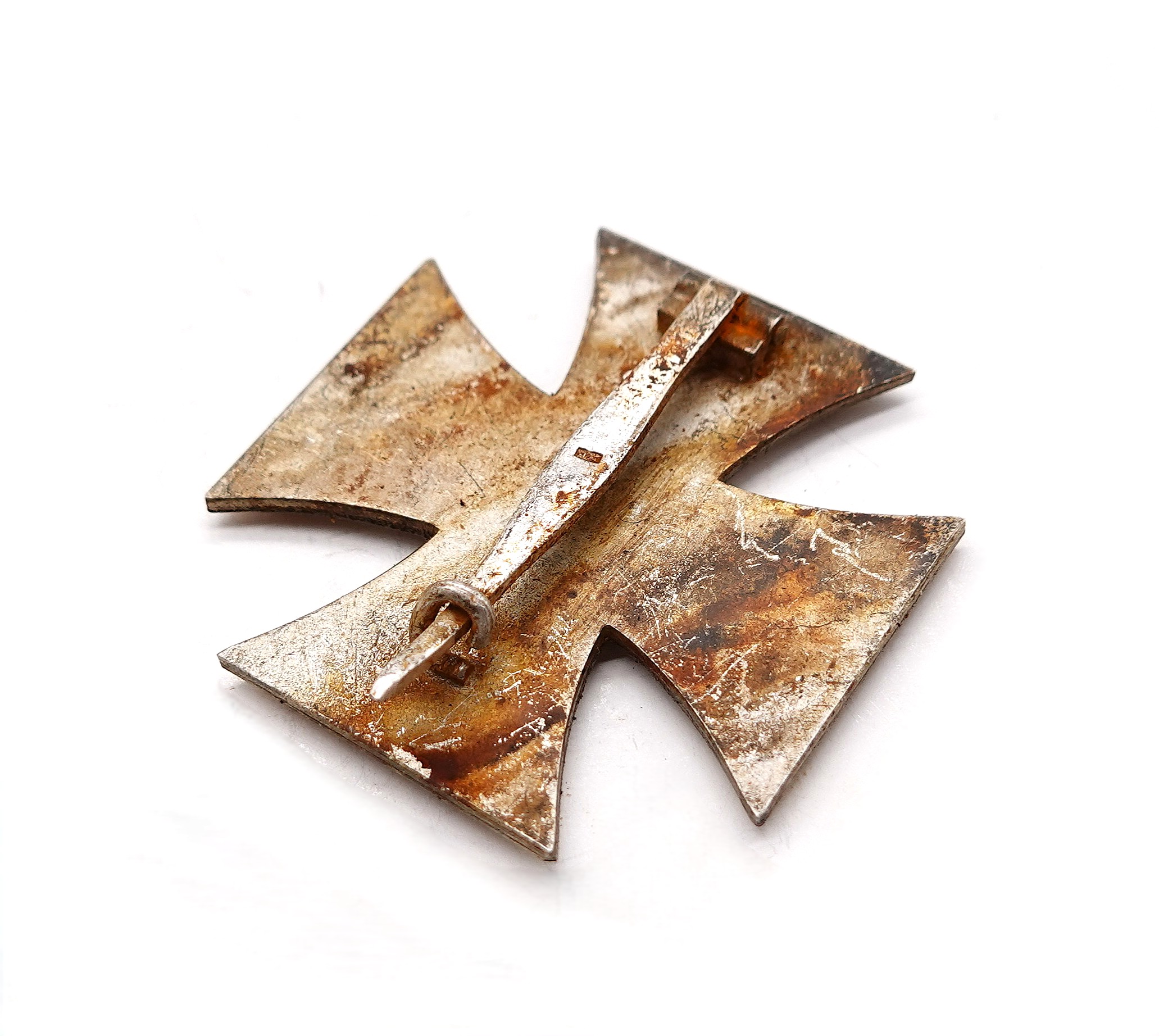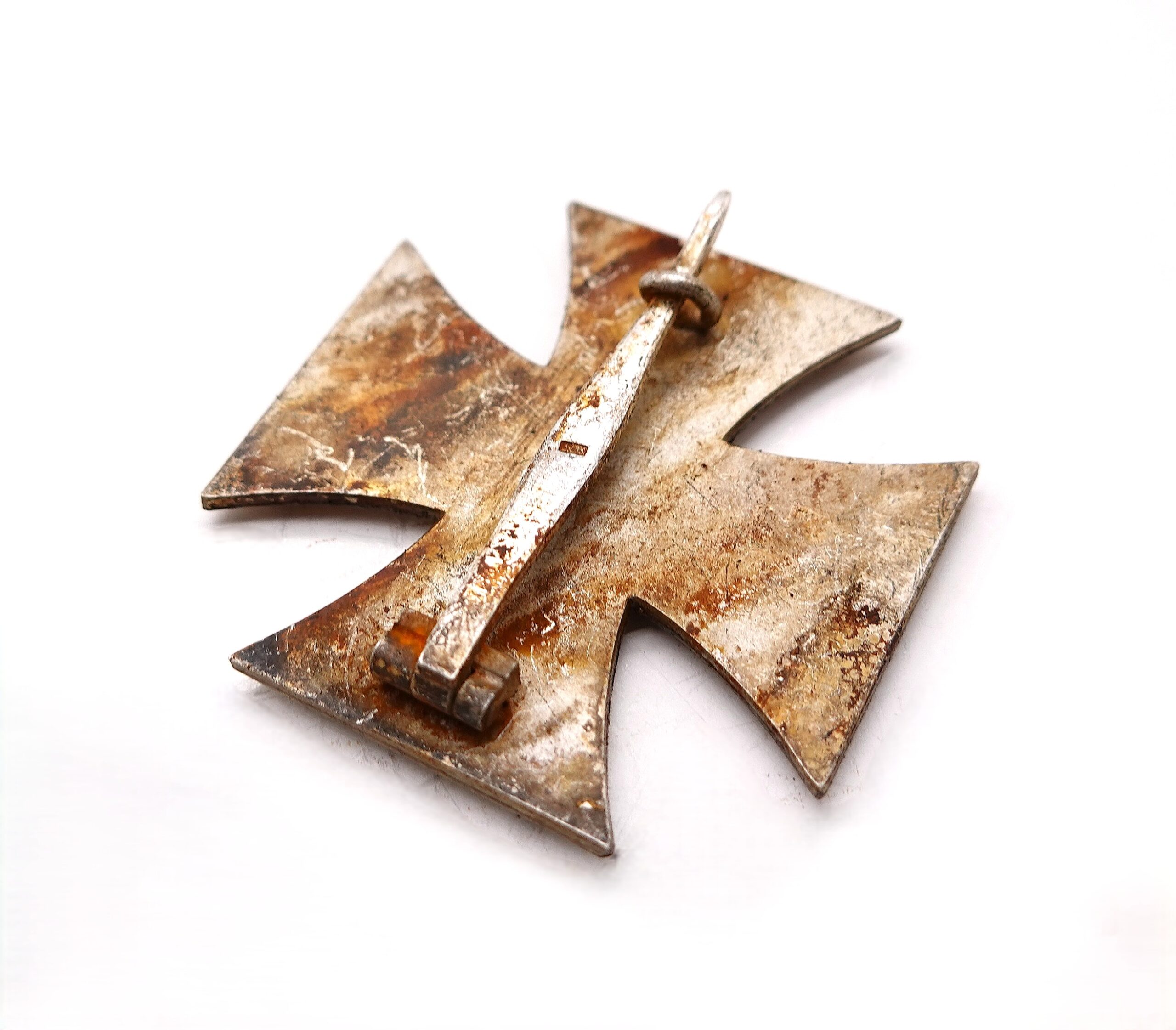Eisernes Kreuz 1. Klasse 1939. Hersteller 15 (Friedrich Orth, Wien). Magnetischer Kern. Wurde wohl nie getragen. Lag aber feucht. Durch die schlechte Lagerung hat es einige Roststellen. HK ebenfalls rostig. Nadel läßt sich schwer öffnen. Gewicht 20,6 Gramm.