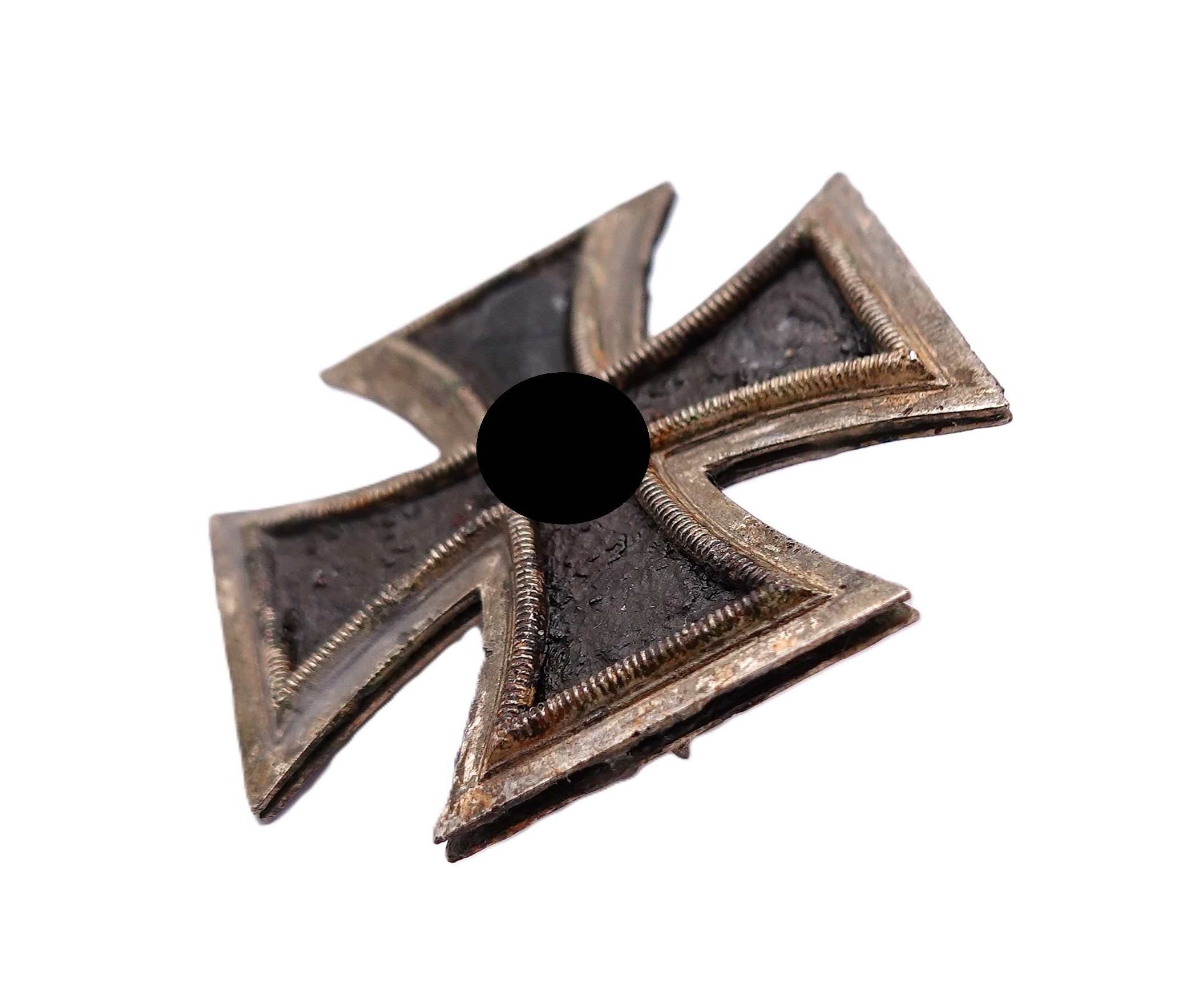 Eisernes Kreuz 1. Klasse 1939. Mit Schraubscheibe. Ohne Hersteller. Rahmen teilweise offen. Schraubscheibe läßt sich drehen. Gut erhaltener Bodenfund. Gewicht 21,3 Gramm.