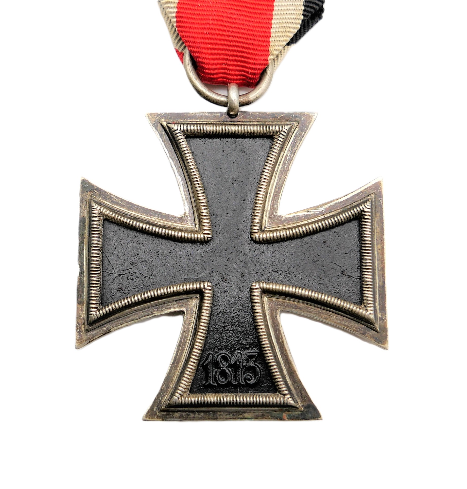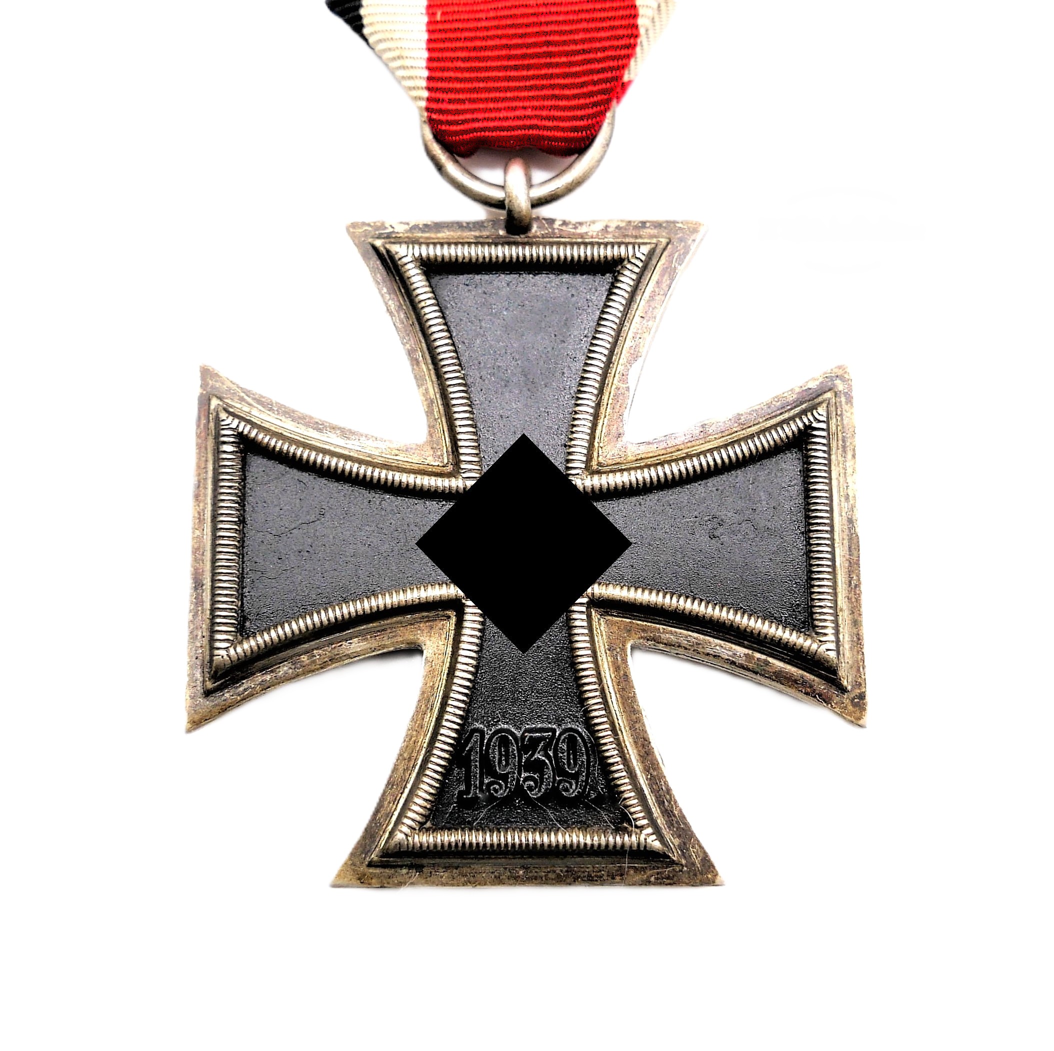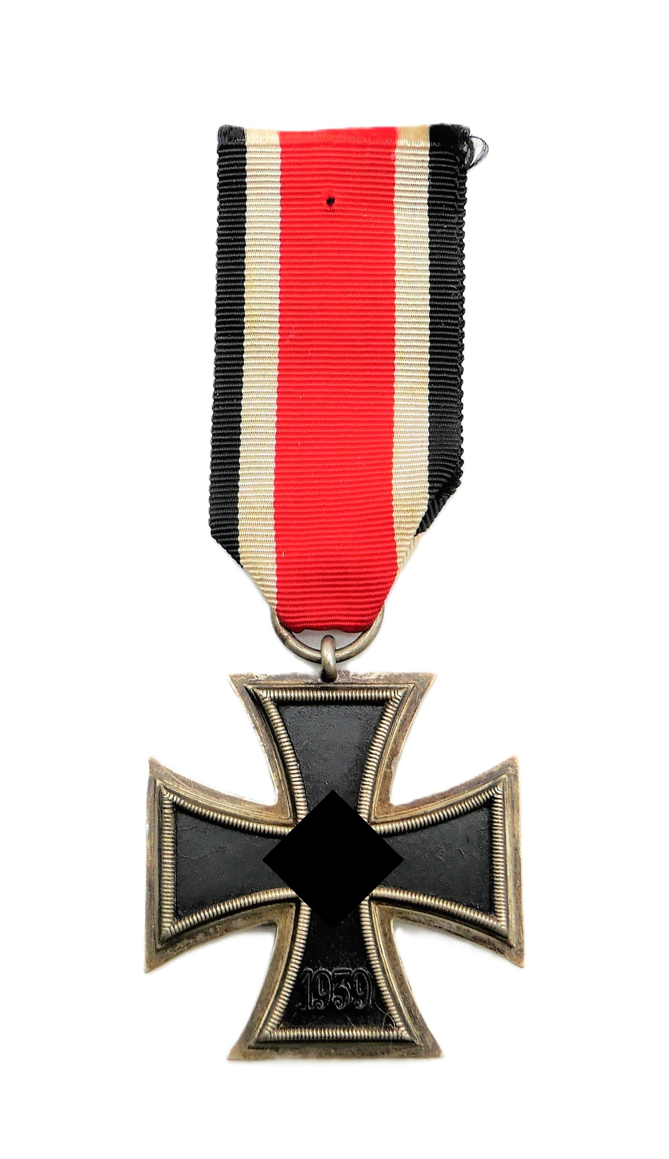 Eisernes Kreuz 2. Klasse 1939 am 12,5 cm langen Bandabschnitt. Ohne Hersteller. Magnetischer Kern mit fast vollständiger Kernschwärze. Gewicht 20,3 Gramm.