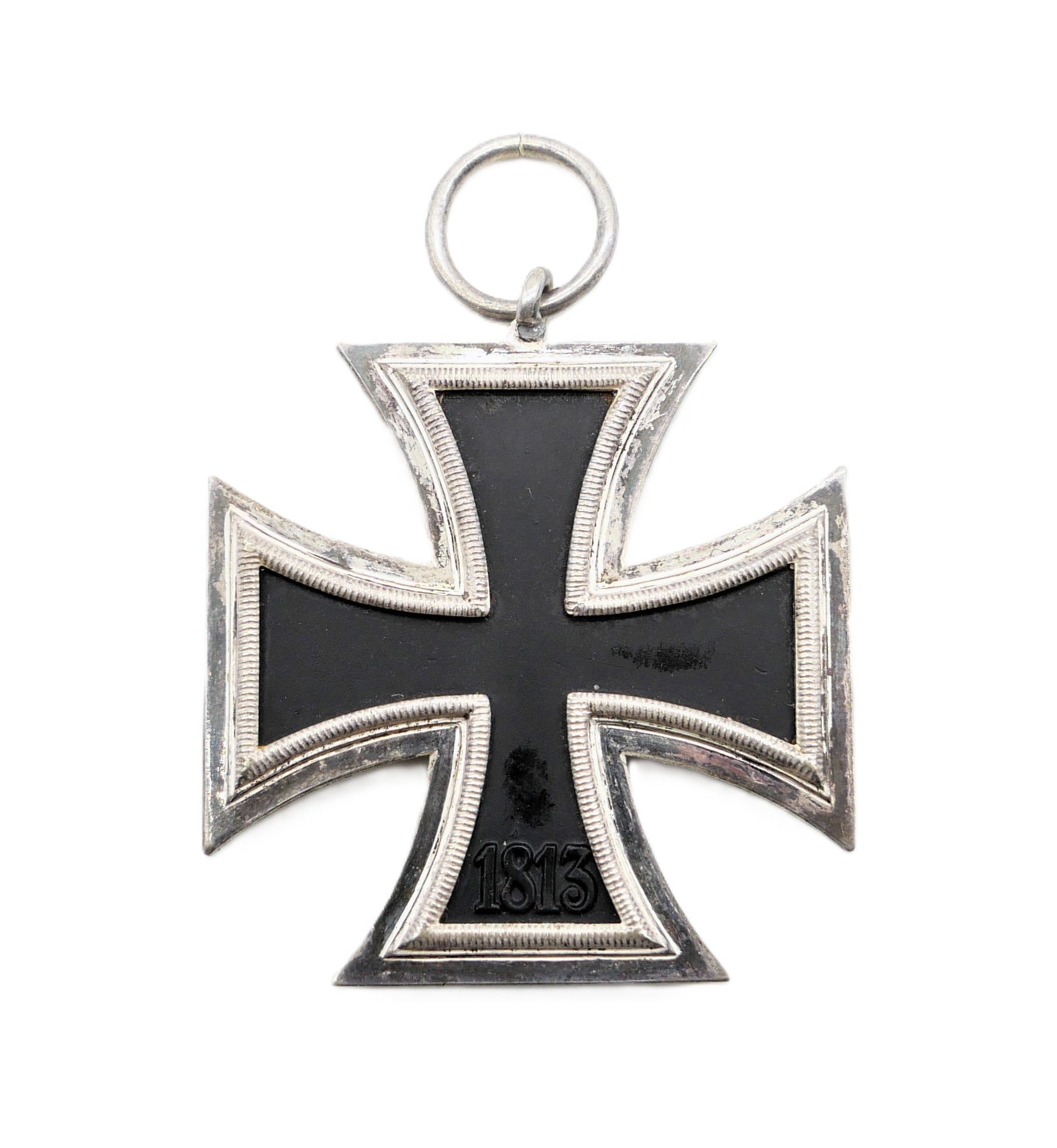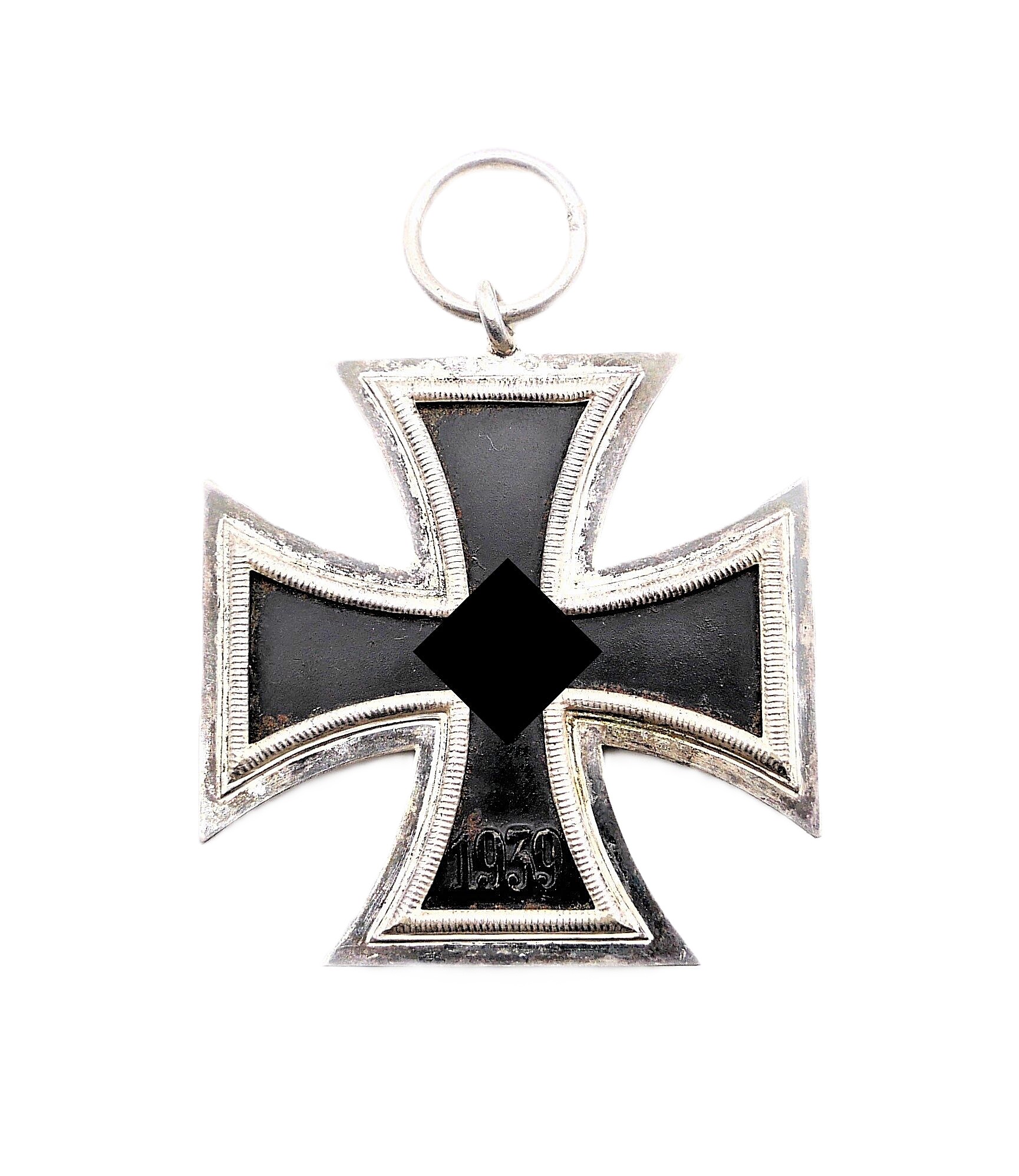 Eisernes Kreuz 2. Klasse 1939 ohne Bandabschnitt. Ohne Hersteller. Mattschwarzer, magnetischer Kern mit fast voller Kernschwärze. Hat kleinere Roststellen. HK mit 70 % Farbe. Gewicht 20,2 Gramm.