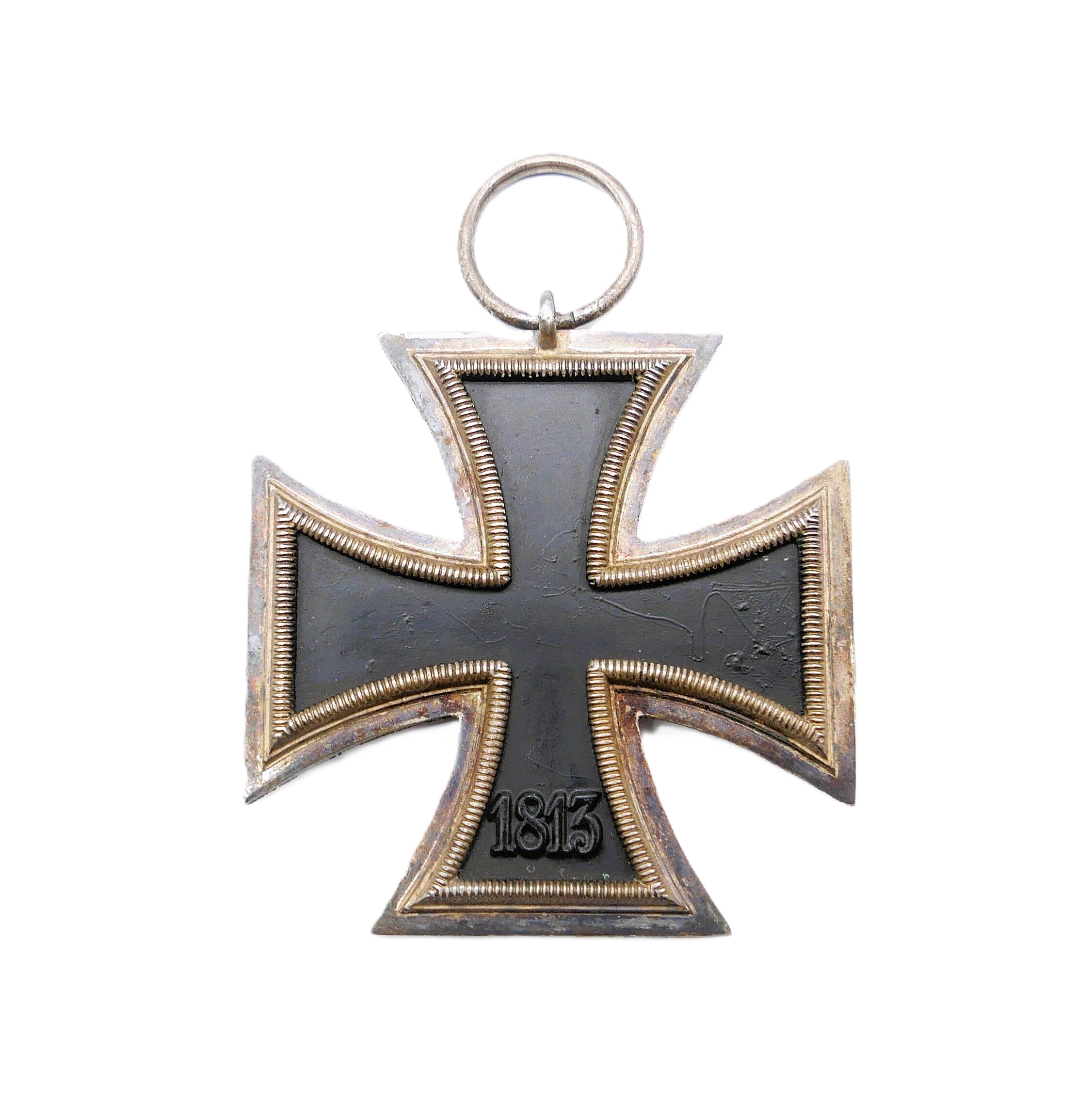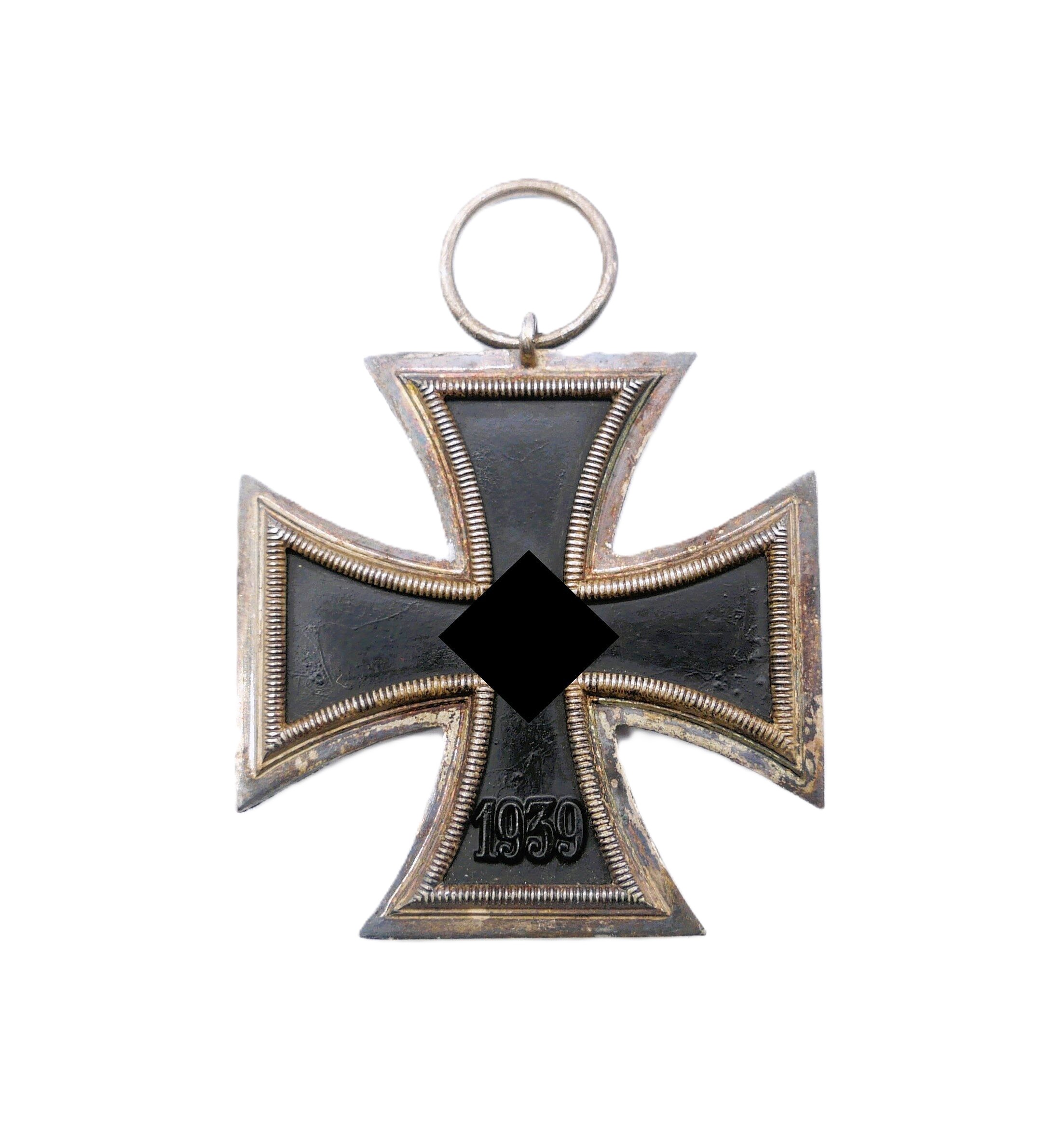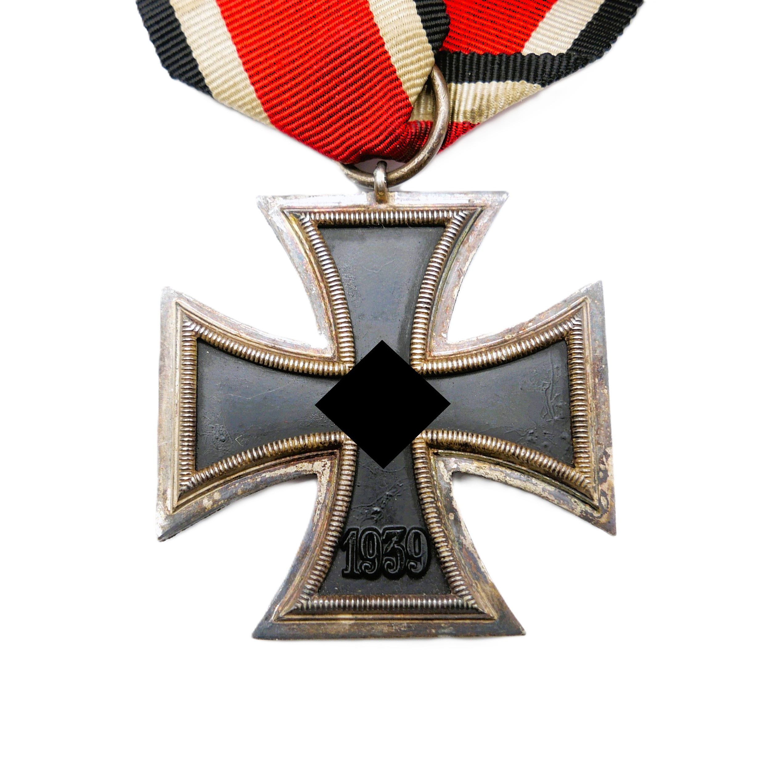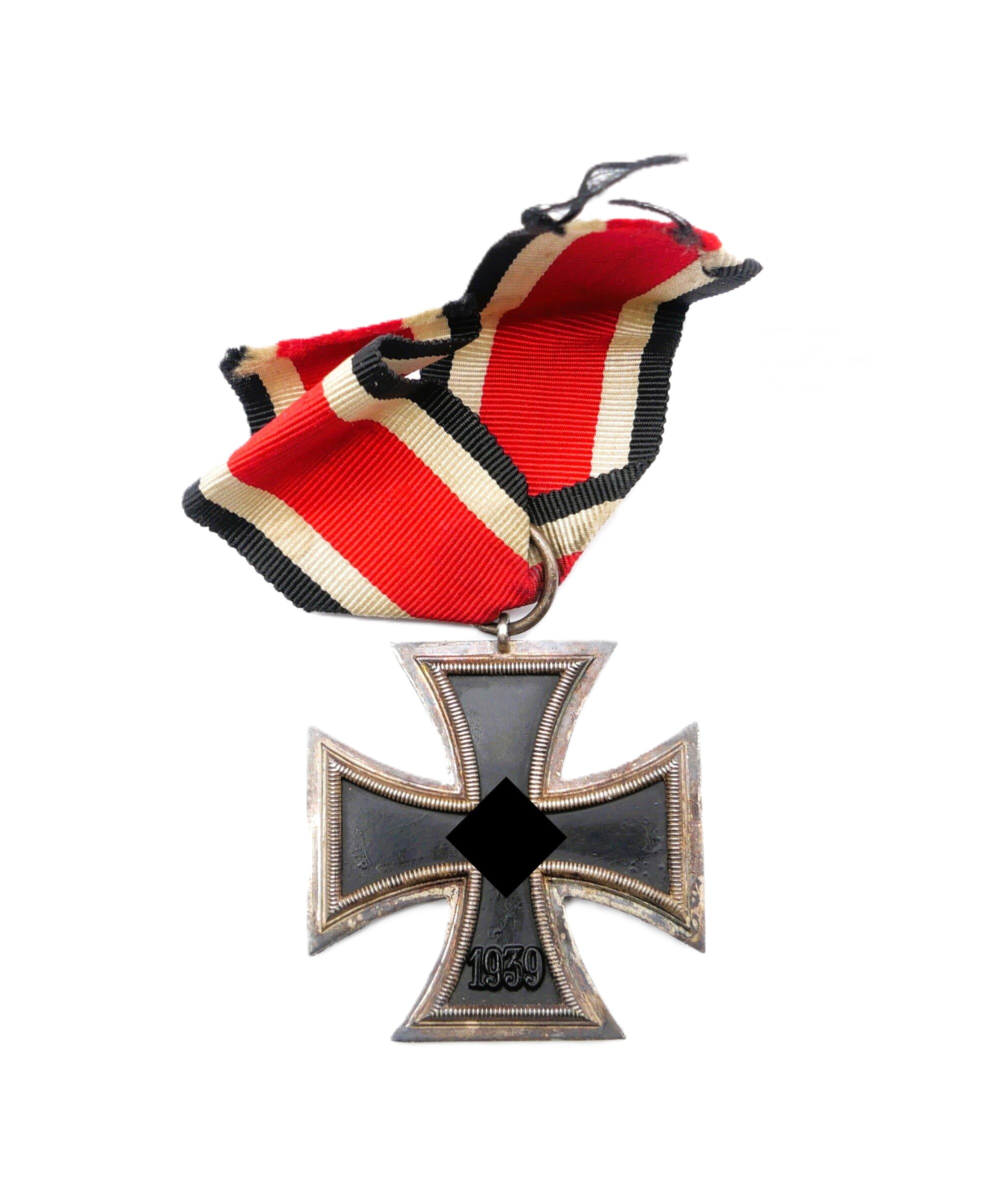 Eisernes Kreuz 2. Klasse 1939 am 13,5 cm langen Bandabschnitt. Ohne Hersteller. Magnetischer Kern mit fast voller Kernschwärze. Gewicht 19,1 Gramm.
