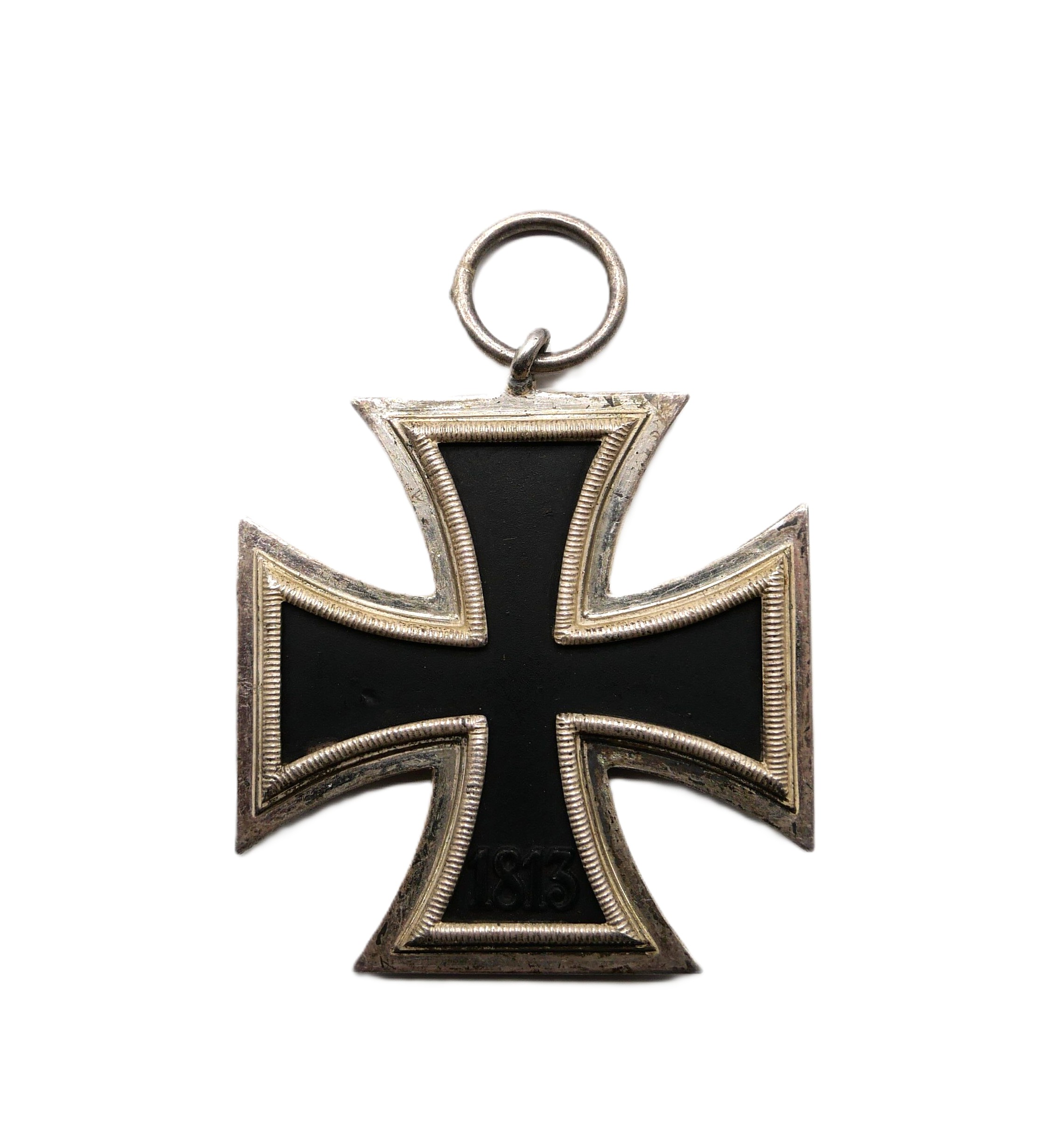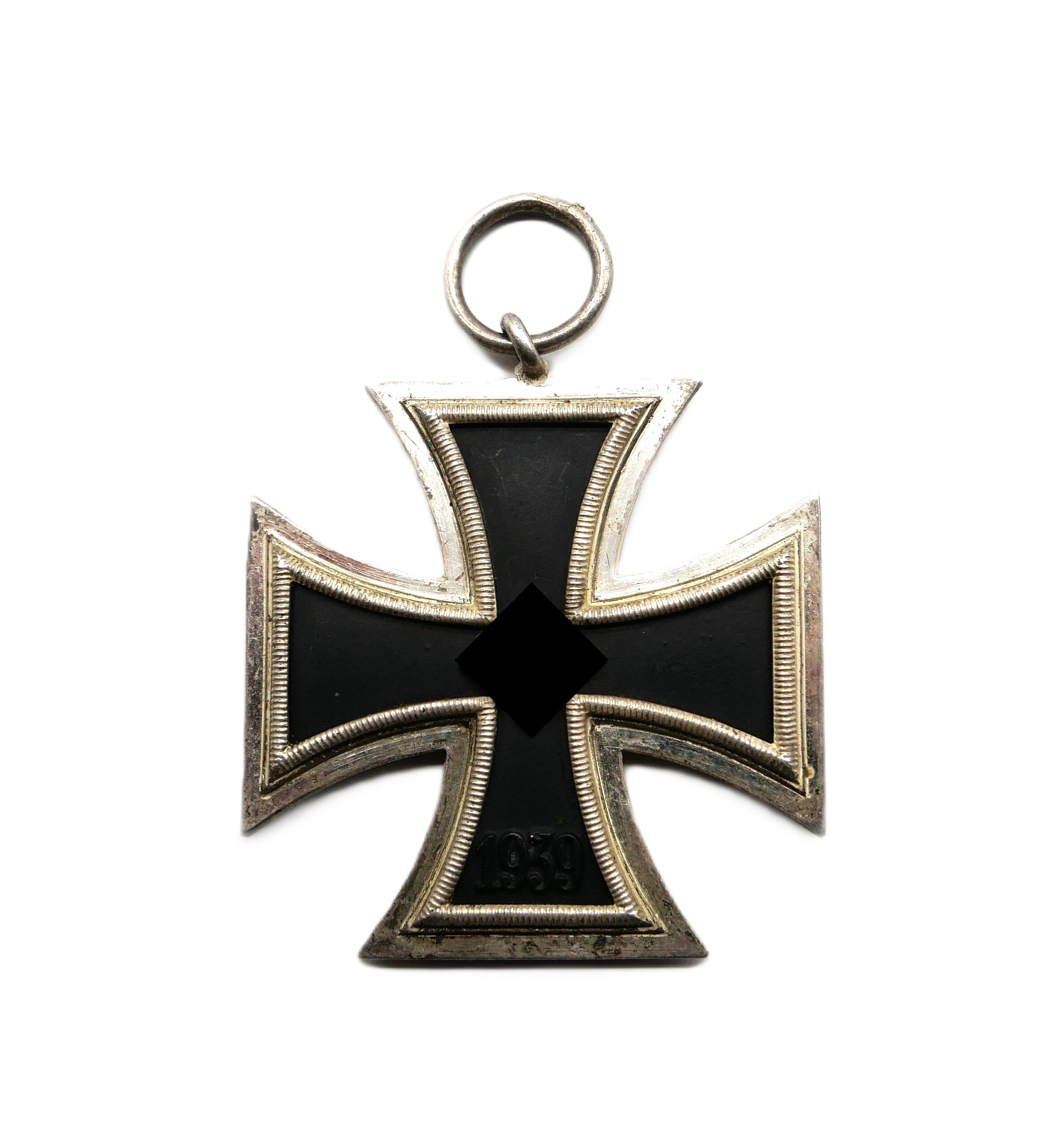 Eisernes Kreuz 2. Klasse 1939 ohne Bandabschnitt. Ohne Hersteller. Mattschwarzer, magnetischer Kern mit fast voller Kernschwärze. HK und darum mit etwas Farbverlust. Gewicht 21,2 Gramm.
