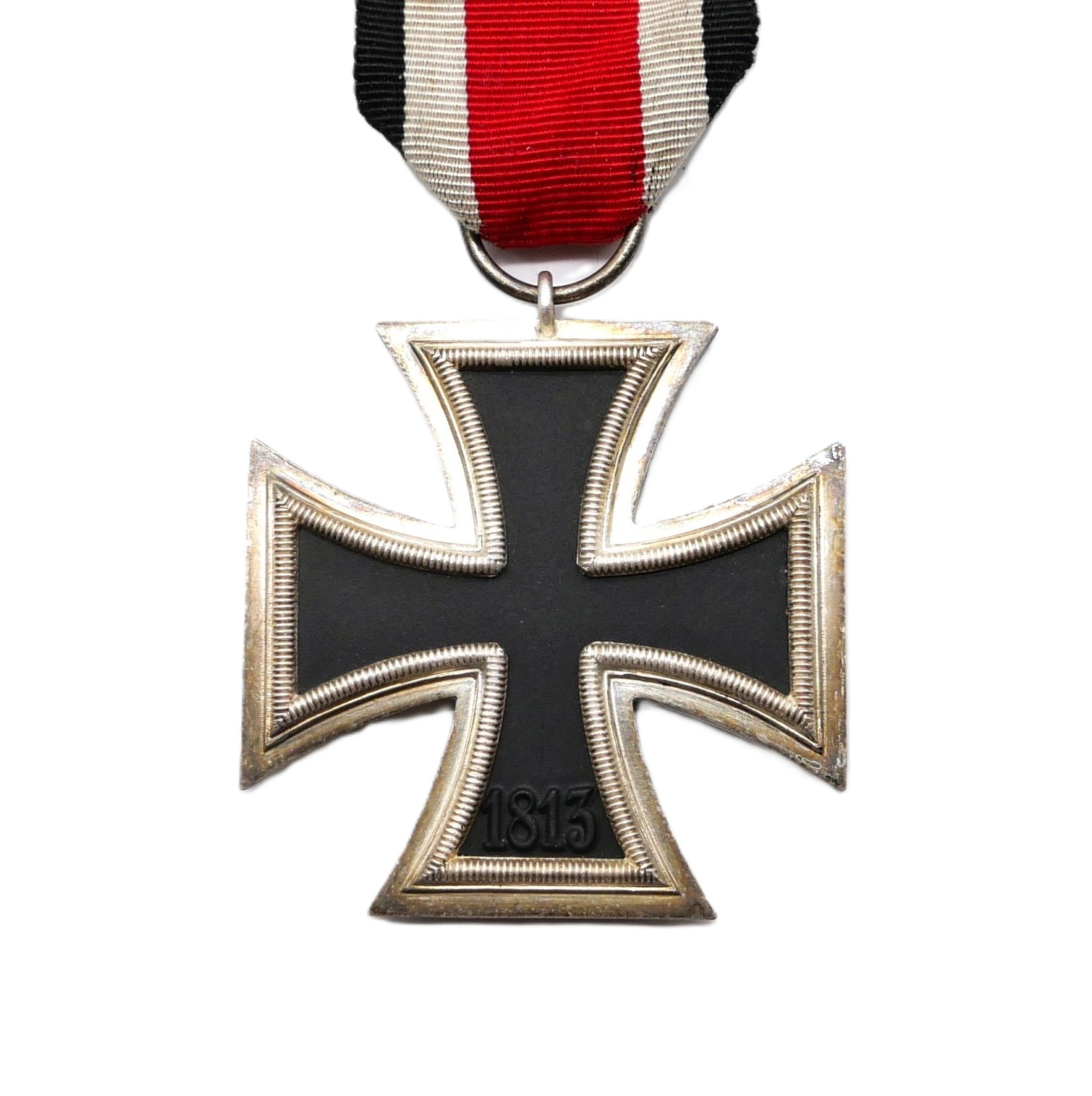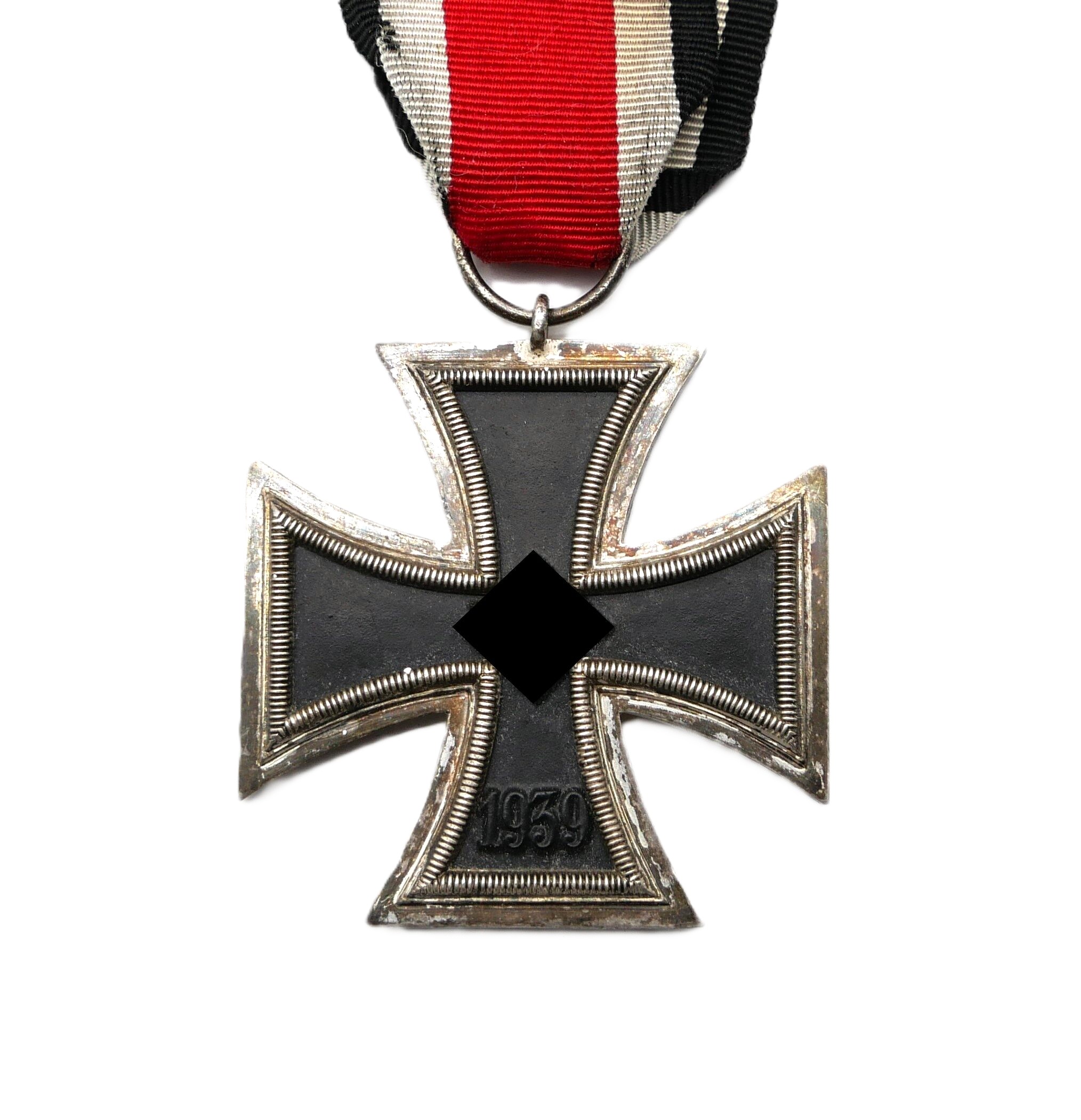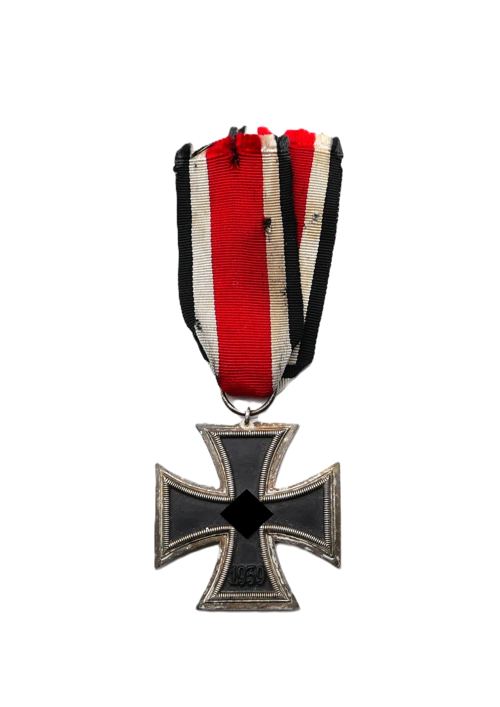 Eisernes Kreuz 2. Klasse 1939 am 13,2 cm langen Bandabschnitt. Ohne Hersteller. Magnetischer Kern mit fast voller Kernschwärze. Gewicht 20,2 Gramm.