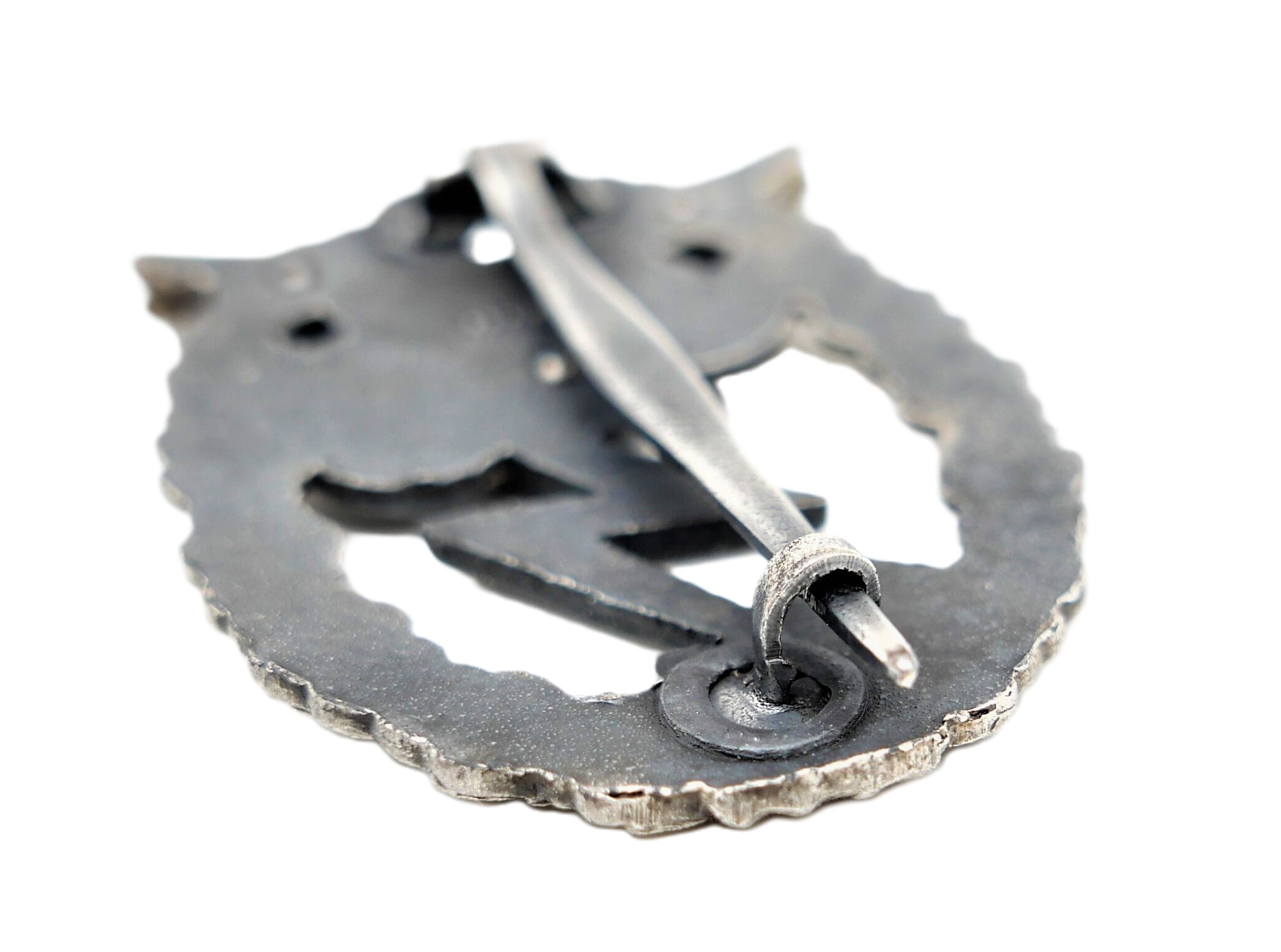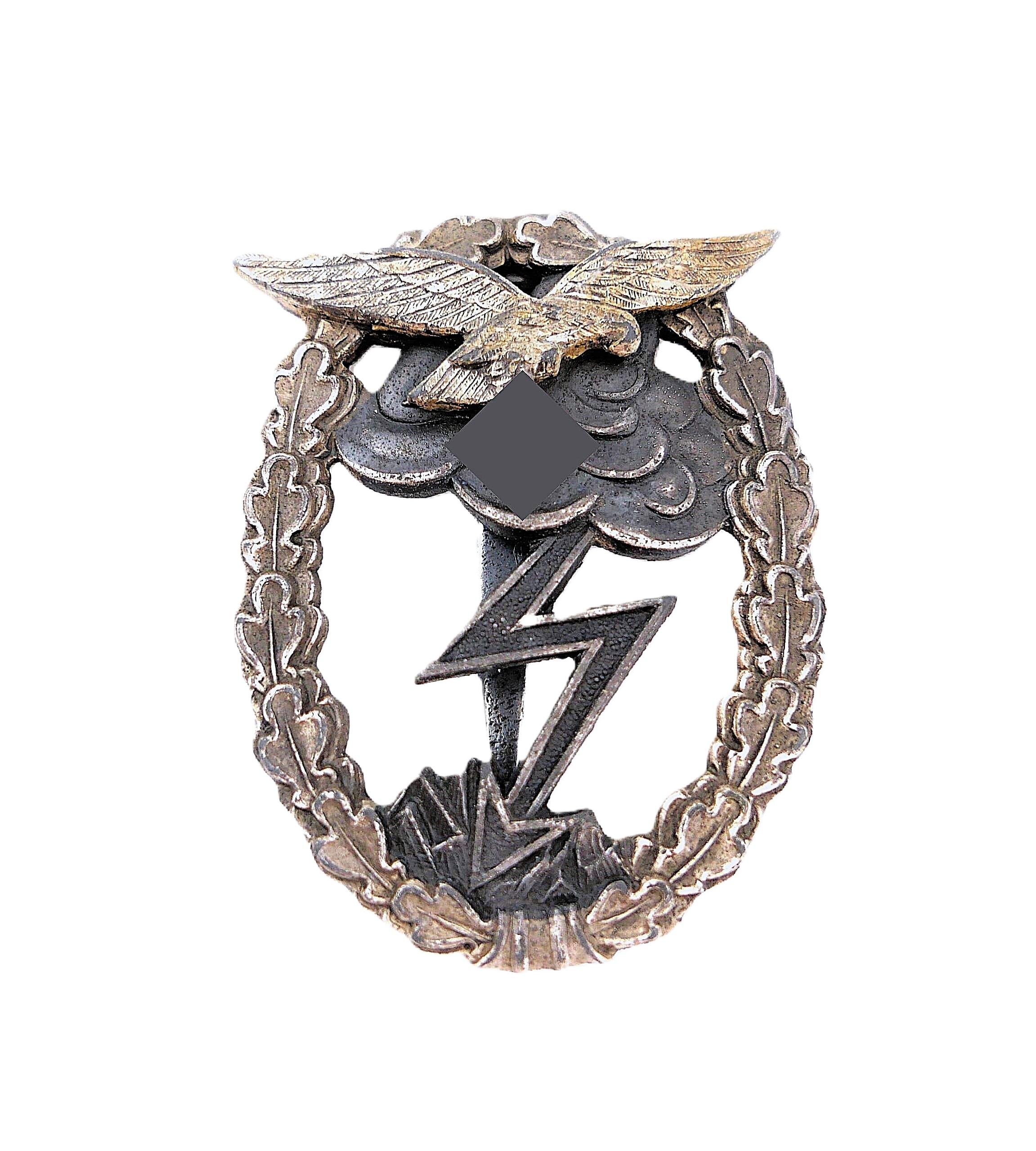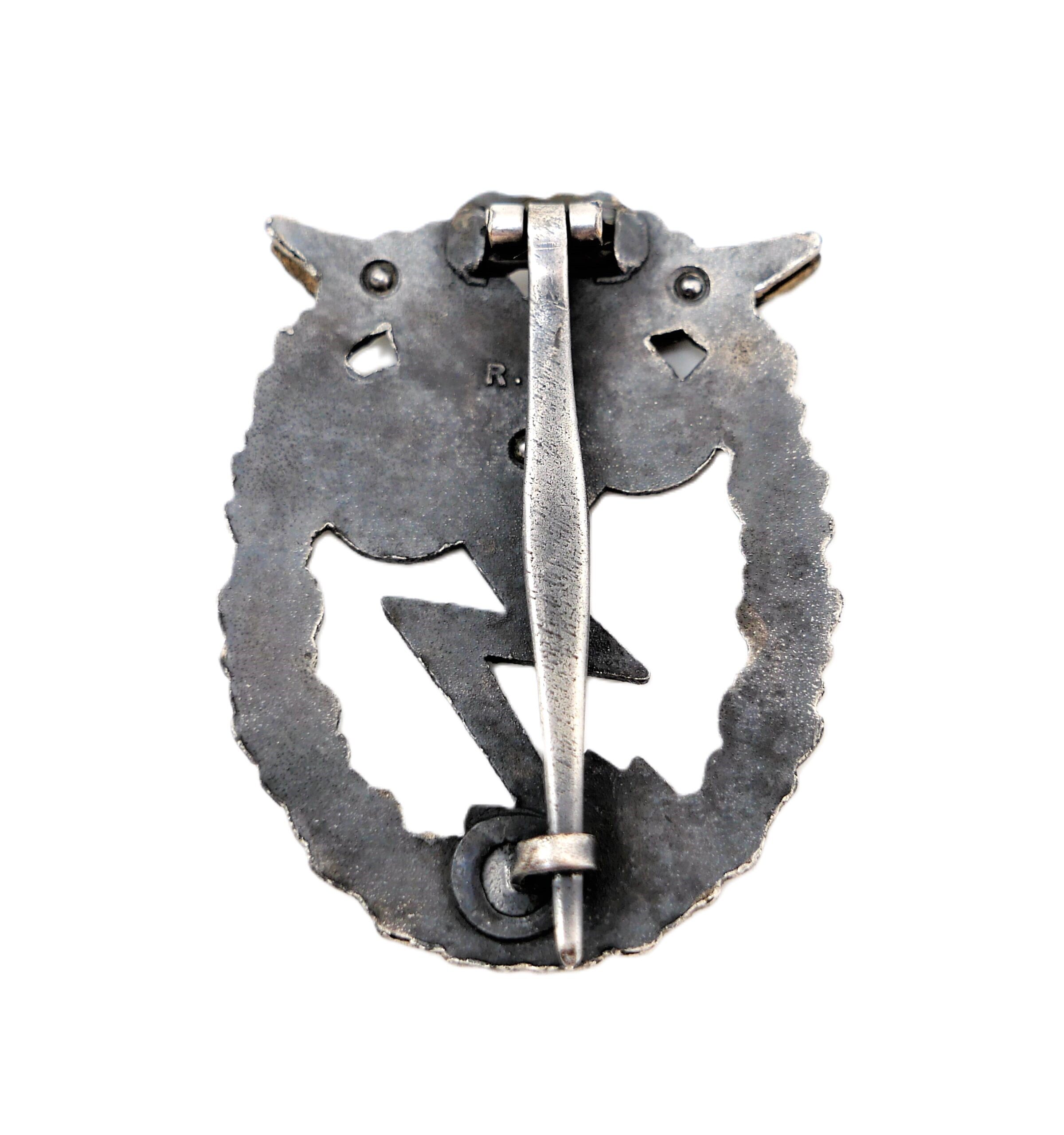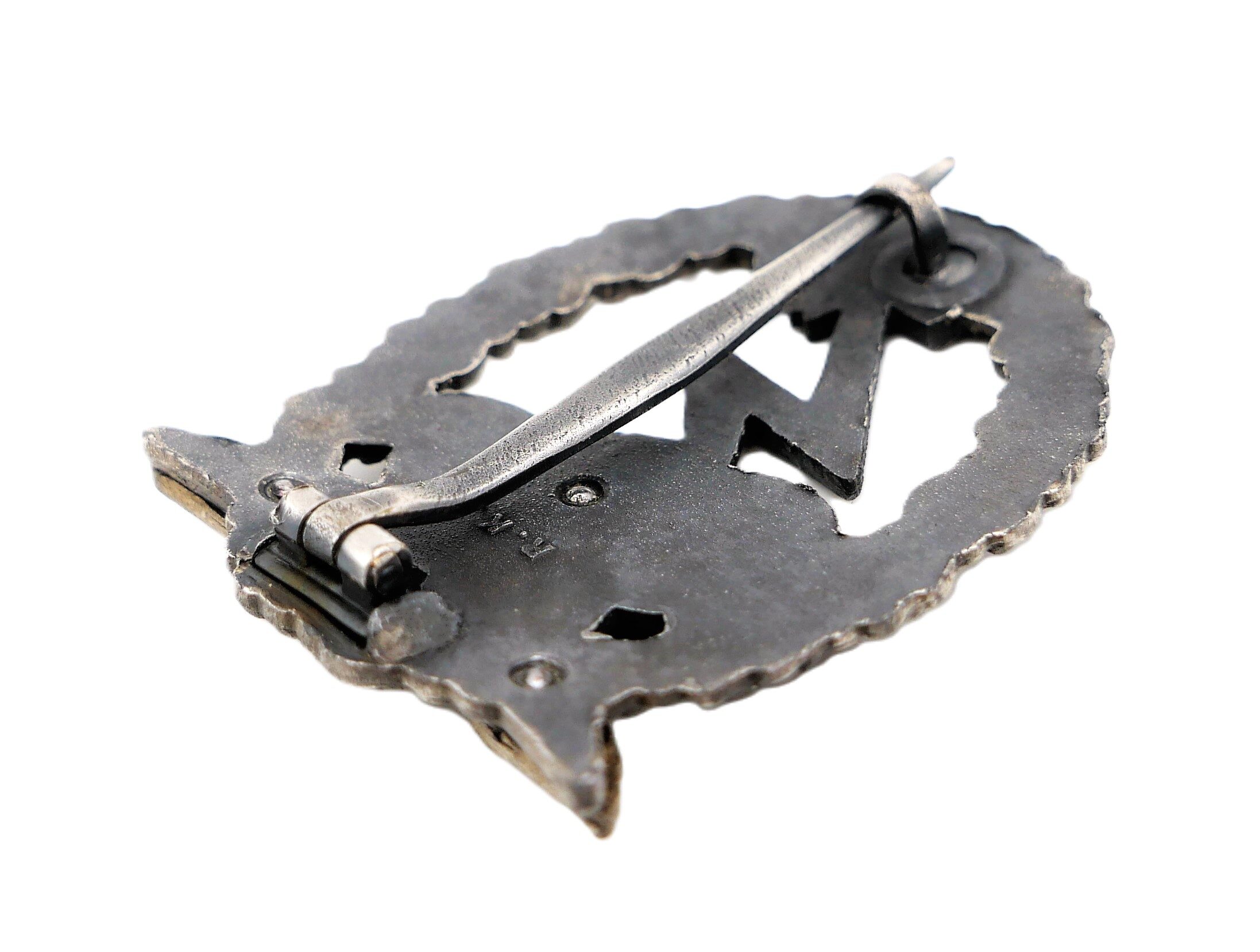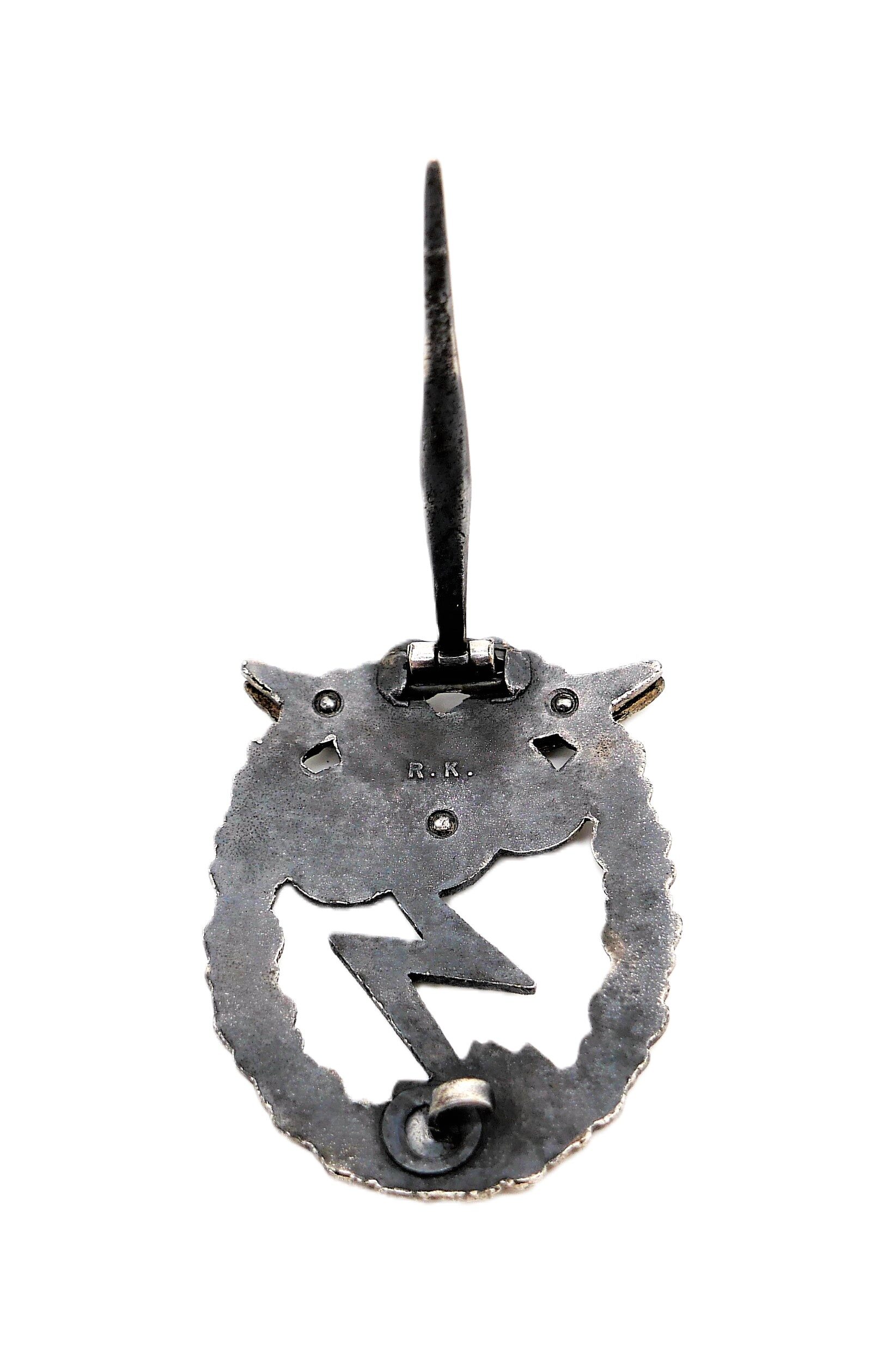 Erdkampfabzeichen der Luftwaffe. Hersteller R. K. (Rudolf Karneth, Gablonz). Adler dreifach vernietet. Getragener Zustand.