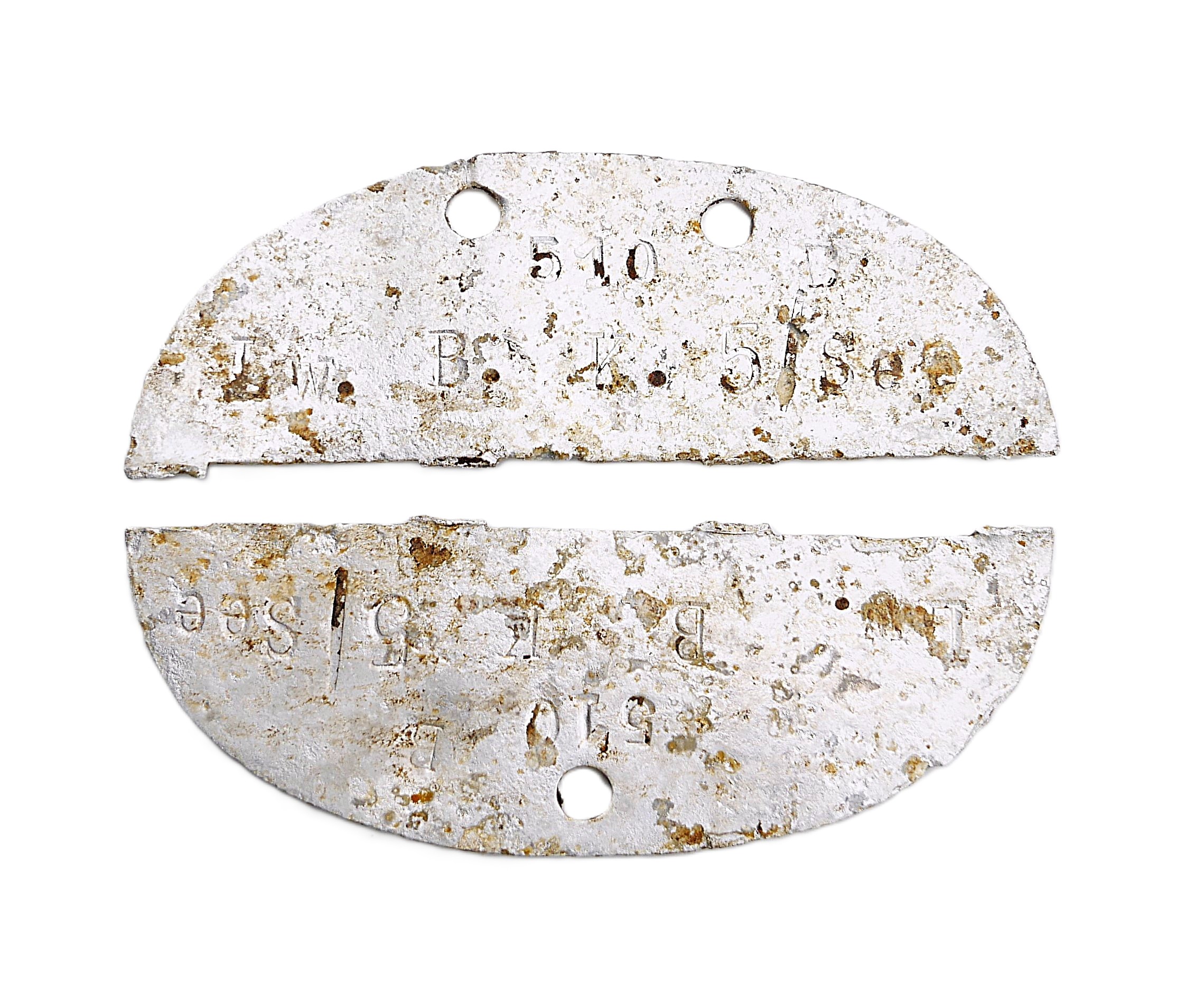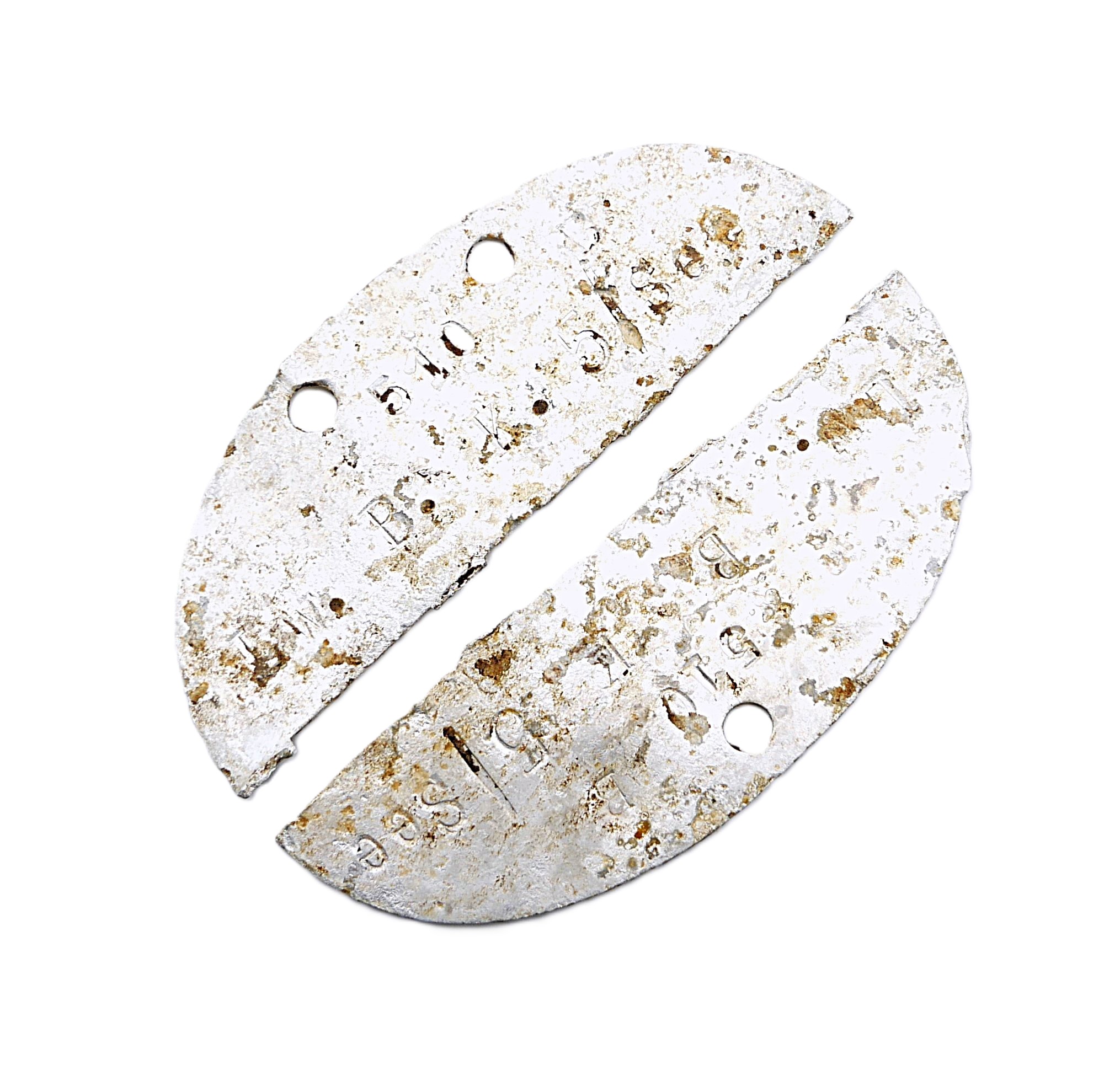 Erkennungsmarke der Luftwaffe – Lw. B. K. 5/See. Marke ist in der Mitte durchgebrochen. Bodenfund.