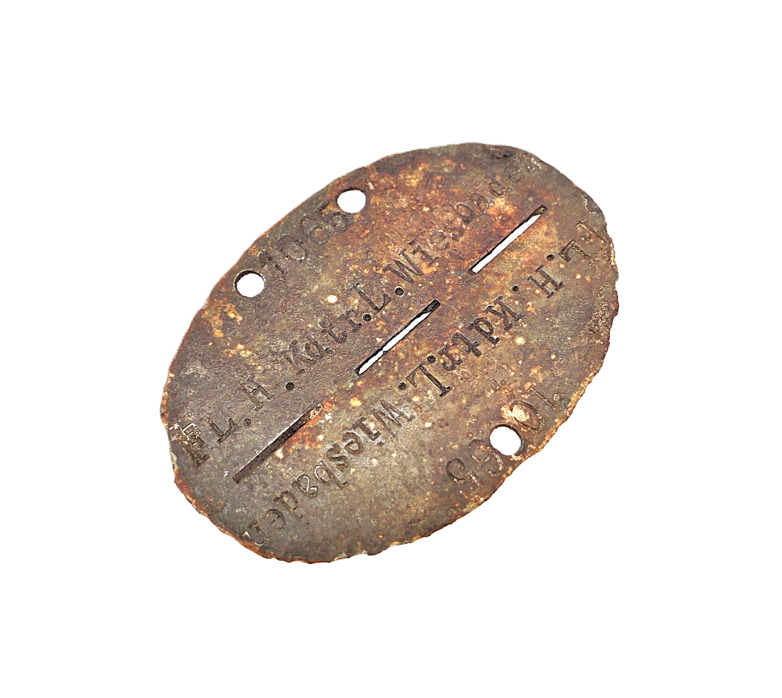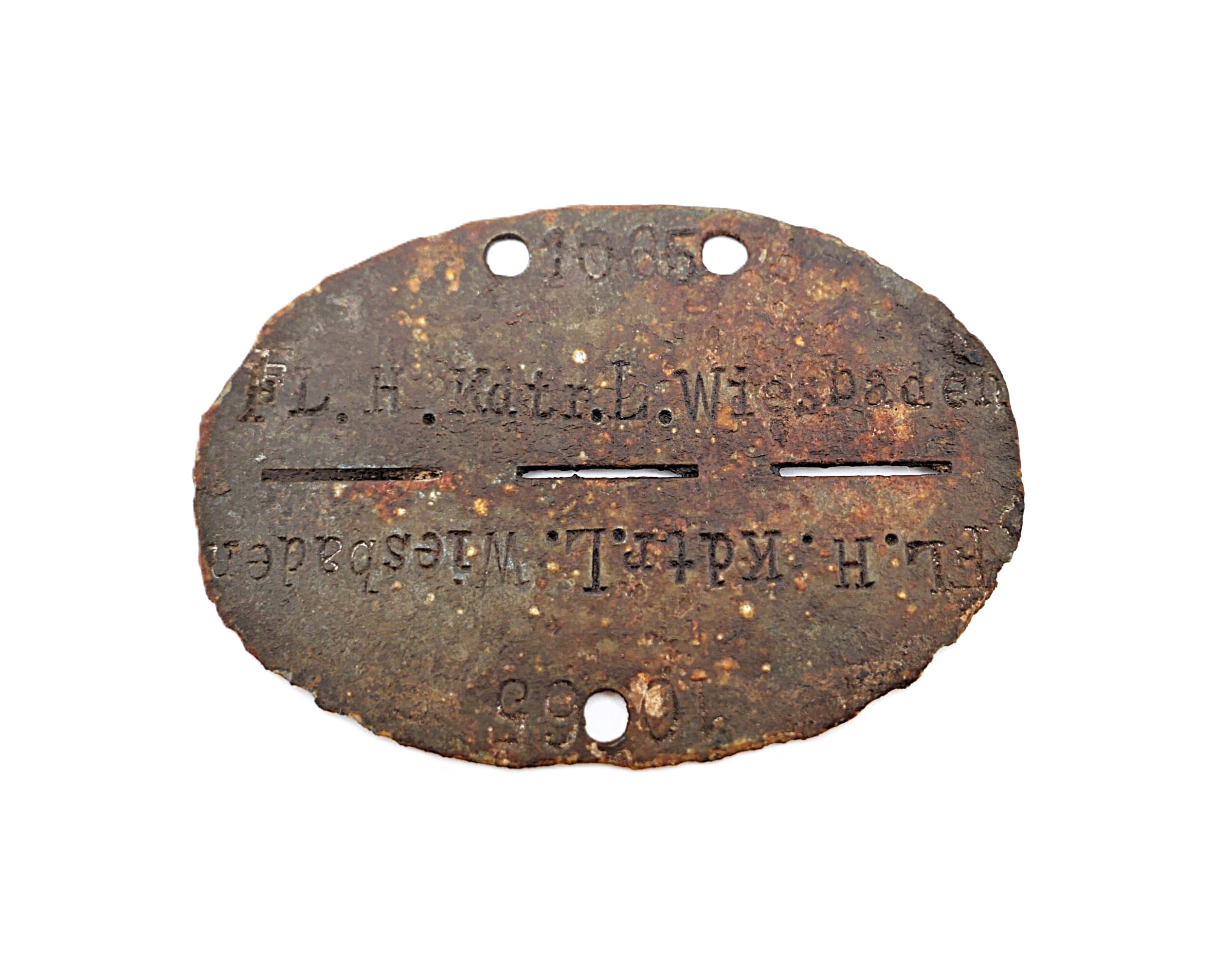 Erkennungsmarke – FL. H. Kdtr. L. Wiesbaden. Bodenfund.