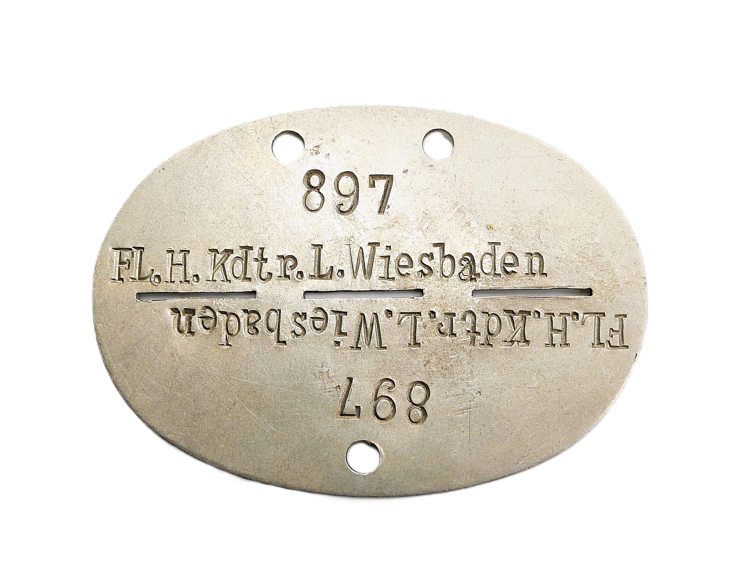 Erkennungsmarke – FL. H. Kdtr. L. Wiesbaden.