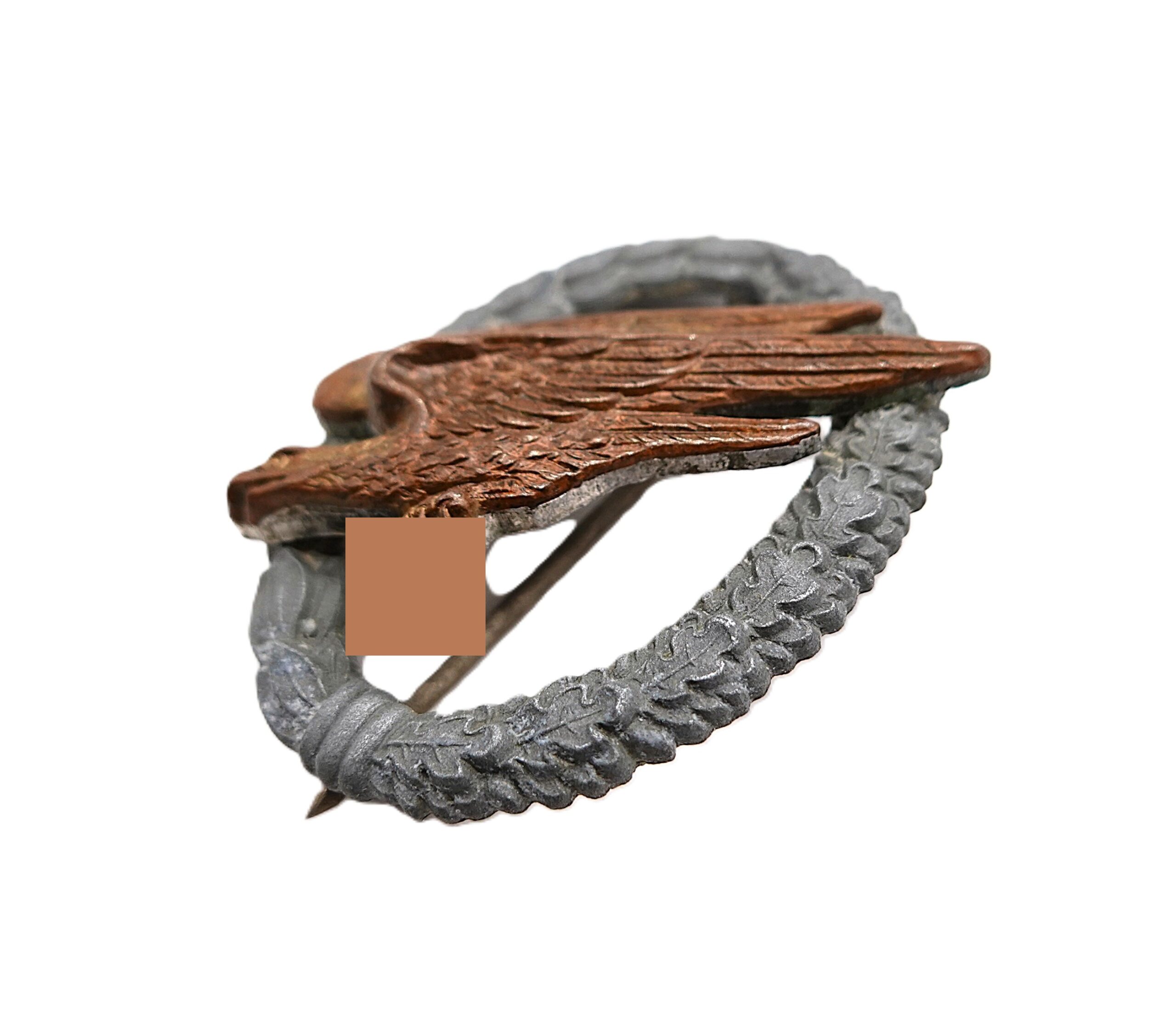 Fallschirmschützenabzeichen der Luftwaffe. Ausführung in Zink. Ohne Hersteller. Nadel ohne Spannung. Ansonsten ein schöner, getragener Zustand.