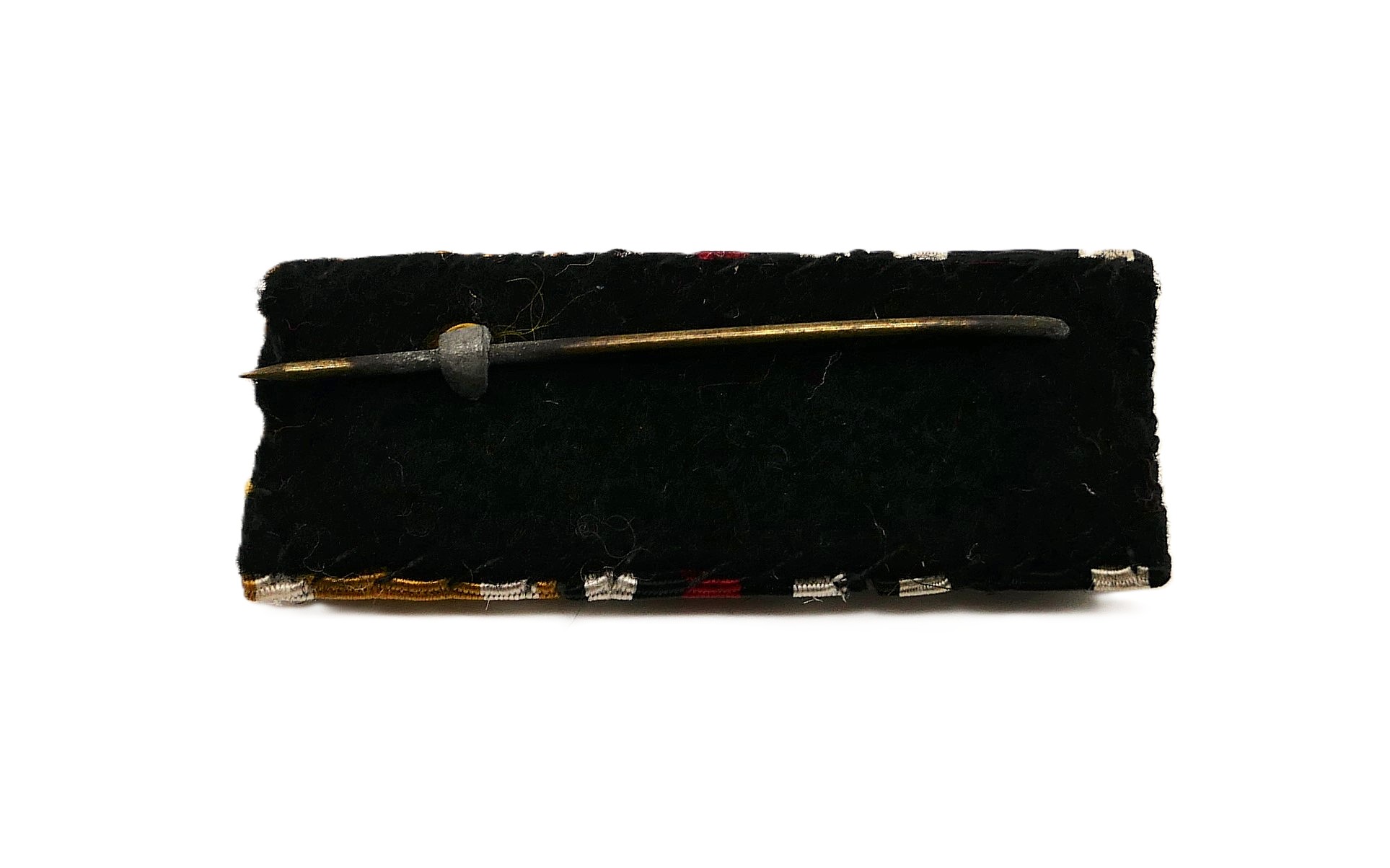 Feldspange mit den Bändern zum Eisernen Kreuz 2. Klasse 1914, Ehrenkreuz für Frontkämfer mit Schwerter Auflage und dem Band zum Schutzwall – Ehrenzeichen. Getragener Zustand.