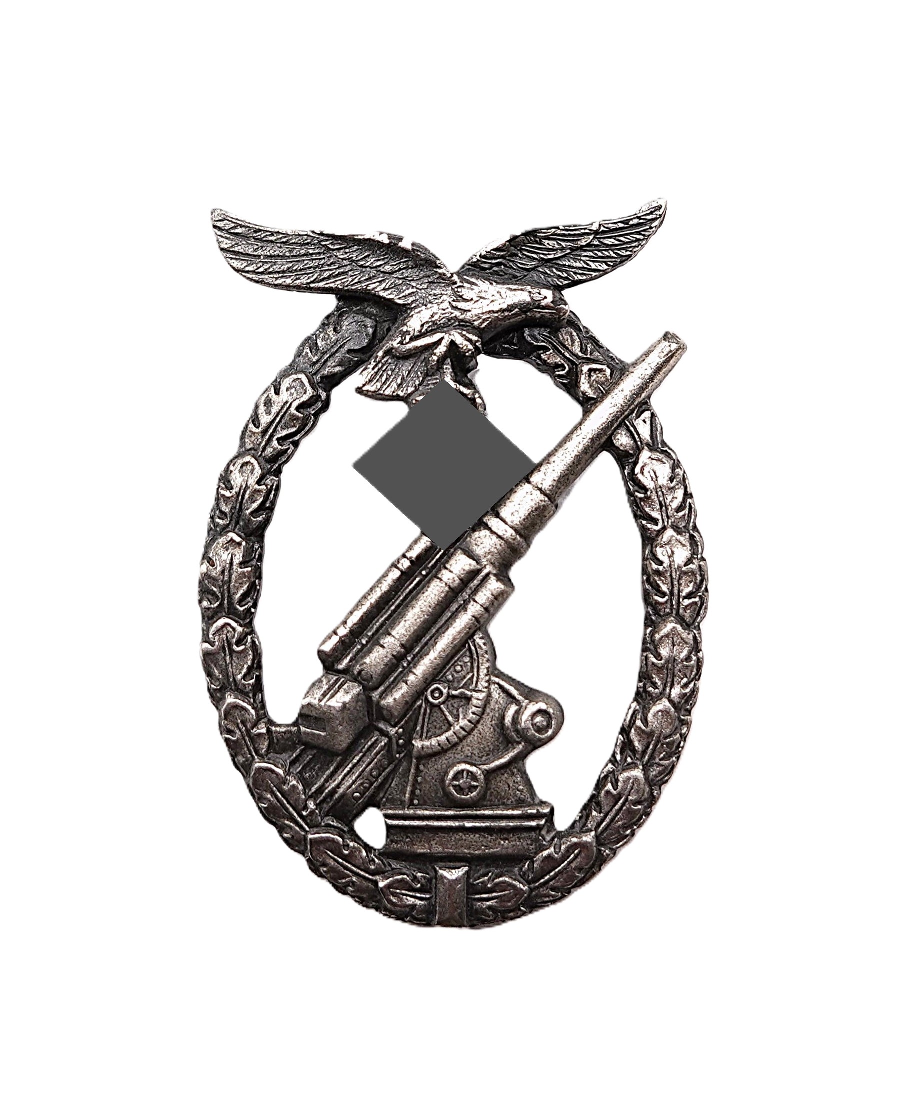 Flakkampfabzeichen der Luftwaffe. Zinkstück des Hersteller E. Ferdinand Wiedmann, Frankfurt/Am Main. Vom Träger etwas gebogen. Getragener Zustand.