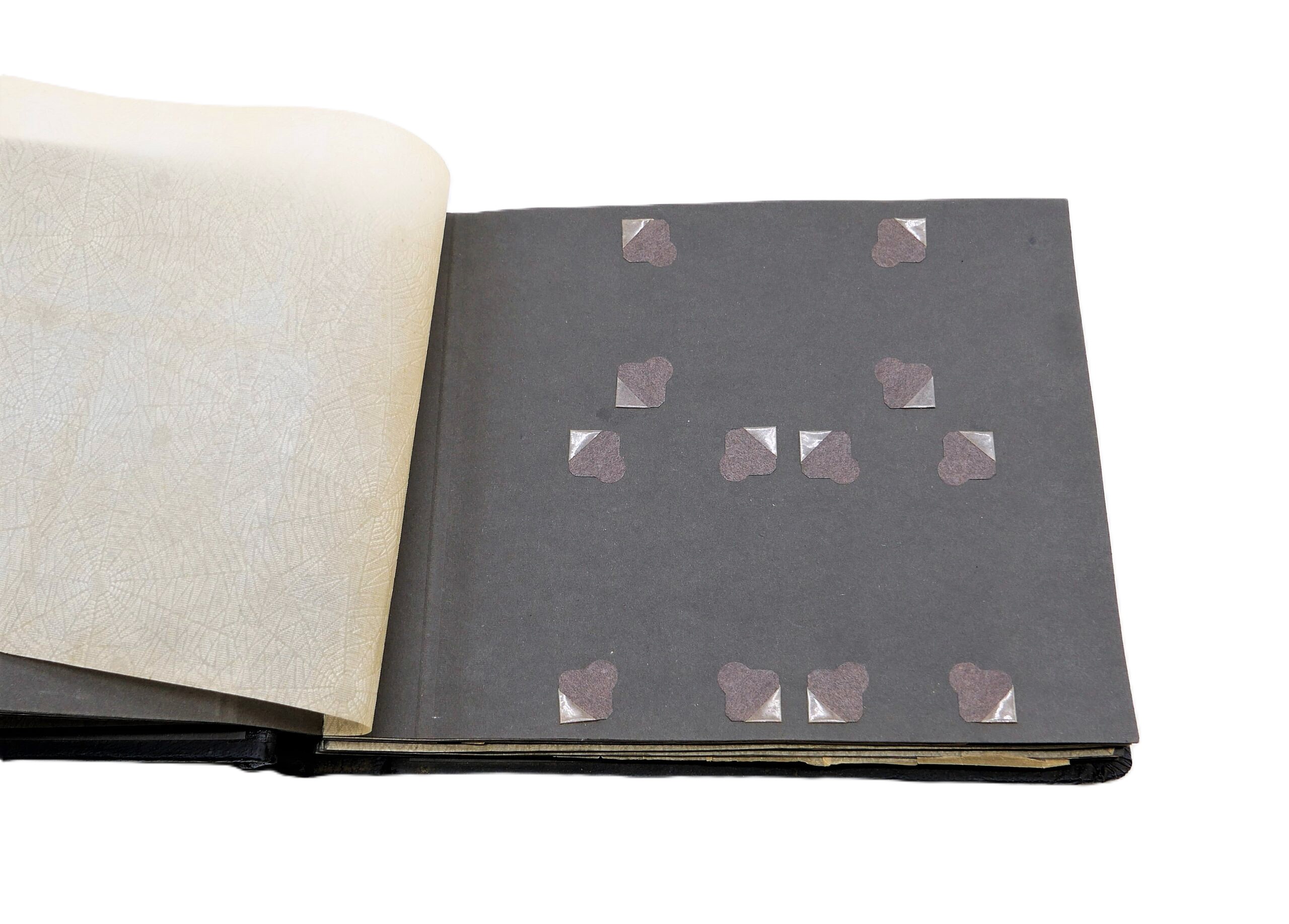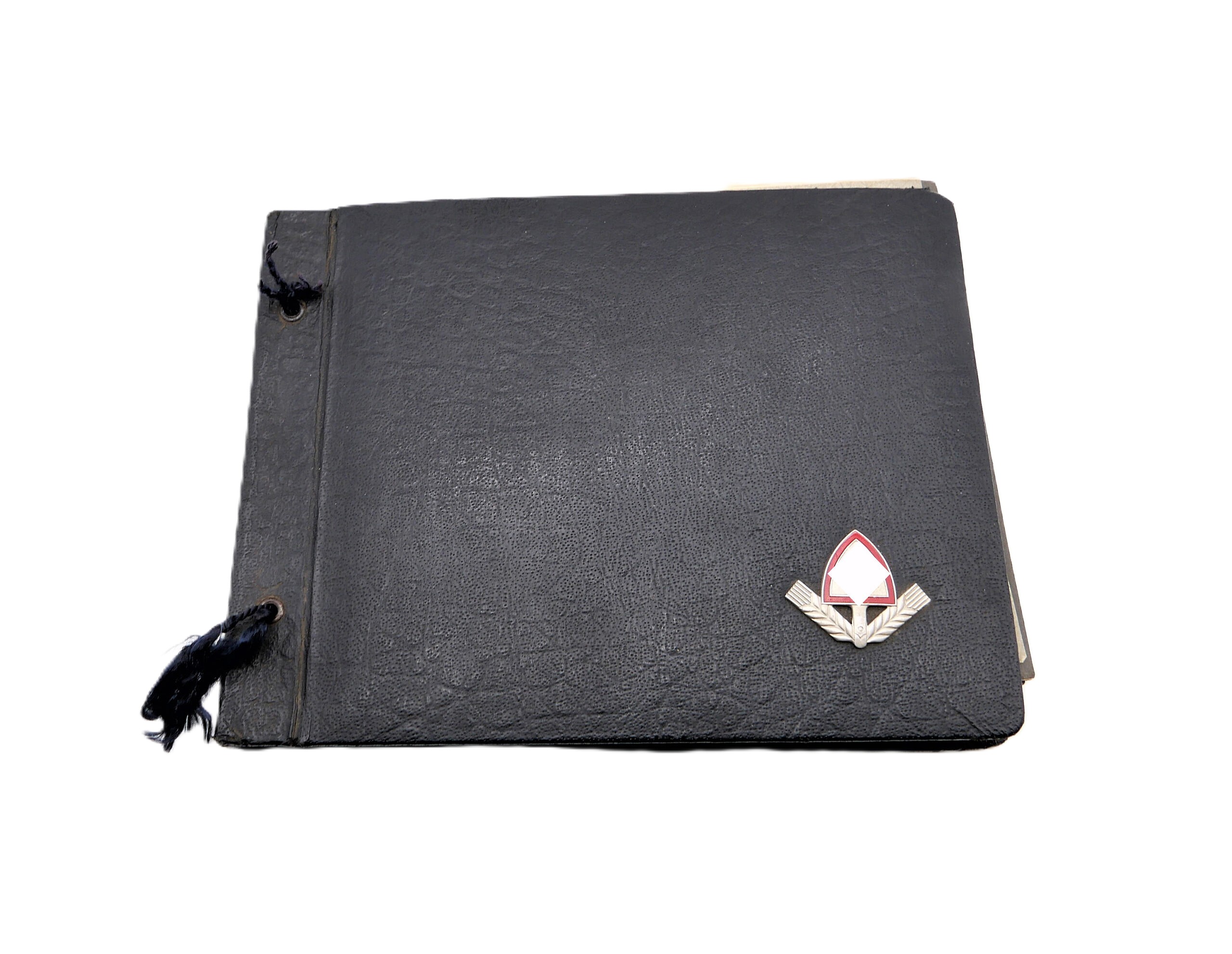 Fotoalbum mit aufgelegten RAD (Reichsarbeitsdienst) Emblem. Bilder wurden entnommen. Riecht etwas muffig. Fotoecken sind noch verklebt. Mit Gebrauchsspuren.