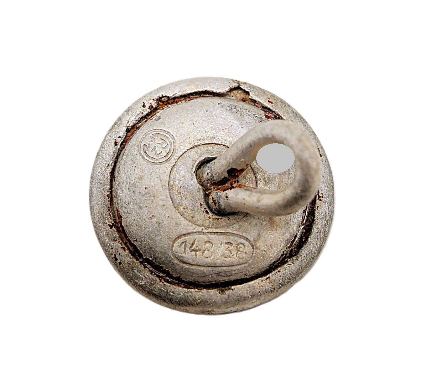 Frackknopf der SS. Aus Aluminim. Rückseitig steht 148/38, RZM und SS im Kreis. Durchmesser 17 mm. Sehr seltener, gut erhaltener Bodenfund.