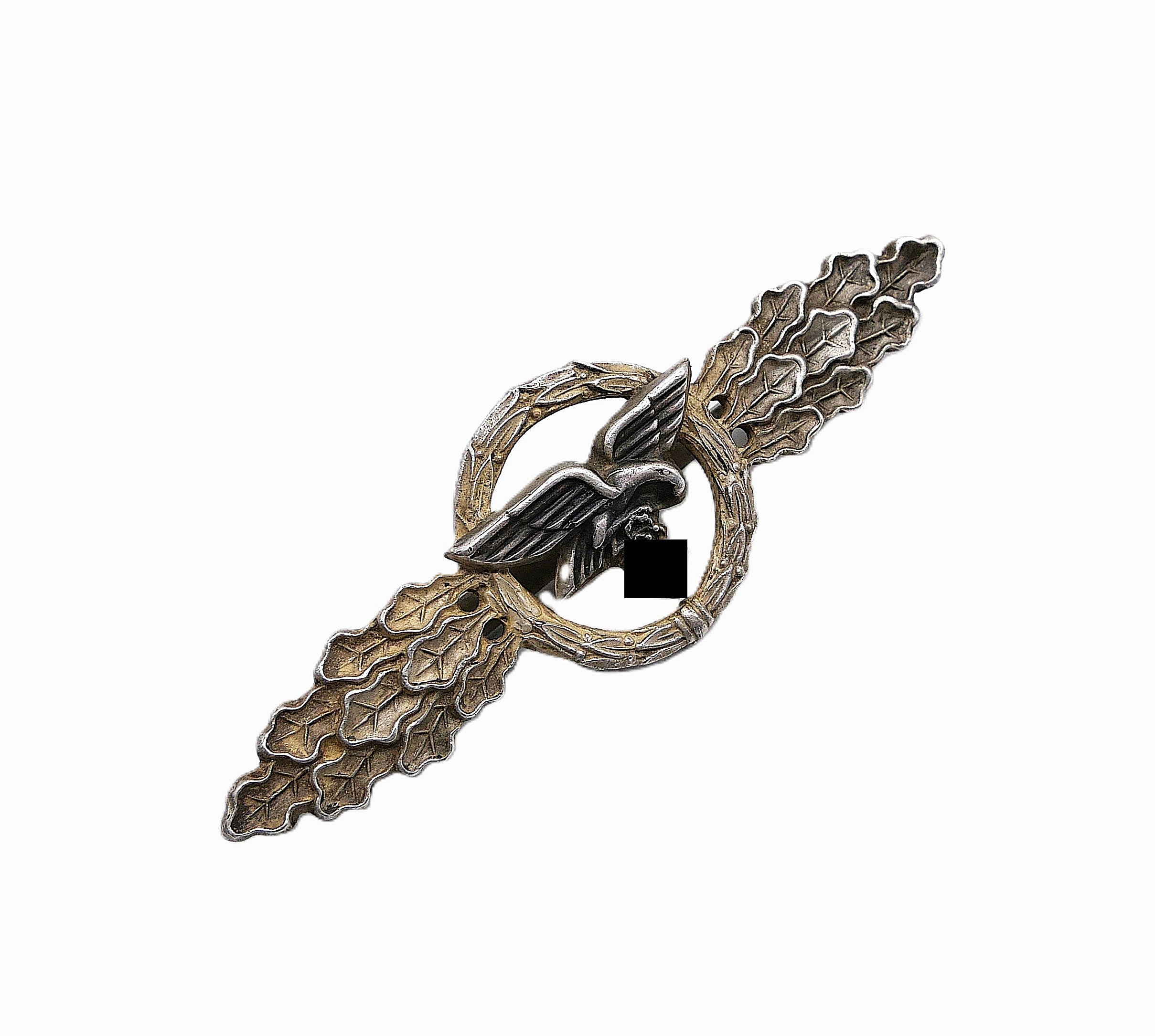 Frontflugspange für Transportflieger Silber. Ohne Hersteller. Aus Buntmetall. Kanten poliert. Sehr schöner, getragener Zustand.
