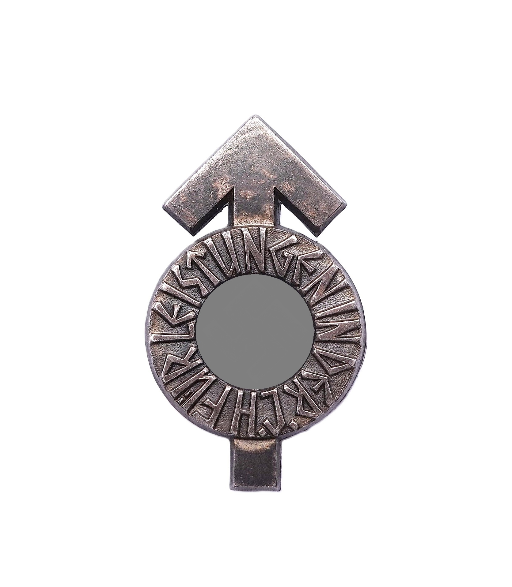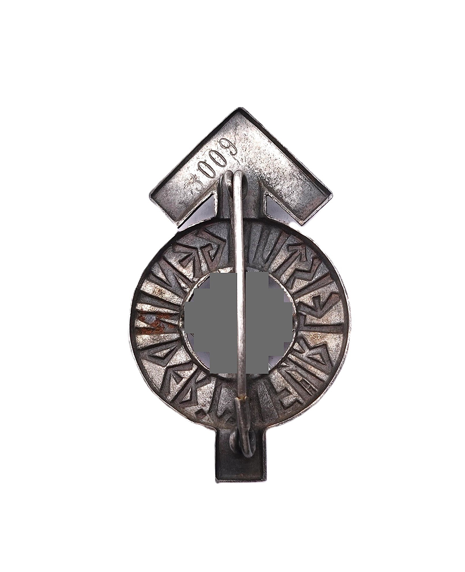 HJ (Hitlerjugend) Leistungsabzeichen Silber. Seltene Hohlprägung. Sehr niedrige Matrikelnummer 3009. Getragener Zustand mit vergangener Versilberung