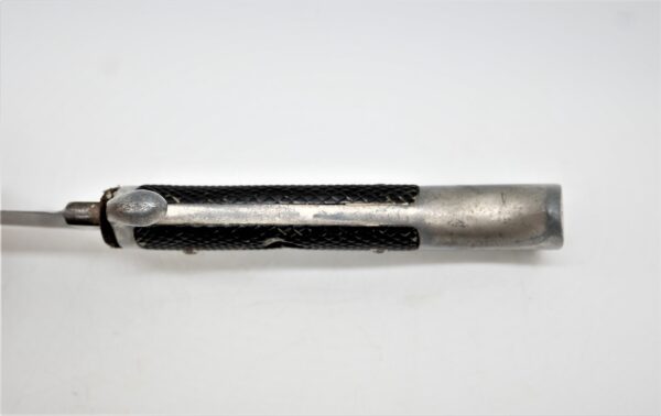 HJ (Hitlerjugend) Messer. Typischer Dachbodenfund. M7/25 für den Hersteller (Wilhelm Wagner Solingen). Klinge beschliffen. Scheide und Raute fehlen. Griffschalen teilweie beschädigt. Als Ersatzteilträger. Verkauf an Personen ab 18 Jahre mit Altersnachweis.