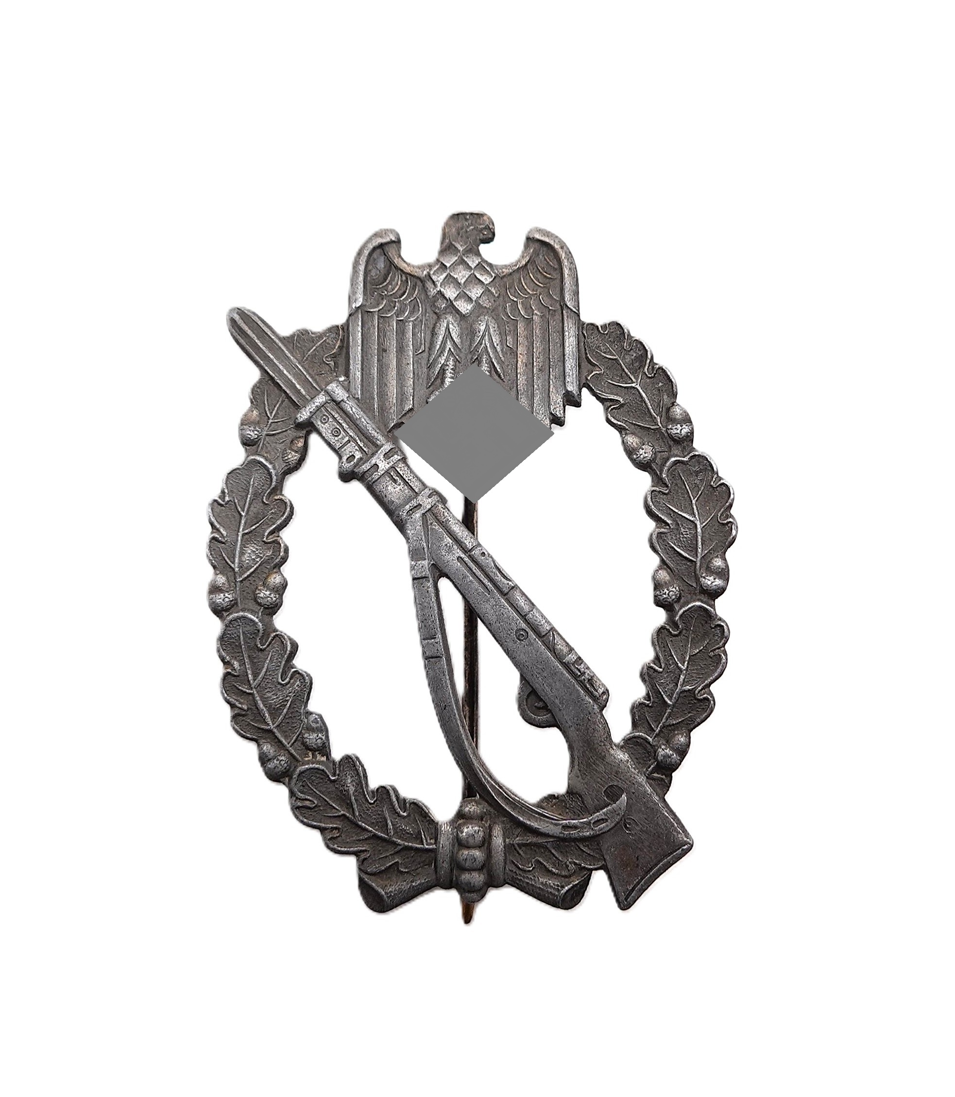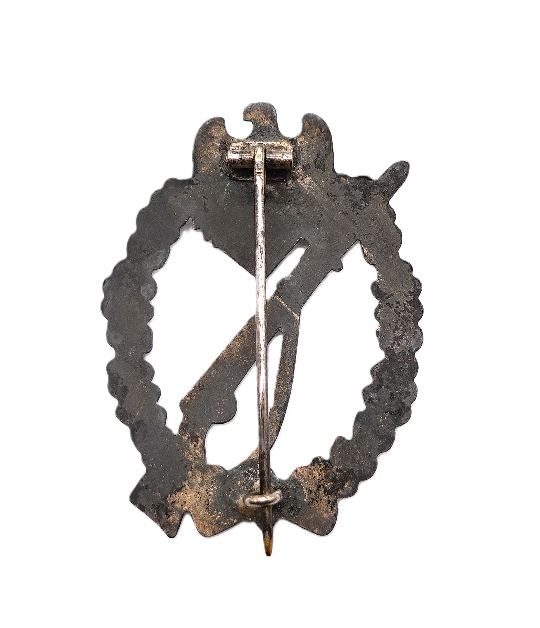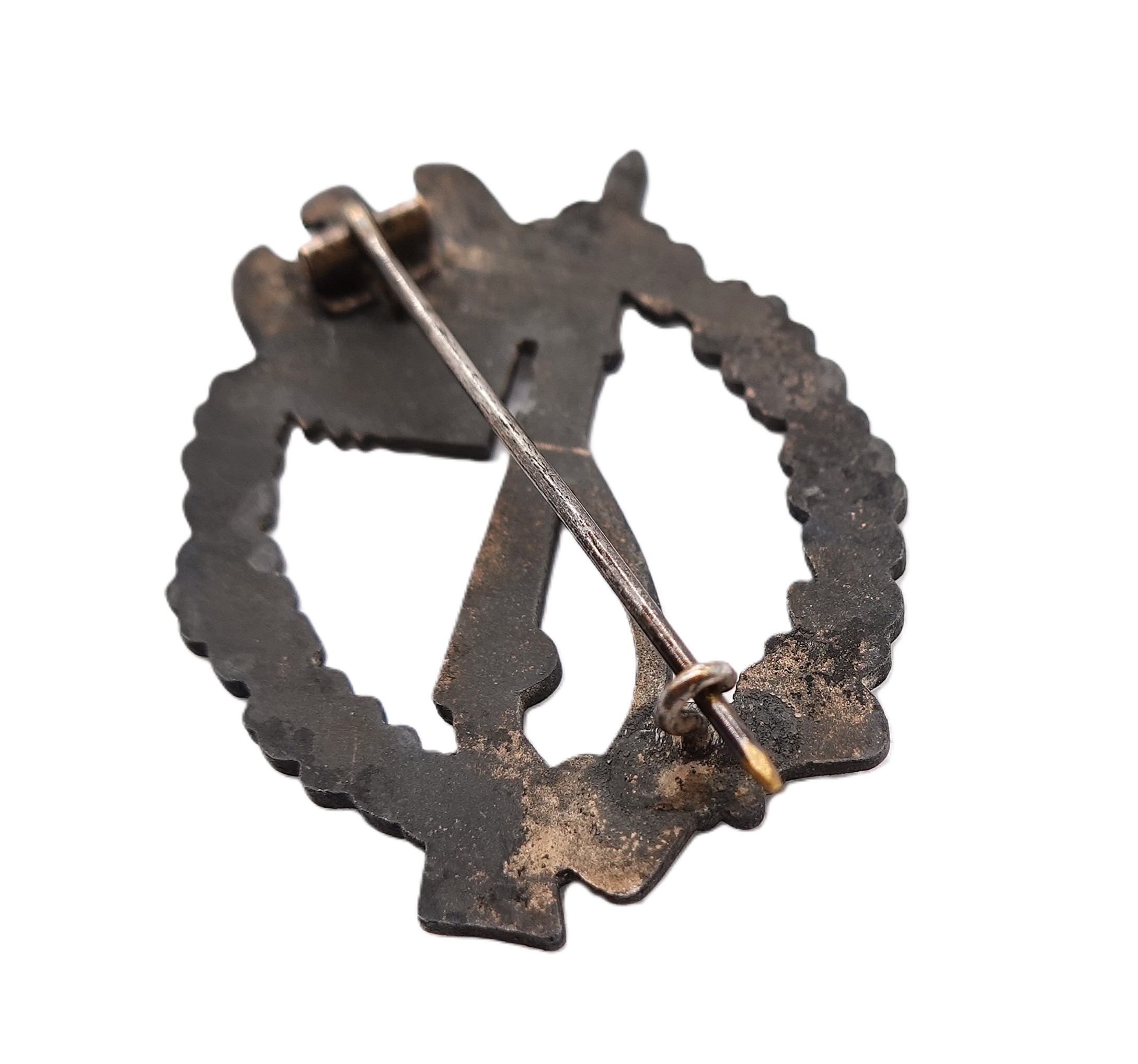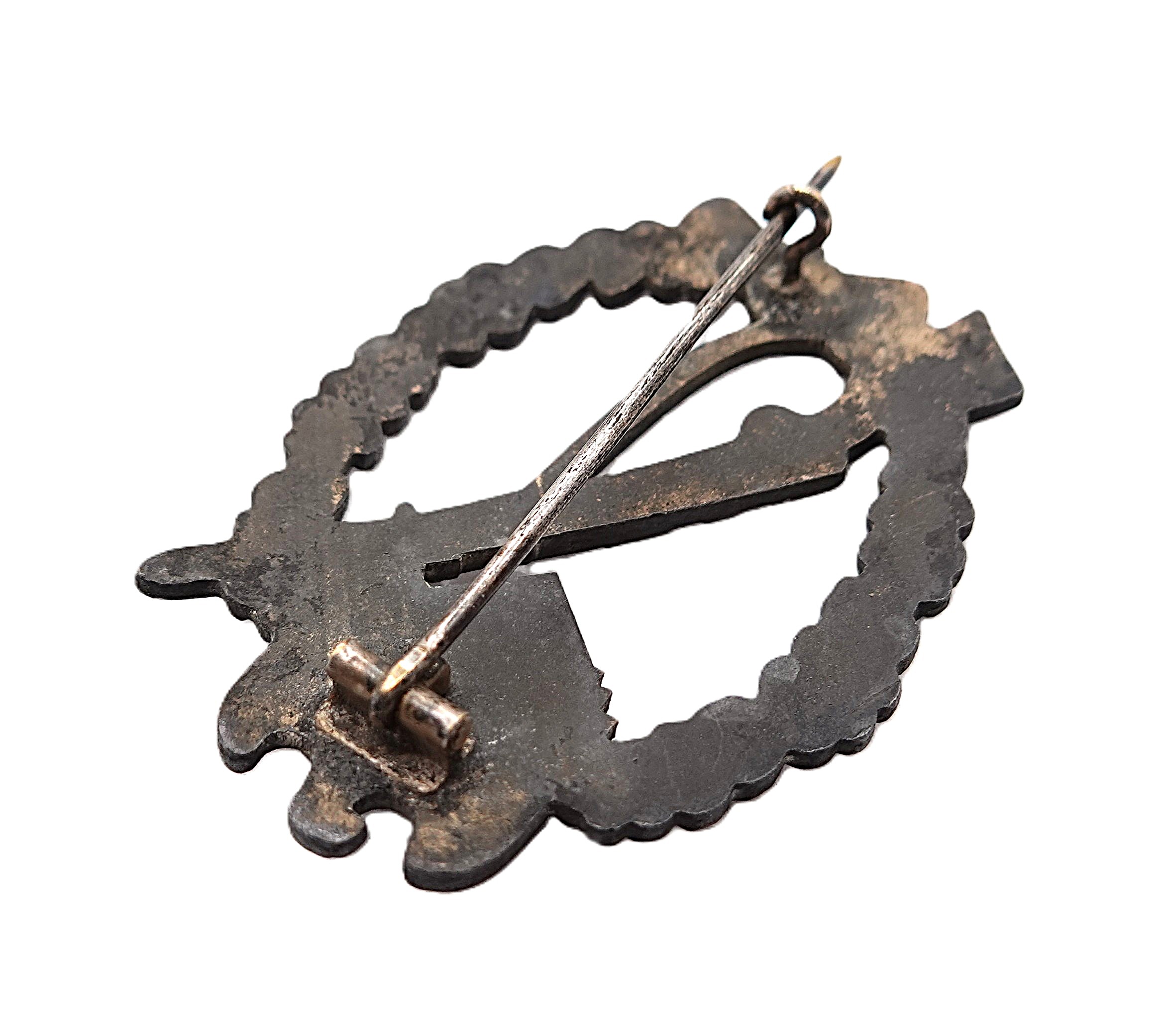 Infanterie Sturmabzeichen Silber. Ohne Hersteller. Etwas gewölbt. Ausführung aus Zink mit vergangener Versilberung. Getragener Zustand