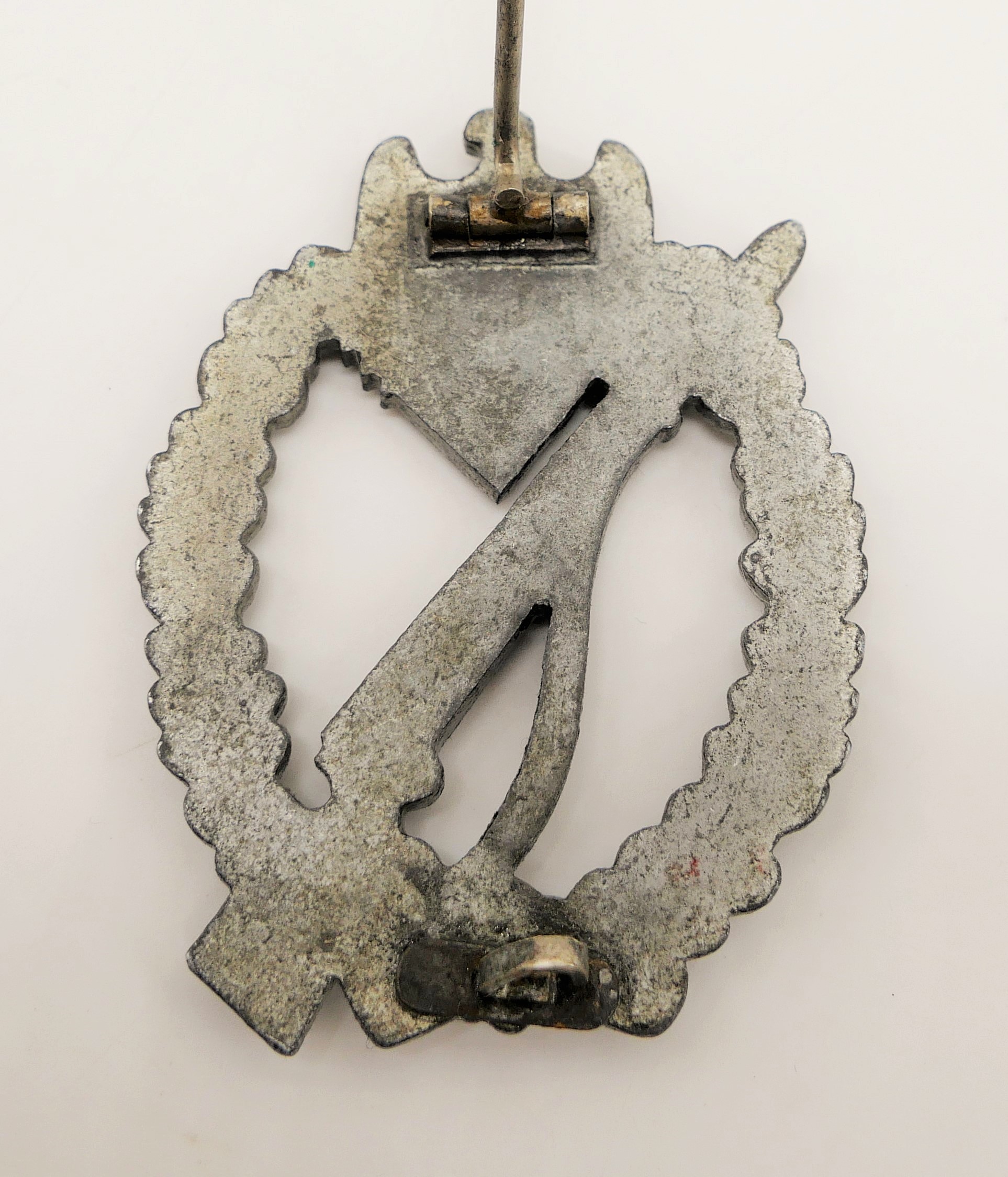 Infanterie Sturmabzeichen Silber. Ohne Markierung. Wird dem Hersteller Steinhauer & Lück, Lüdenscheid zugesprochen. Getragener Zustand mit vergangener Versilberung.